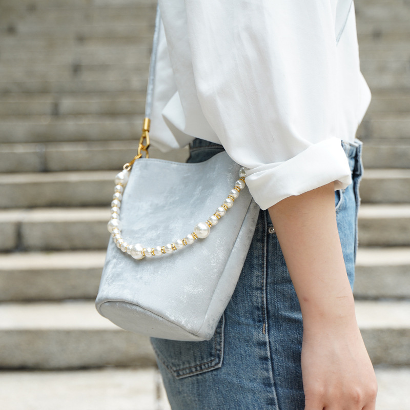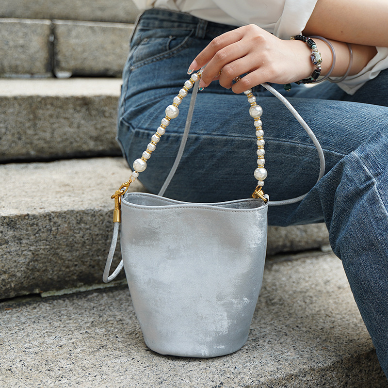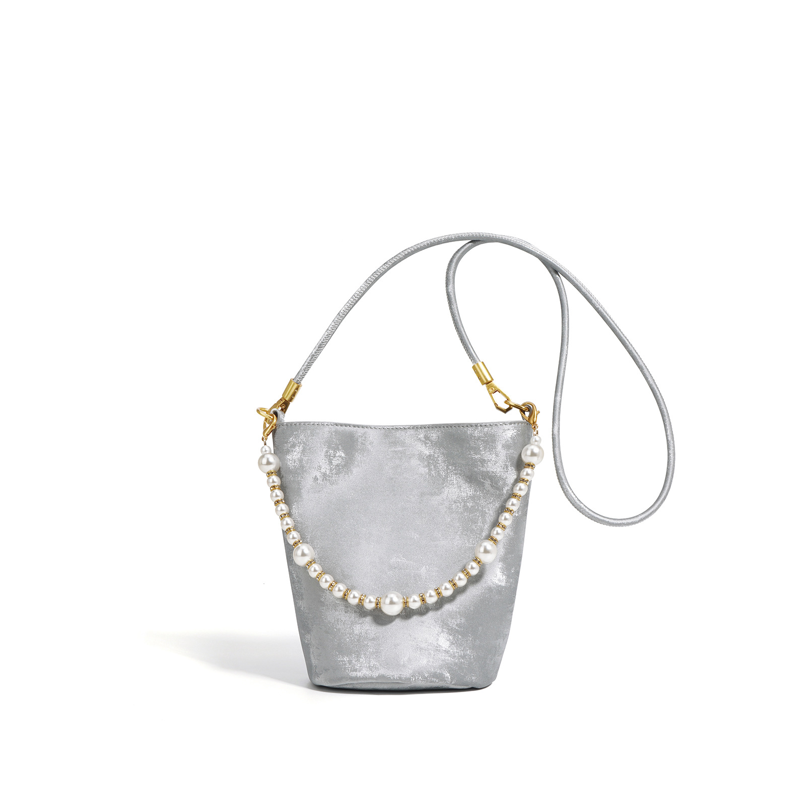 新中式绸缎牛皮斜挎包休闲慵懒风流行包包质感银色手机斜挎手提包