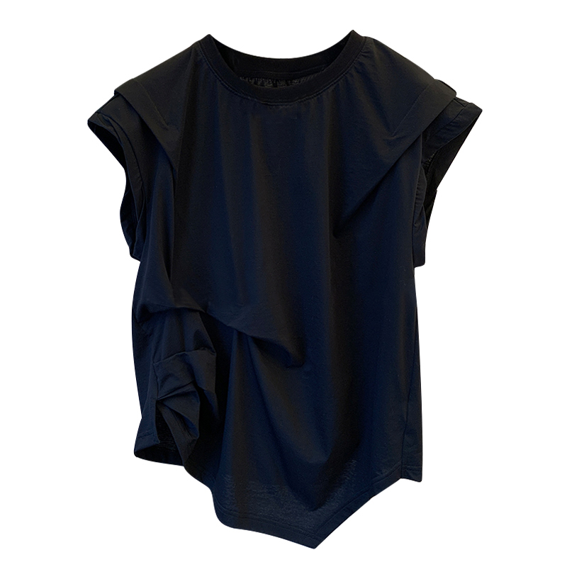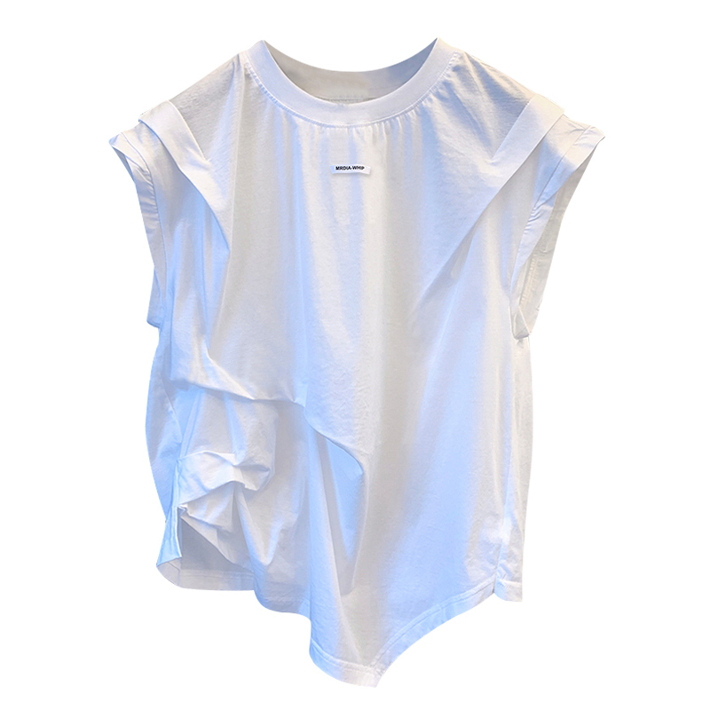Eternally move不規則褶皺設計感小眾無袖T恤夏季女韓版百搭上衣
