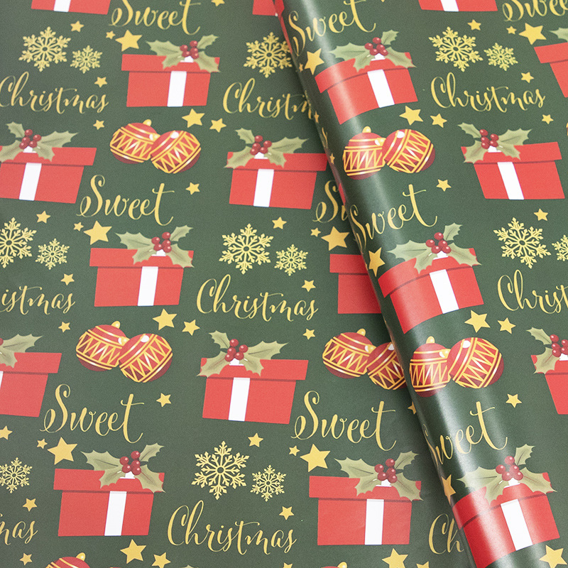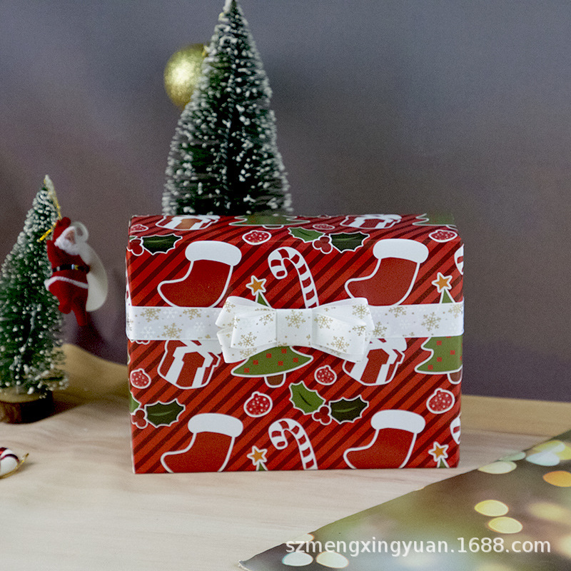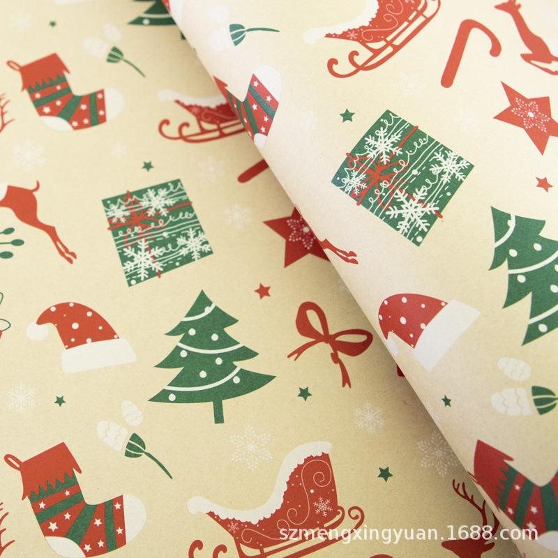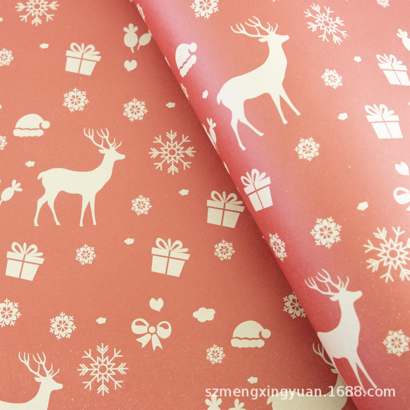 80g新款圣诞装饰礼品礼物礼盒包装纸diy装饰纸包书皮韩国卡通彩纸