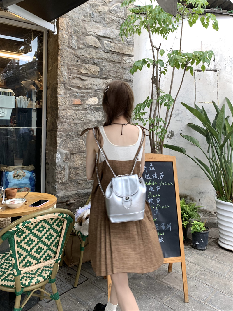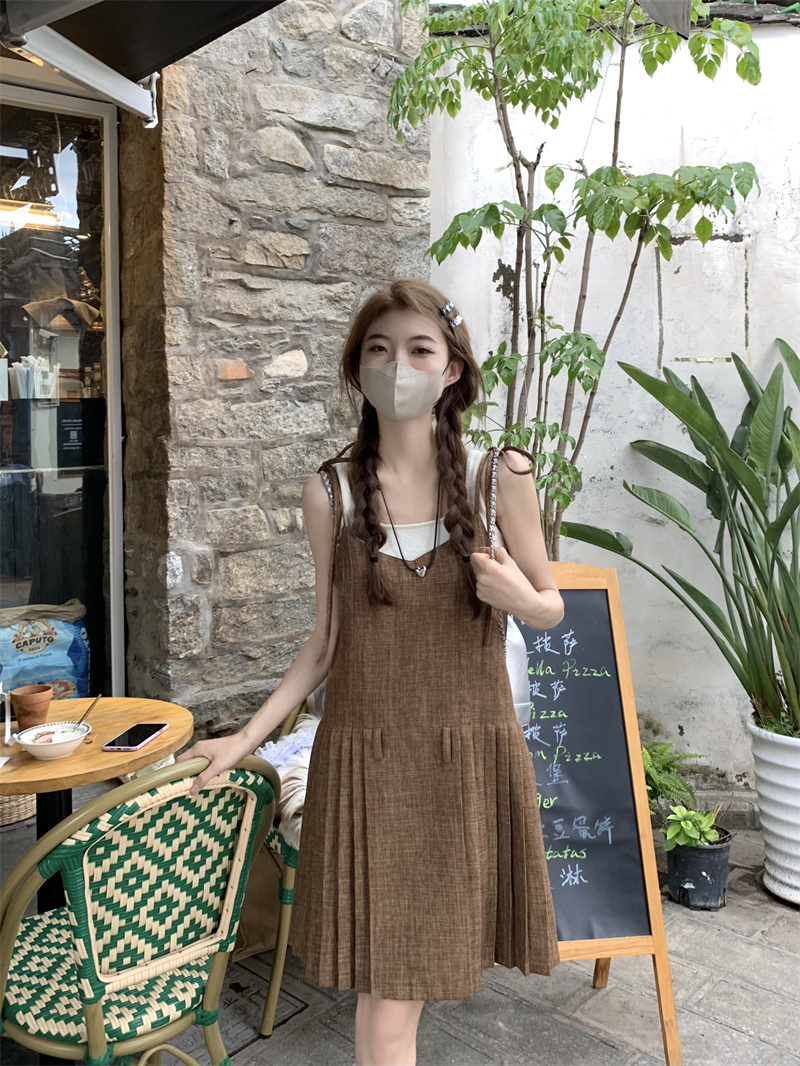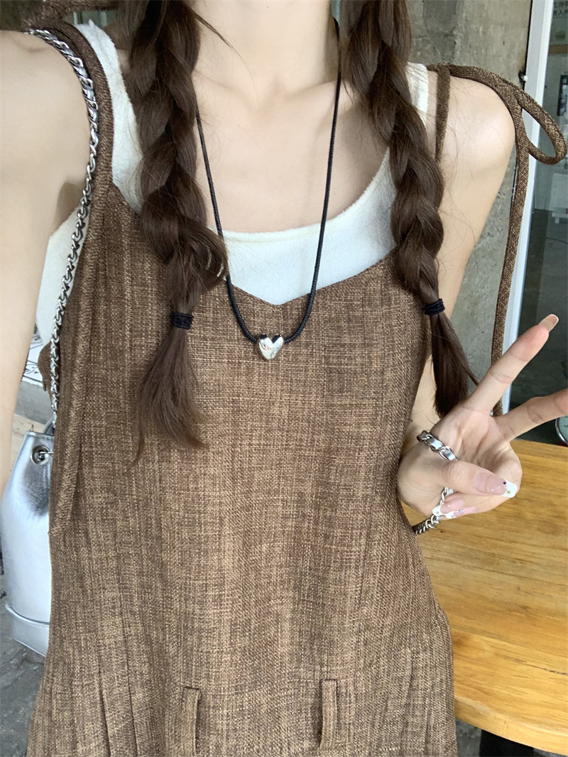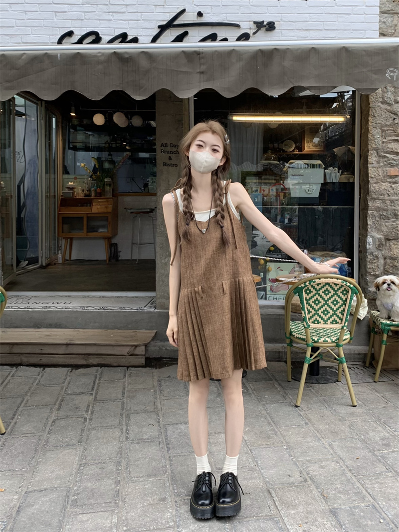 PPHOME中古巴黎~新款潮韓版夏日法式別致慵懶風格紋無袖吊帶長裙