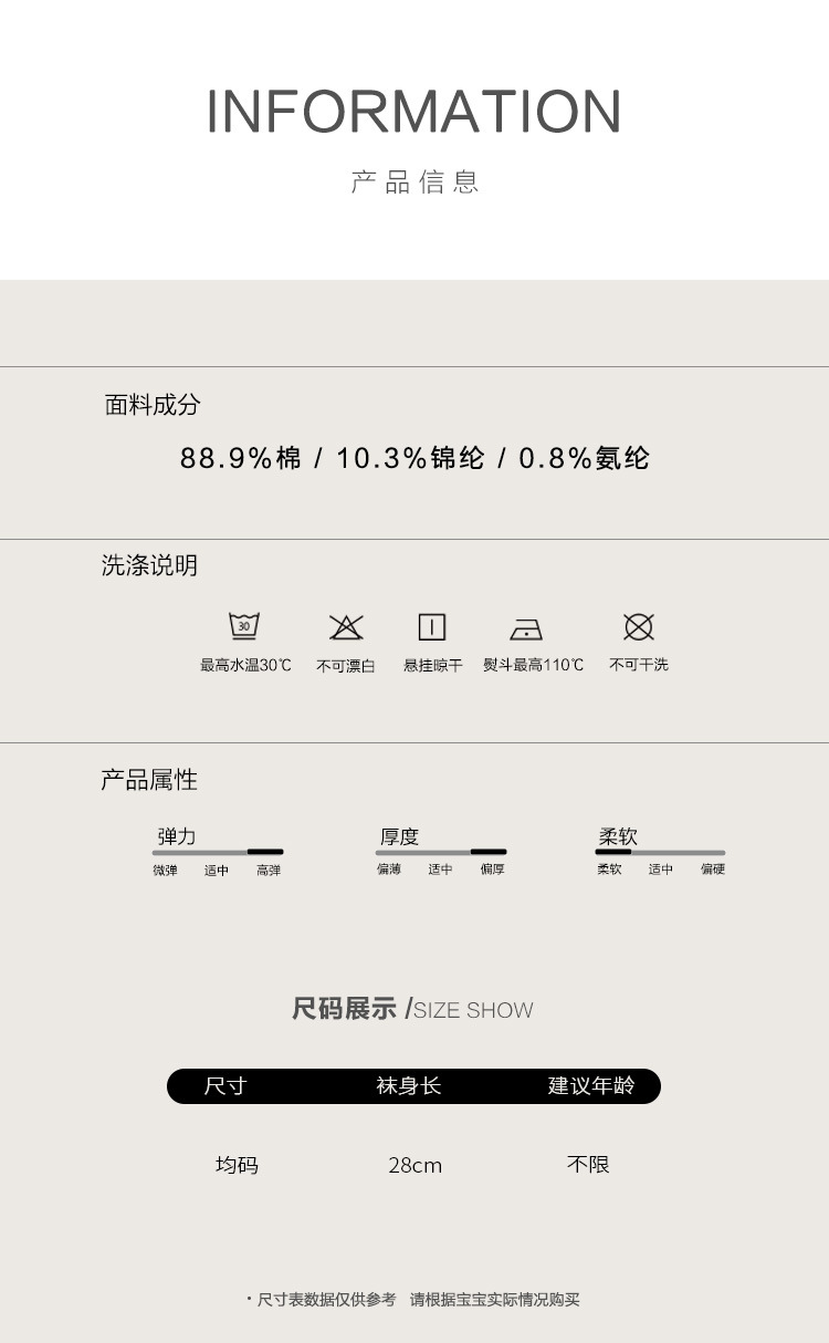 童袜尺码 均码无后跟【袜长28cm】