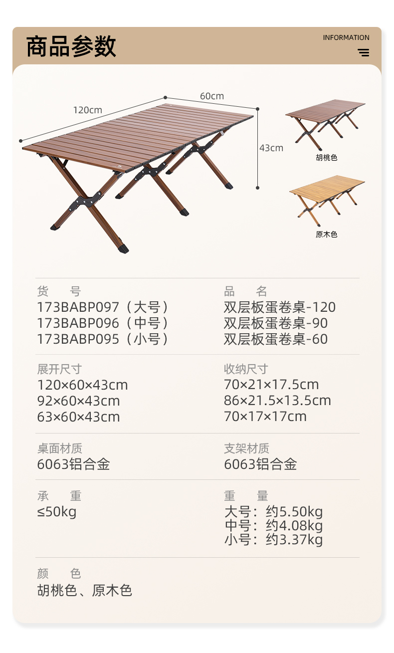 顏色分類 小號鋁合金蛋卷桌胡桃色 173BABP095 小號鋁合金蛋卷桌原木色 173BABP095 中號鋁合金蛋卷桌胡桃色 173BABP096 中號鋁合金蛋卷桌原木色 173BABP096 大號鋁合金蛋卷桌胡桃色 173BABP097 大號鋁合金蛋卷桌原木色 173BABP097 大號蛋卷桌+白色摺疊椅*2 B2JYTC1158 中號蛋卷桌+白色摺疊椅*2 B2JYTC1159 小號蛋卷桌+白色摺疊椅*2 B2JYTC1160 中號蛋卷桌+米白色摺疊椅 B2JYTC520. 中號蛋卷桌+橄欖綠摺疊椅 B2JYTC520. 中號蛋卷桌+深咖摺疊椅 B2JYTC520. 大號蛋卷桌+橄欖綠摺疊椅 B2JYTC521. 大號蛋卷桌+米白色摺疊椅 B2JYTC521. 大號蛋卷桌+深咖摺疊椅 B2JYTC521. 小號蛋卷桌+深咖摺疊椅 B2JYTC522. 小號蛋卷桌+橄欖綠摺疊椅 B2JYTC522. 小號蛋卷桌+米白色摺疊椅 B2JYTC522. 小號蛋卷桌+綠色摺疊椅*2 B2JYTC612 小號蛋卷桌+卡其色摺疊椅*2 B2JYTC612 【推薦】中號蛋卷桌+卡其色摺疊椅*2 B2JYTC613. 【推薦】中號蛋卷桌+綠色摺疊椅*2 B2JYTC613 大號蛋卷桌+卡其色摺疊椅*2 B2JYTC614. 大號蛋卷桌+綠色摺疊椅*2 B2JYTC614 大號蛋卷桌+卡其色克米特椅*2+天幕,B2JYTC1157 【2件裝】綠色 B2JYTC828 【2件裝】卡其 B2JYTC828