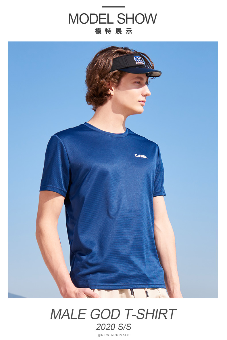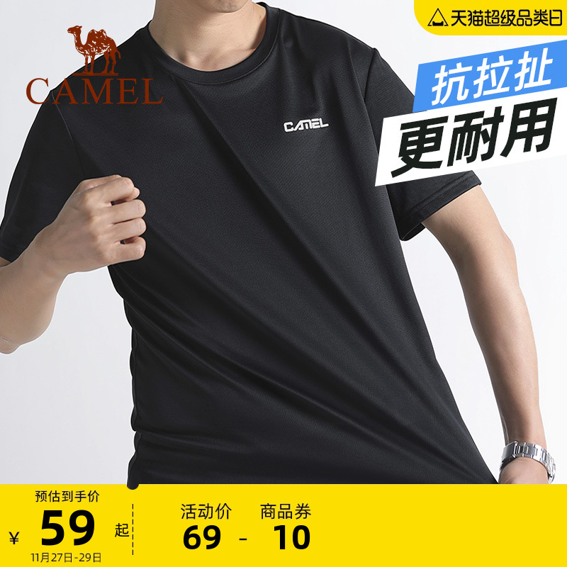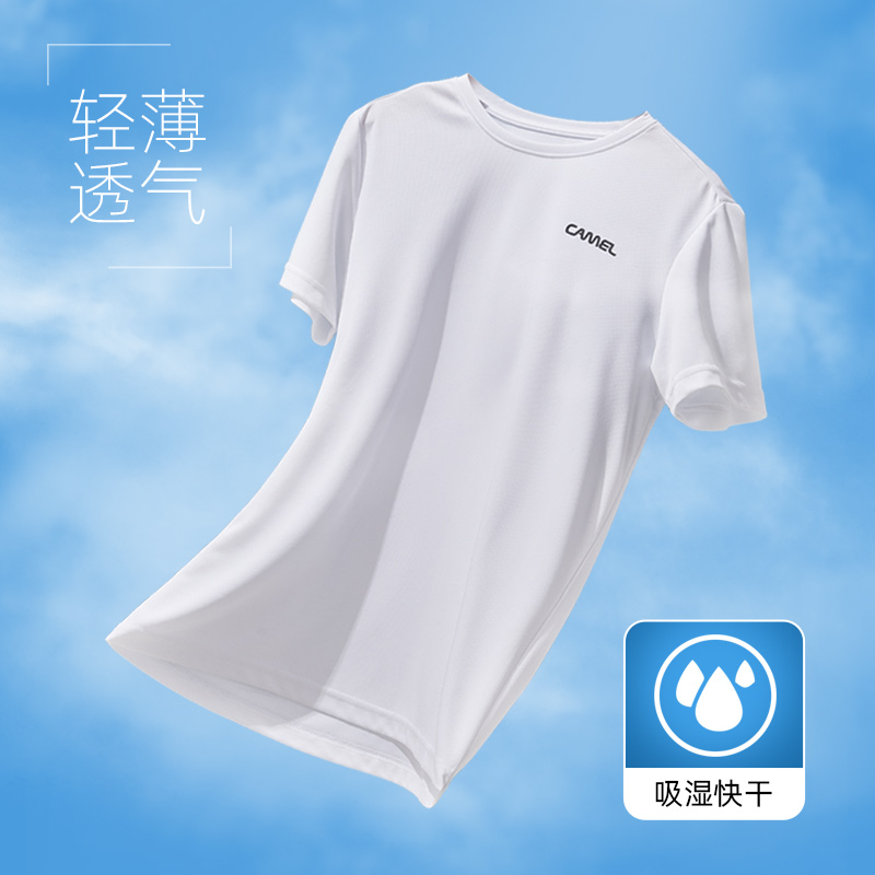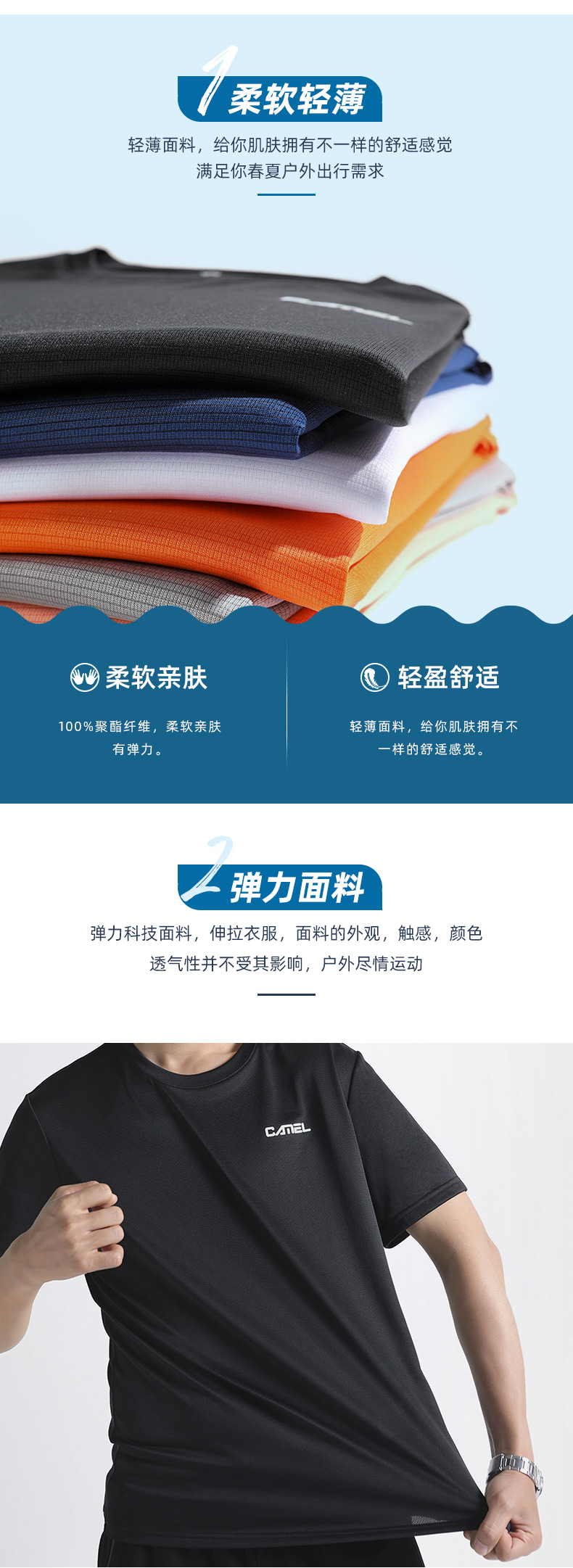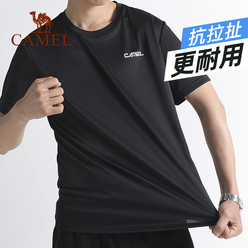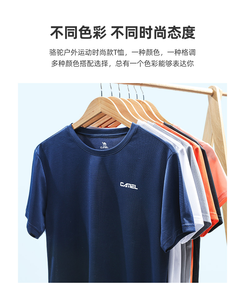 駱駝男士T恤短袖2023夏季透氣速乾T恤男圓領百搭運動跑步健身上衣