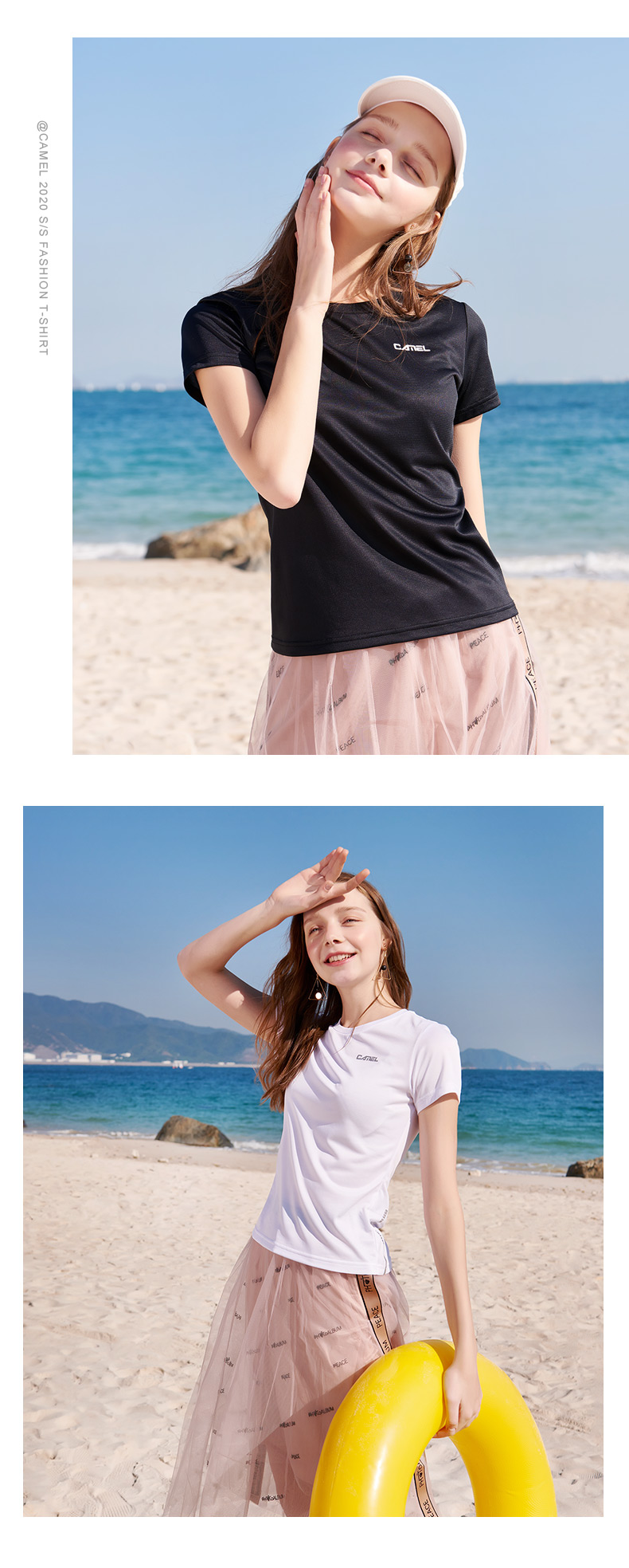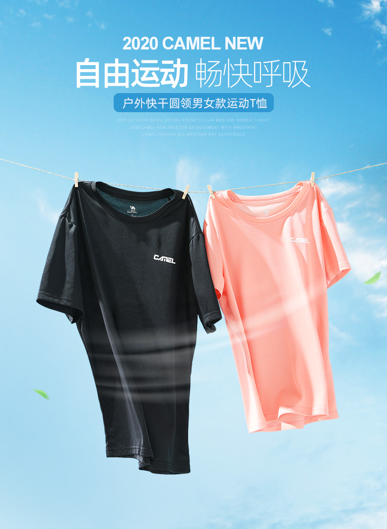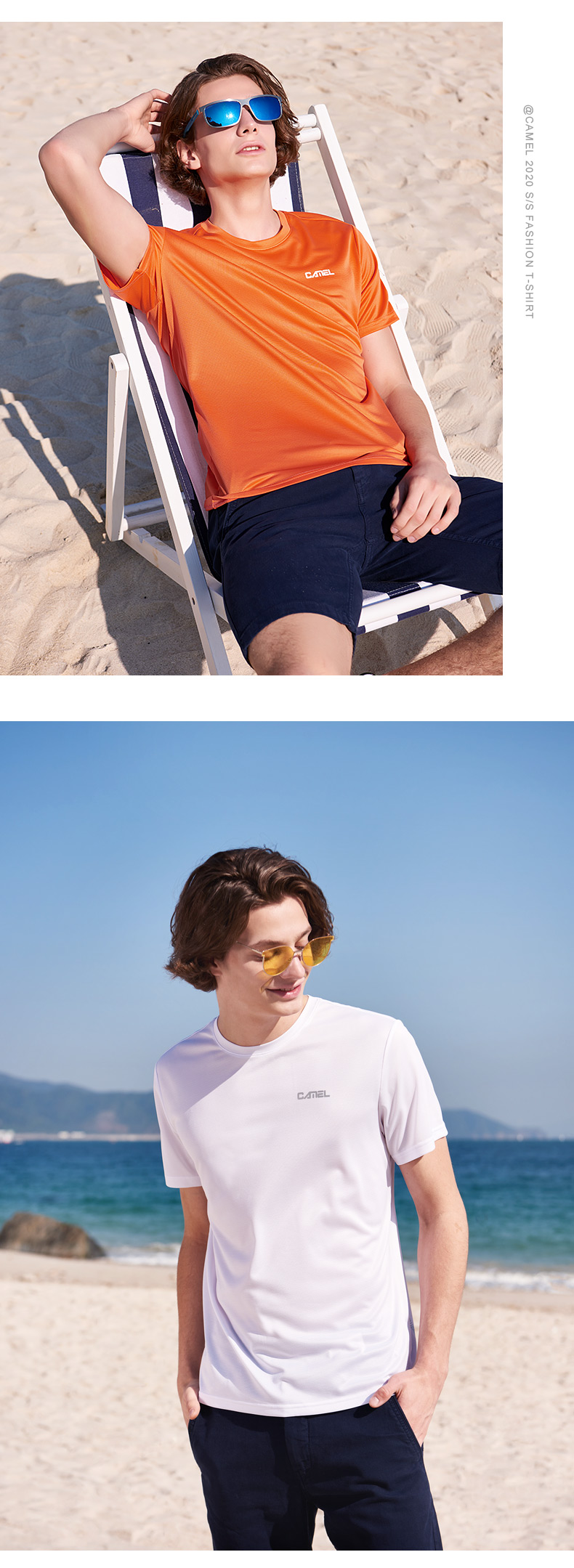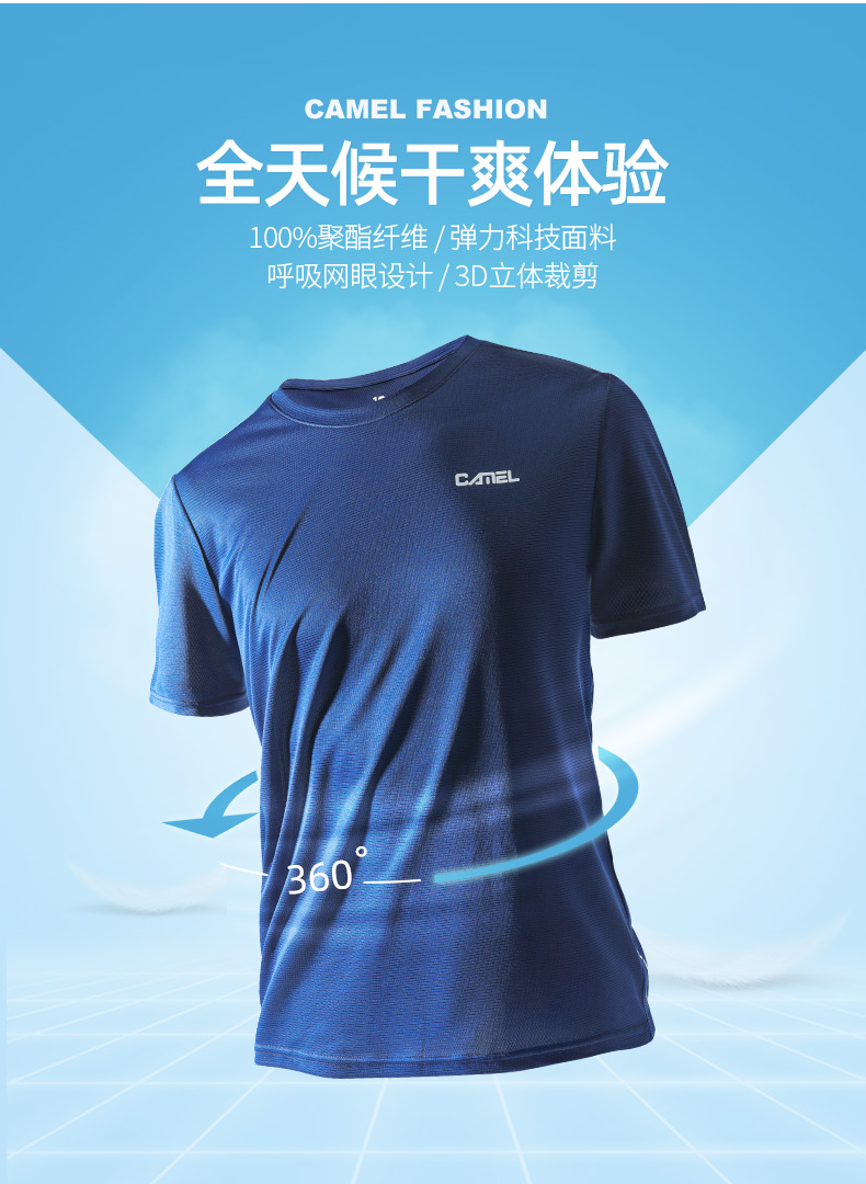 駱駝男士T恤短袖2023夏季透氣速乾T恤男圓領百搭運動跑步健身上衣
