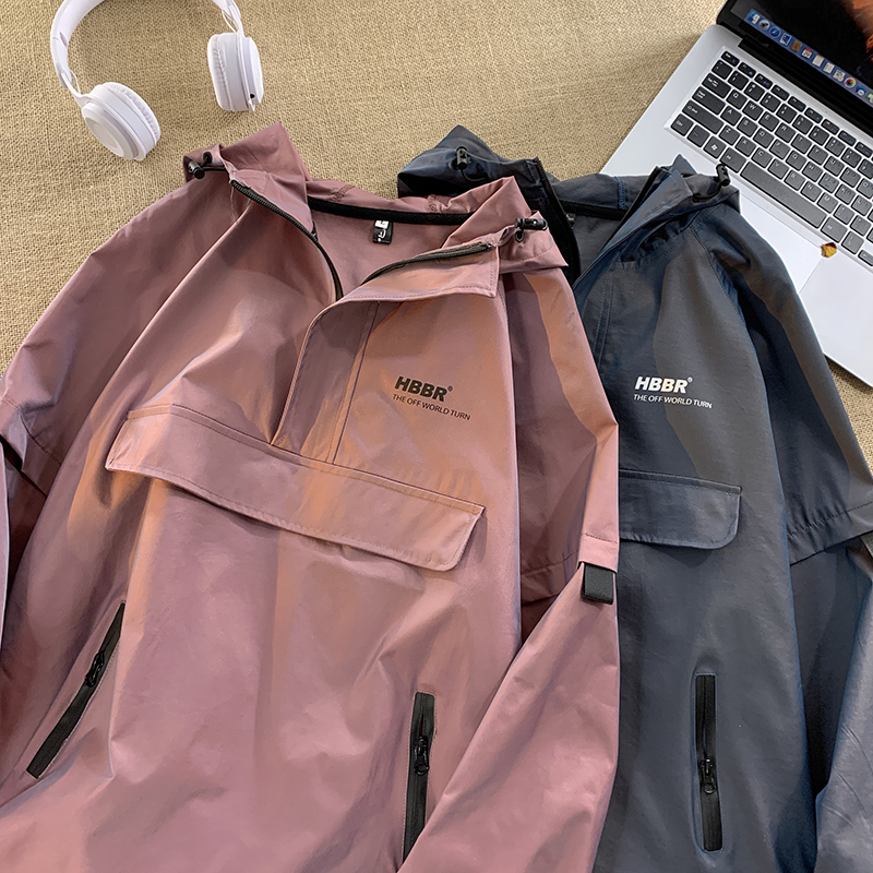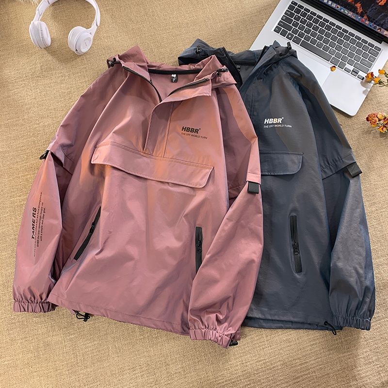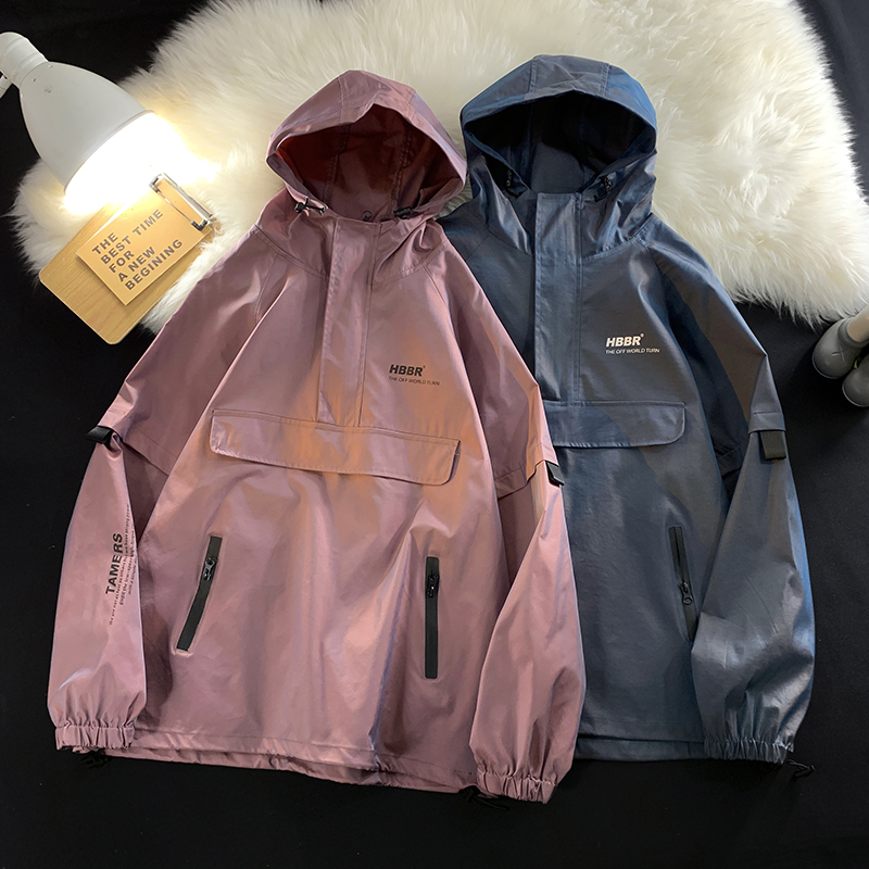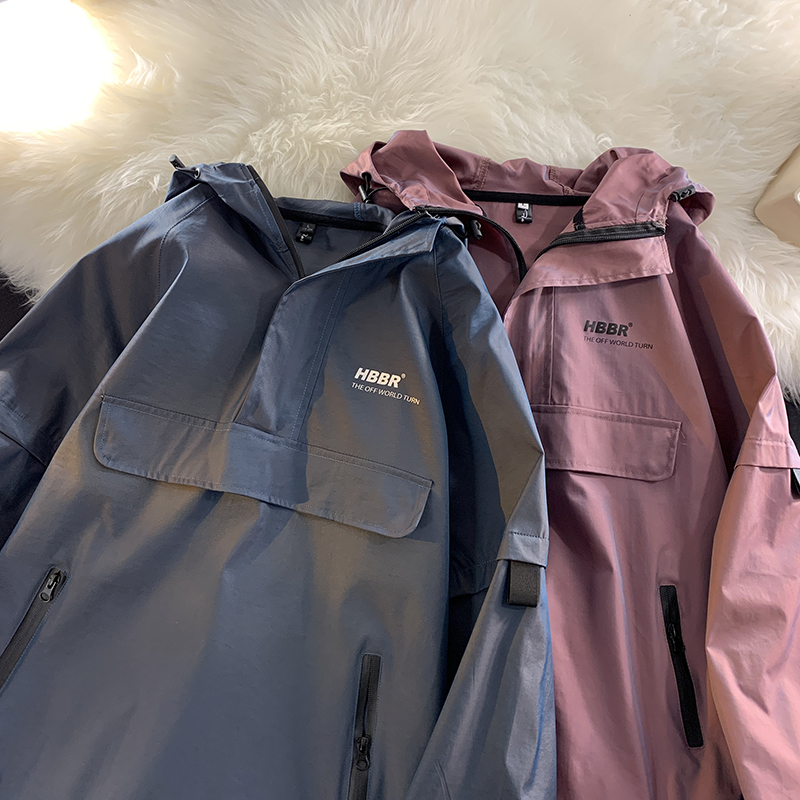 半拉鍊衛衣衝鋒衣女韓系高級美式復古大尺碼胖mm顯瘦套頭工裝外套春