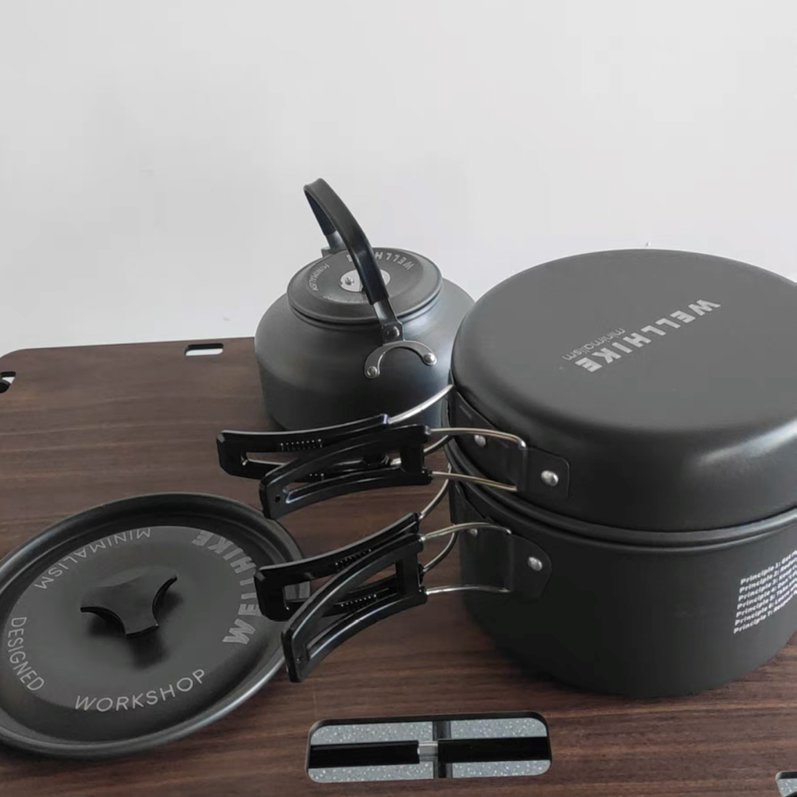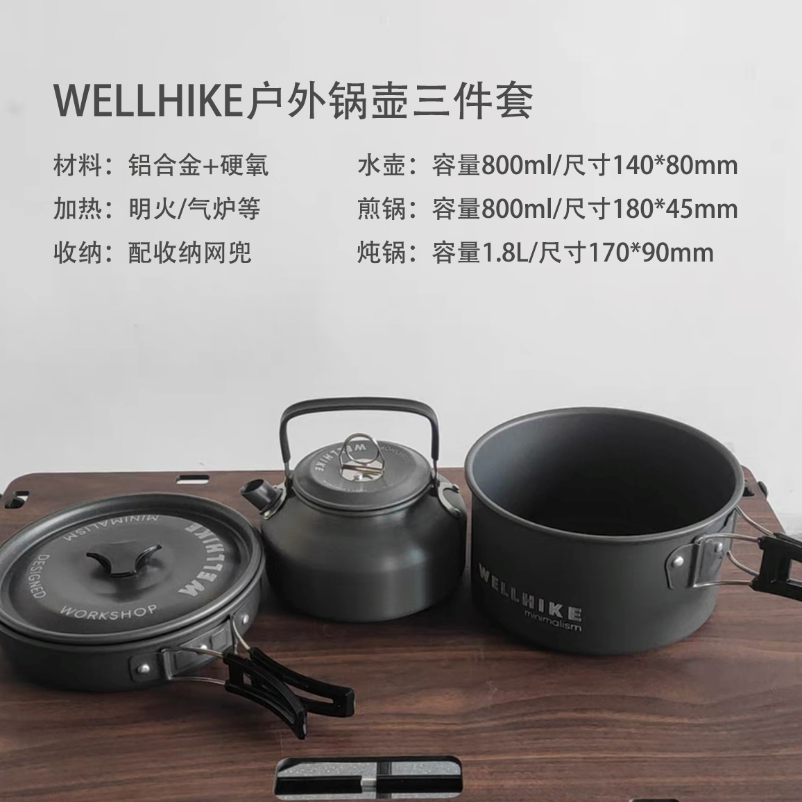 Wellhike出口日本戶外露營3水壺煎鍋燉鍋套裝鍋具三件套