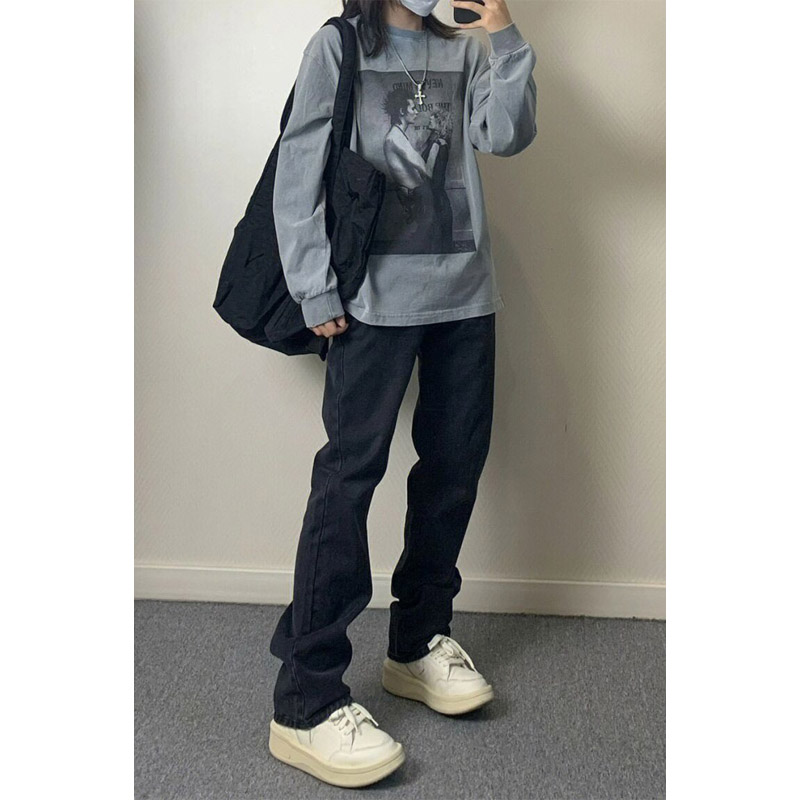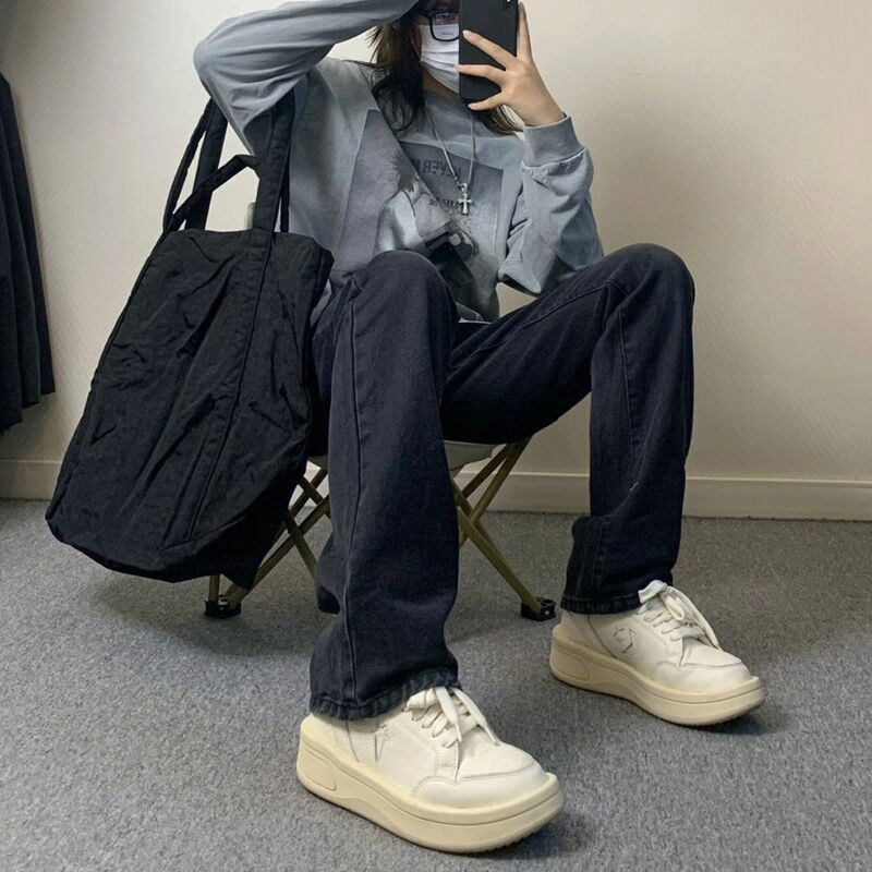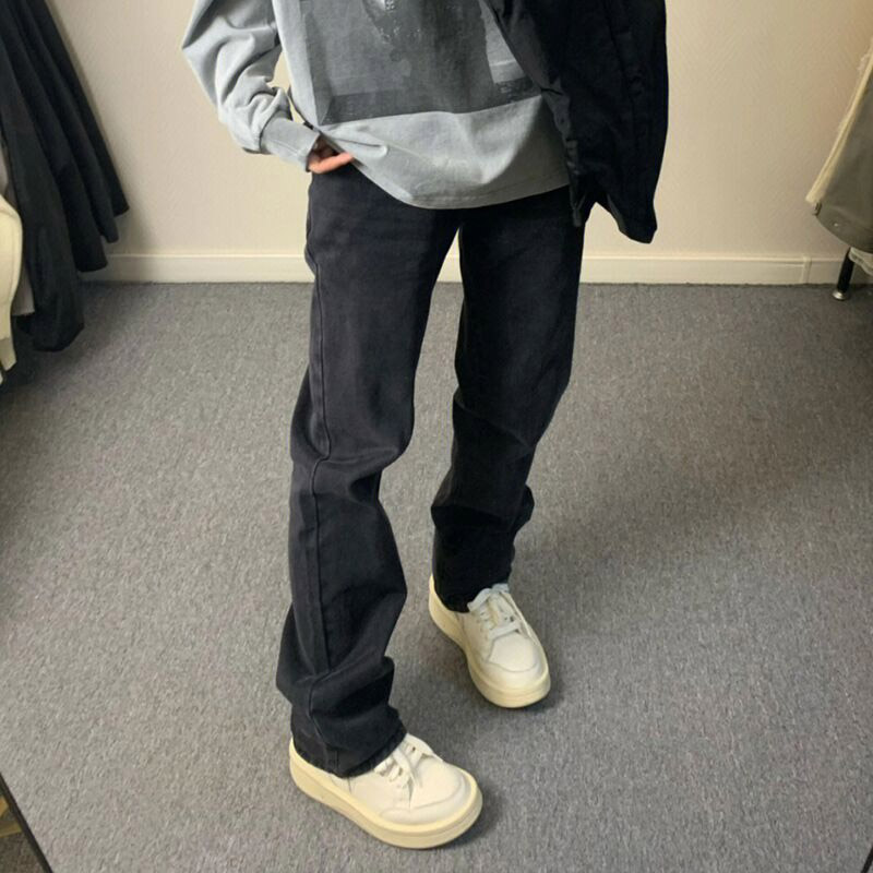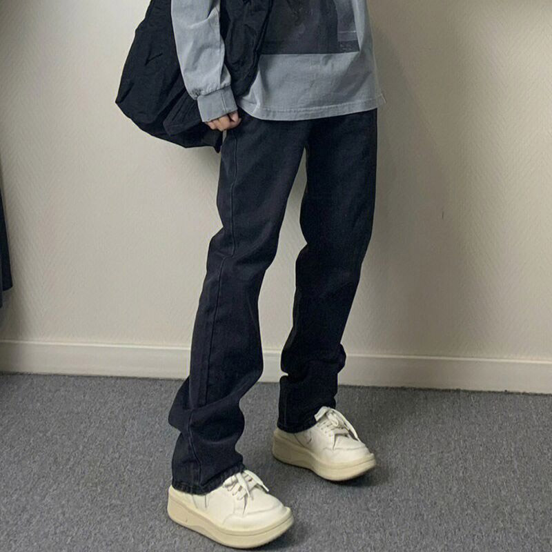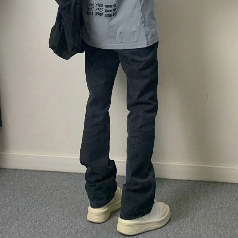 cleanfit純黑色牛仔褲夏季薄款美式高街vibe風褲子修身直筒微喇叭褲