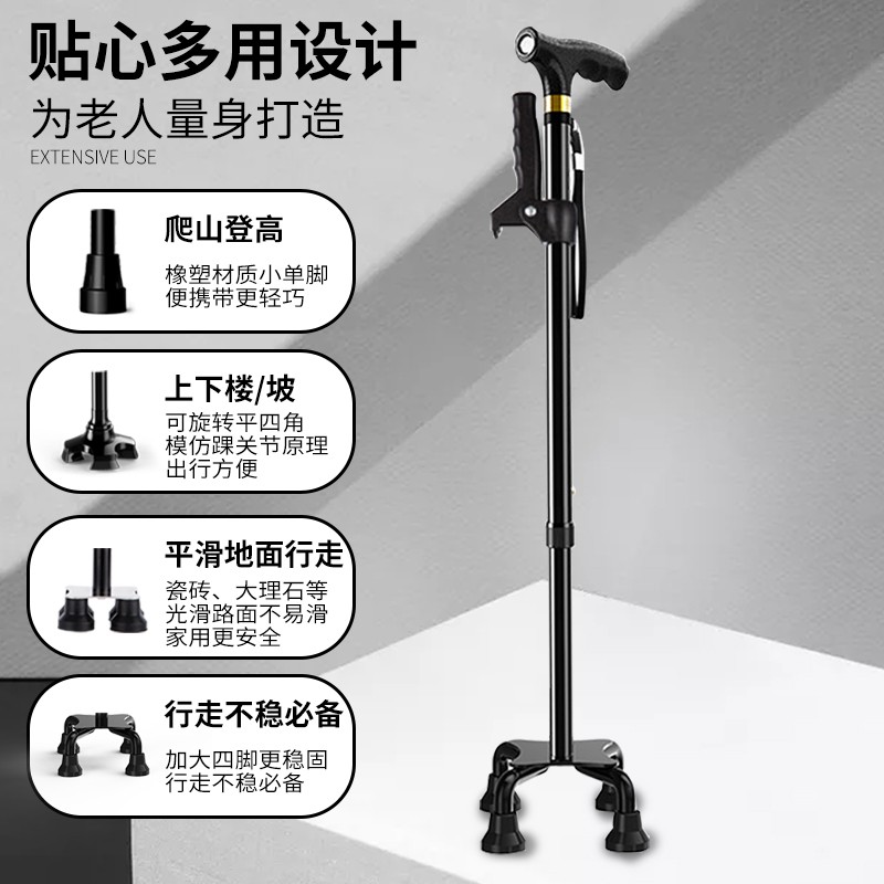 老人柺杖柺棍扶手防滑輕便老年人多功能手杖可伸縮四腳拐扙捌扙GZ