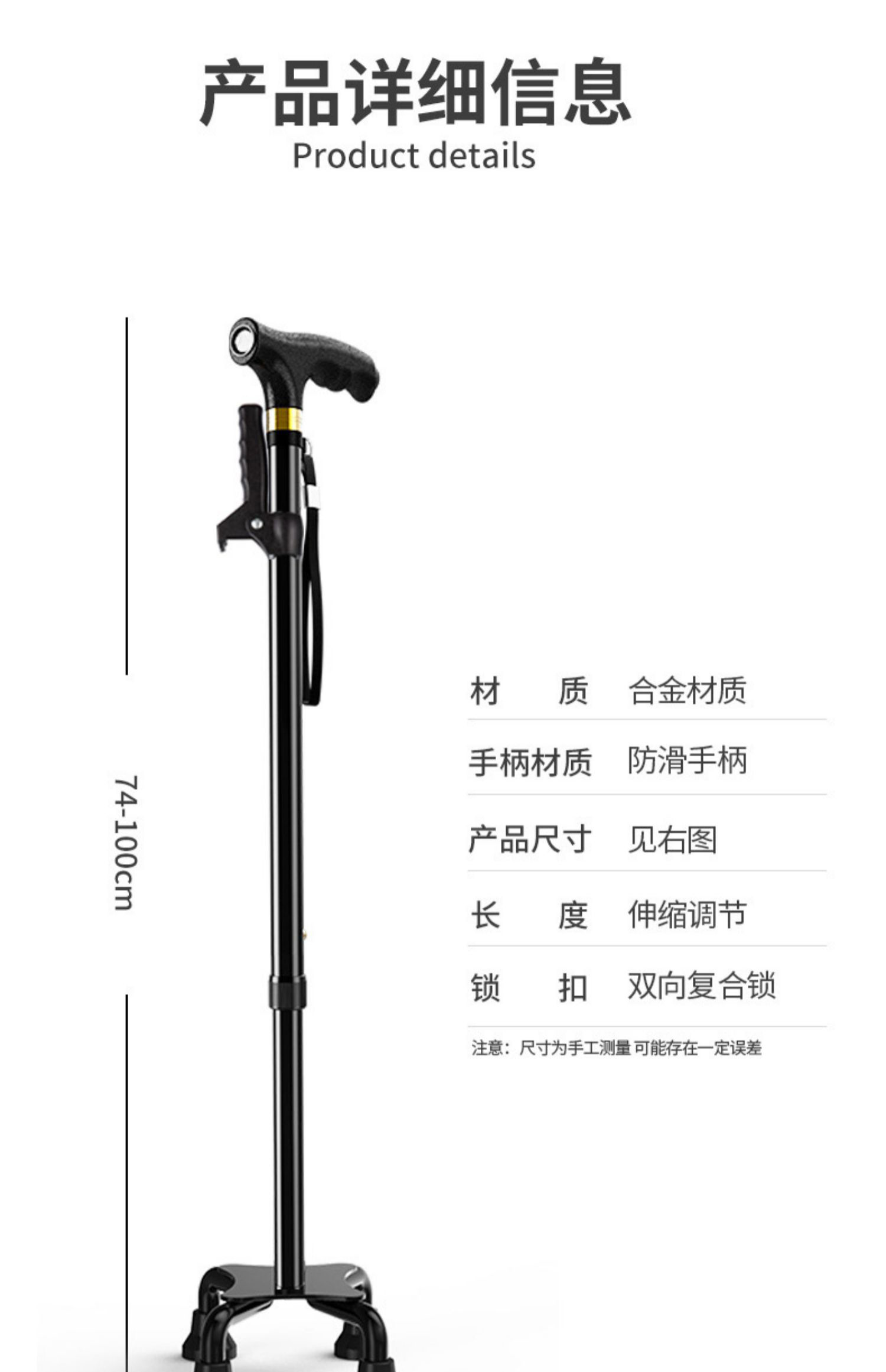 顏色分類 優勢:【德國柺杖,超輕耐用,承重更強】 防滑兩用款【無燈+防滑手柄】單腳 防滑兩用款【無燈+防滑手柄】單腳+旋轉小四腳 防滑兩用款【無燈+防滑手柄】單腳+穩固大四腳 防滑兩用款【無燈+防滑手柄】單腳+固定小四腳 黑色防滑兩用【帶燈+防滑按摩手柄】旋轉小四腳+單腳 酒紅防滑兩用【帶燈+防滑按摩手柄】旋轉小四腳+單腳 黑色防滑兩用【扶手+帶燈防滑手柄】旋轉小四腳+單腳 酒紅防滑兩用【扶手+帶燈防滑手柄】旋轉小四腳+單腳 黑色防滑兩用【帶燈+防滑按摩手柄】穩固大四腳+單腳 酒紅防滑兩用【帶燈+防滑按摩手柄】穩固大四腳+單腳 黑色防滑兩用【扶手+帶燈防滑手柄】穩固大四腳+單腳 酒紅防滑兩用【扶手+帶燈防滑手柄】穩固大四腳+單腳 黑色防滑兩用【帶燈+防滑按摩手柄】固定小四腳+單腳 酒紅防滑兩用【帶燈+防滑按摩手柄】固定小四腳+單腳 黑色防滑兩用【扶手+帶燈防滑手柄】固定小四腳 酒紅防滑兩用【扶手+帶燈防滑手柄】固定小四腳+單腳 三用全配款【強光+舒適手柄】單腳+大四腳+小四腳 三用酒紅款【強光+舒適手柄】單腳+大四腳+小四腳 三用扶手款【強光+舒適手柄】單腳+大四腳+小四腳 酒紅扶手款【強光+舒適手柄】單腳+大四腳+小四腳 智能兩用款【強光+報警+紅外警示燈】單腳+小四腳 智能三用款【強光+報警+紅外警示燈】單腳+大四腳+小四腳