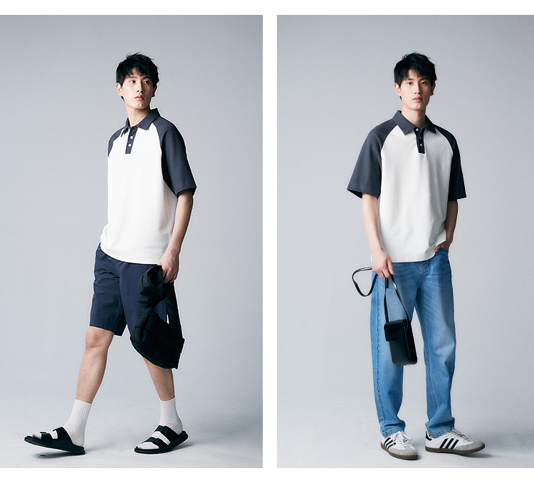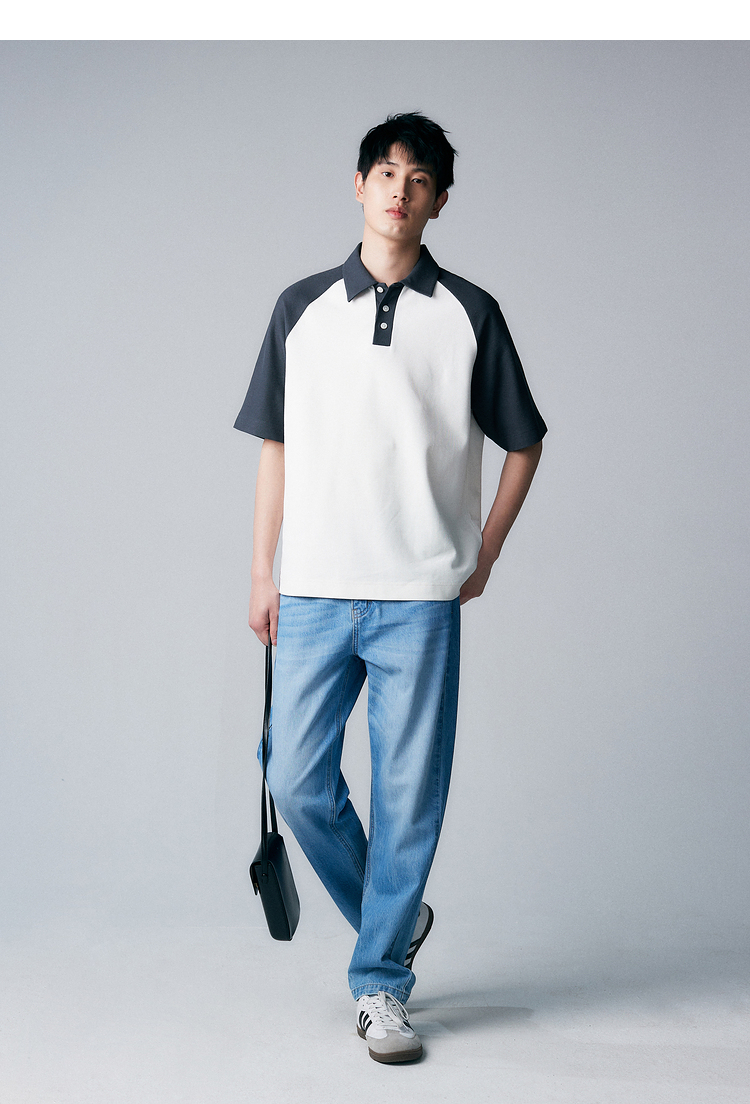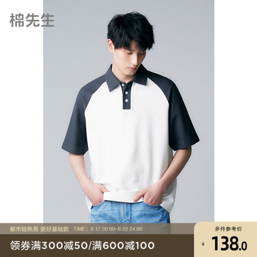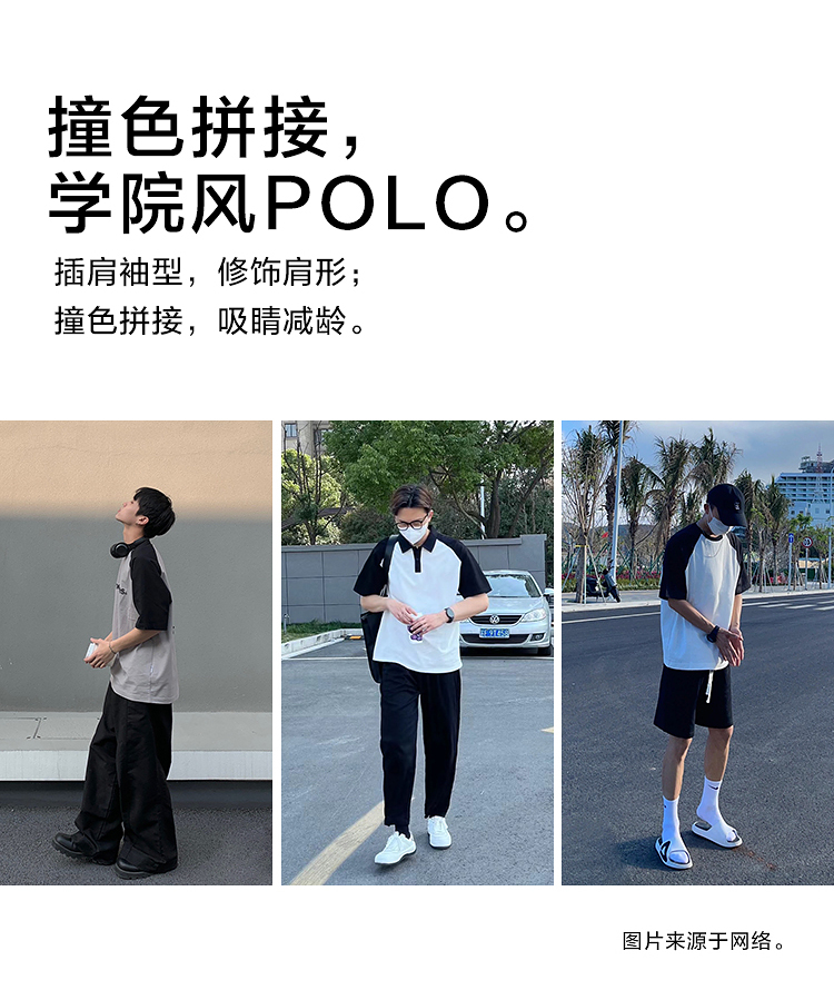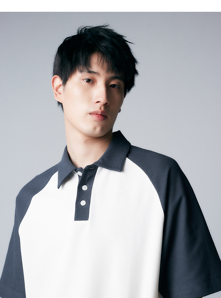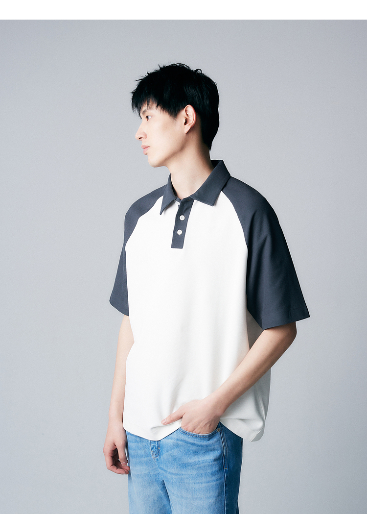 【特優秒殺】重磅全棉撞色插肩袖polo衫短袖夏季時尚休閒翻領t恤