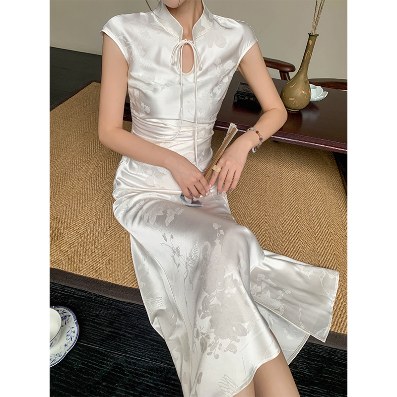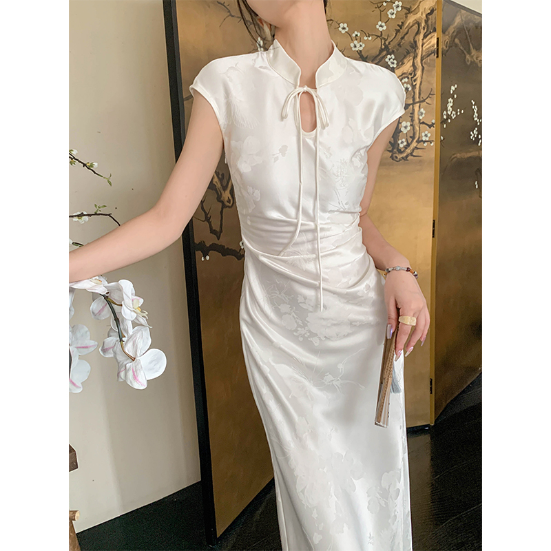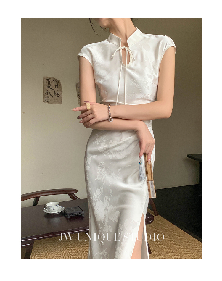 JWUNIQUE新中式國風改良旗袍洋裝女2023年夏季新款包臀開叉長裙
