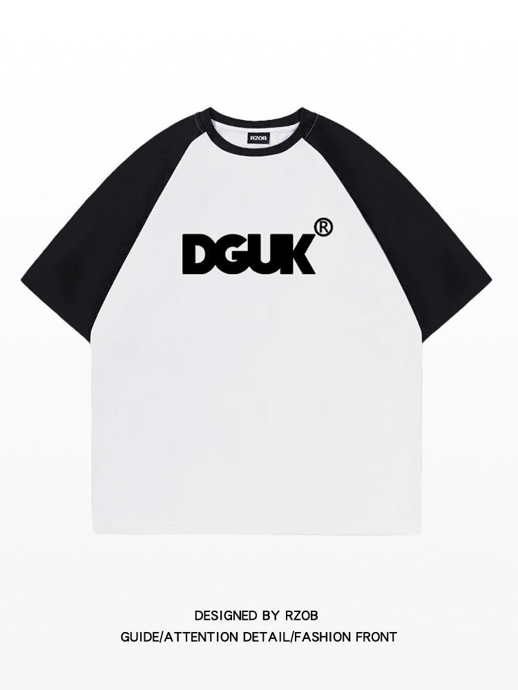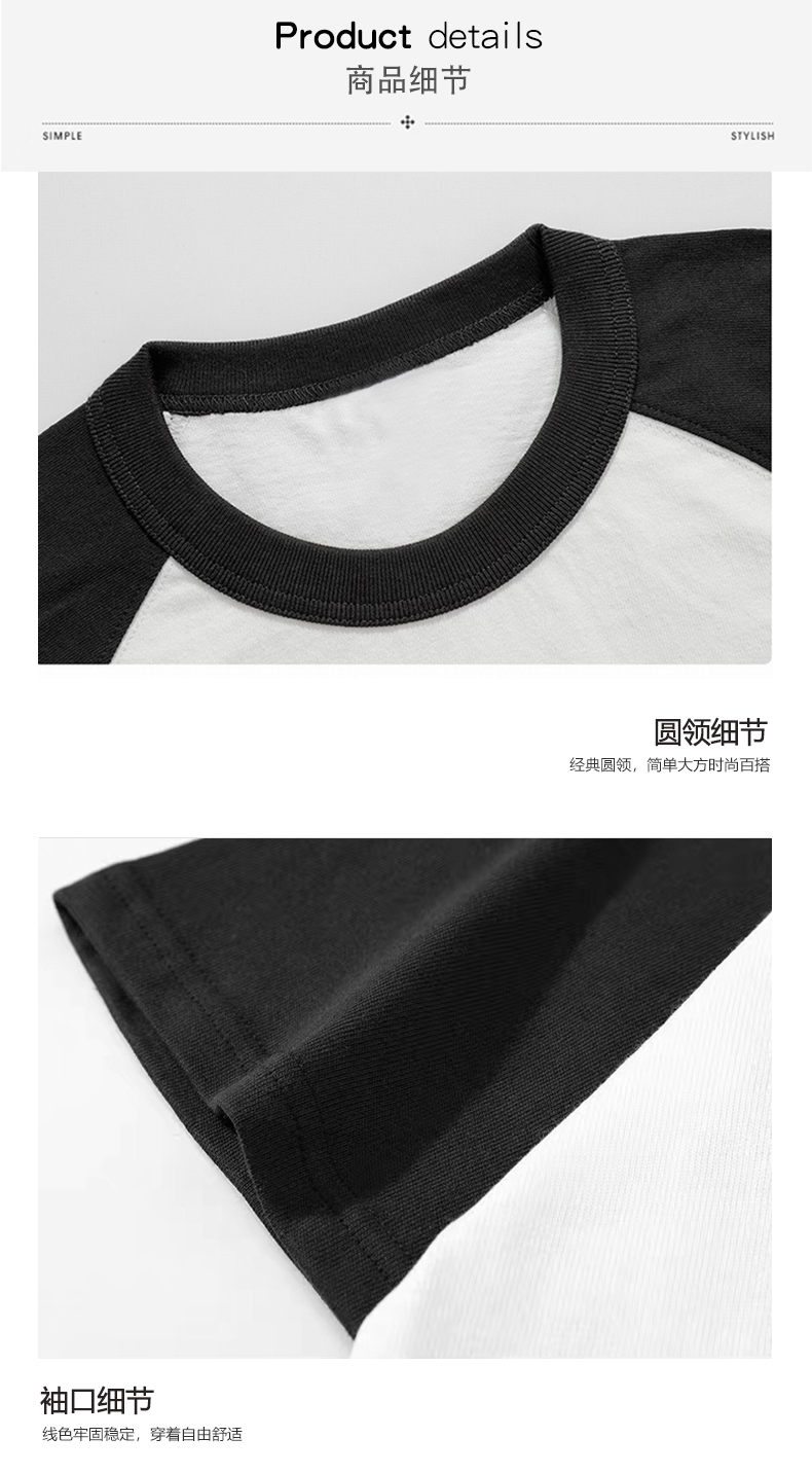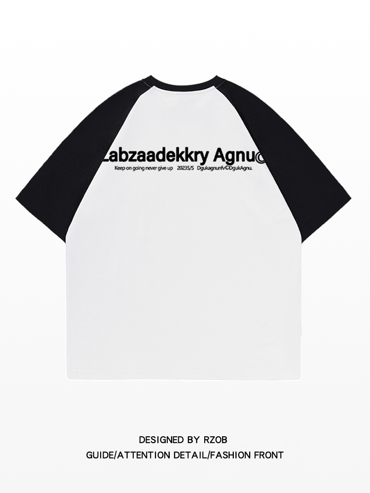 美式高街小眾黑白撞色插肩短袖T恤女夏季純棉重磅oversize情侶裝