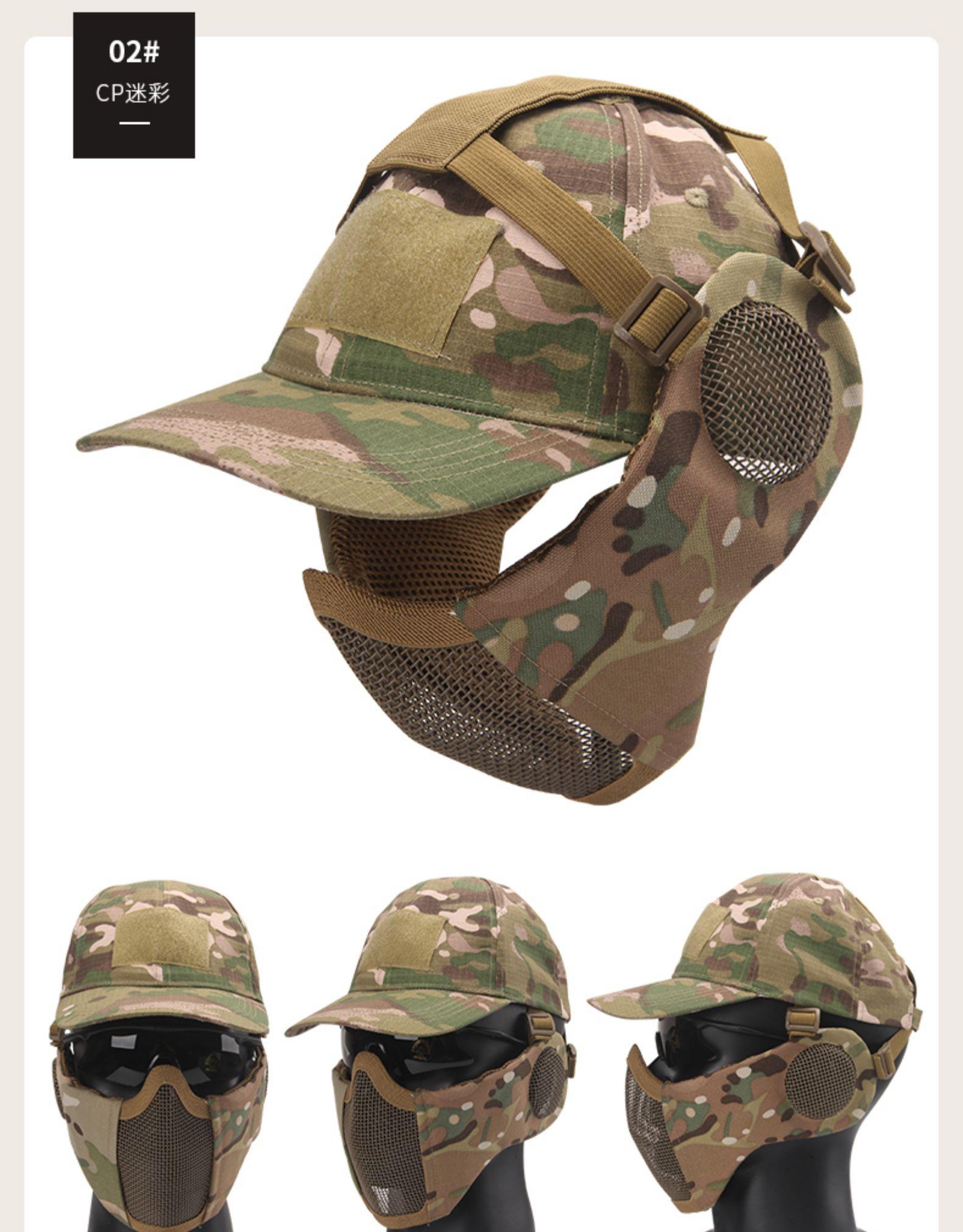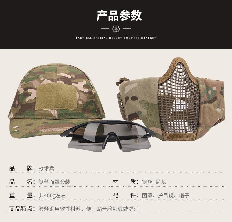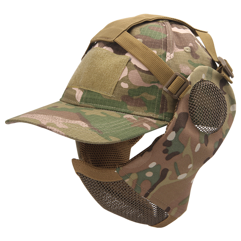 戶外野戰wargame防護裝備軍迷精英鋼絲護耳版面具棒球帽套裝透氣