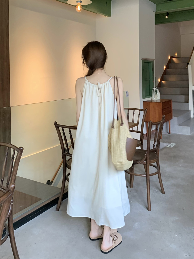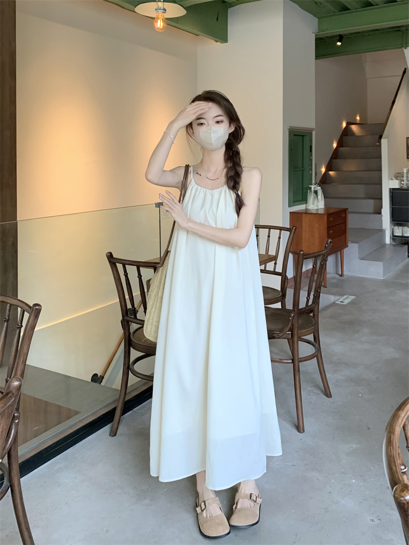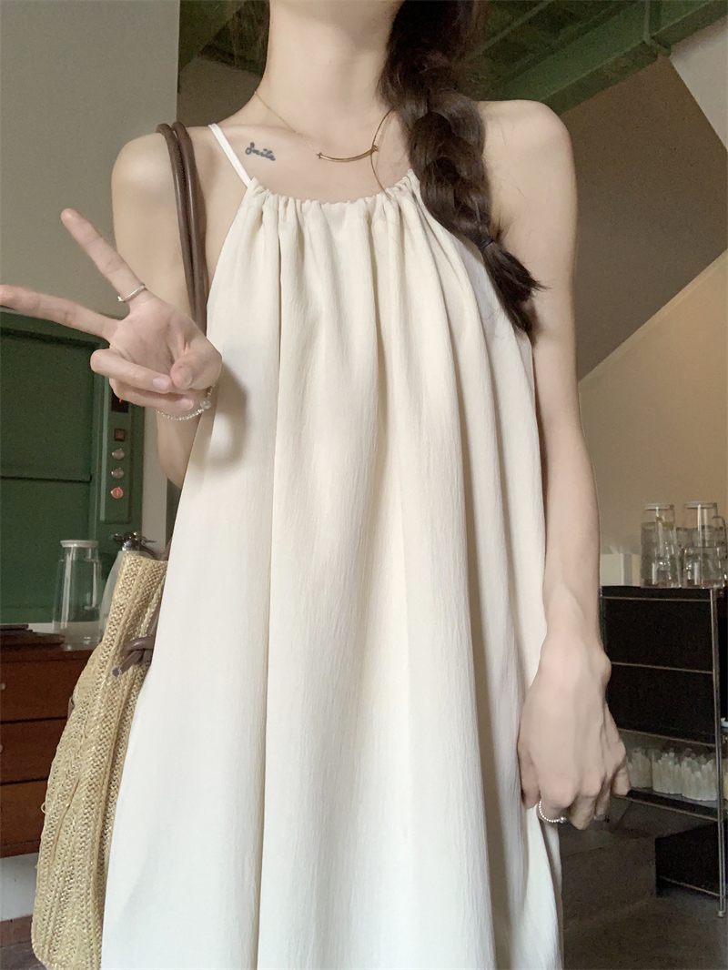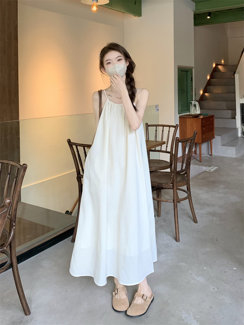 PPHOME欲妹神服~夏季純色無袖寬鬆休閒簡約A字掛頸氣質長裙洋裝