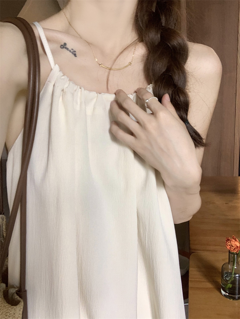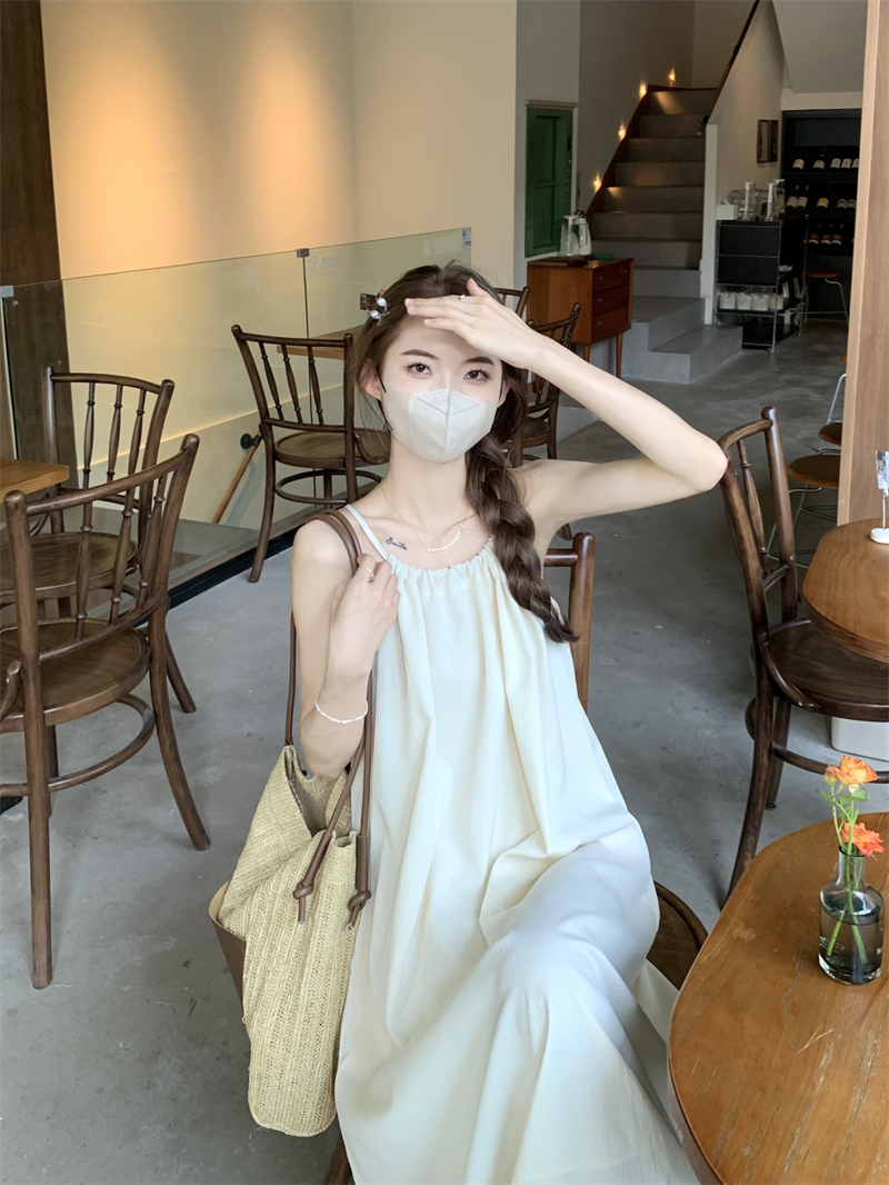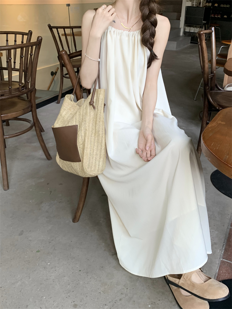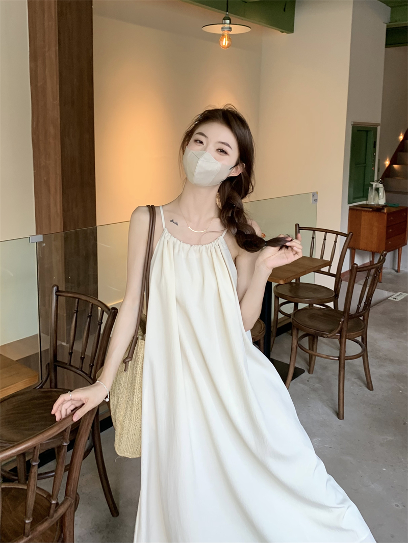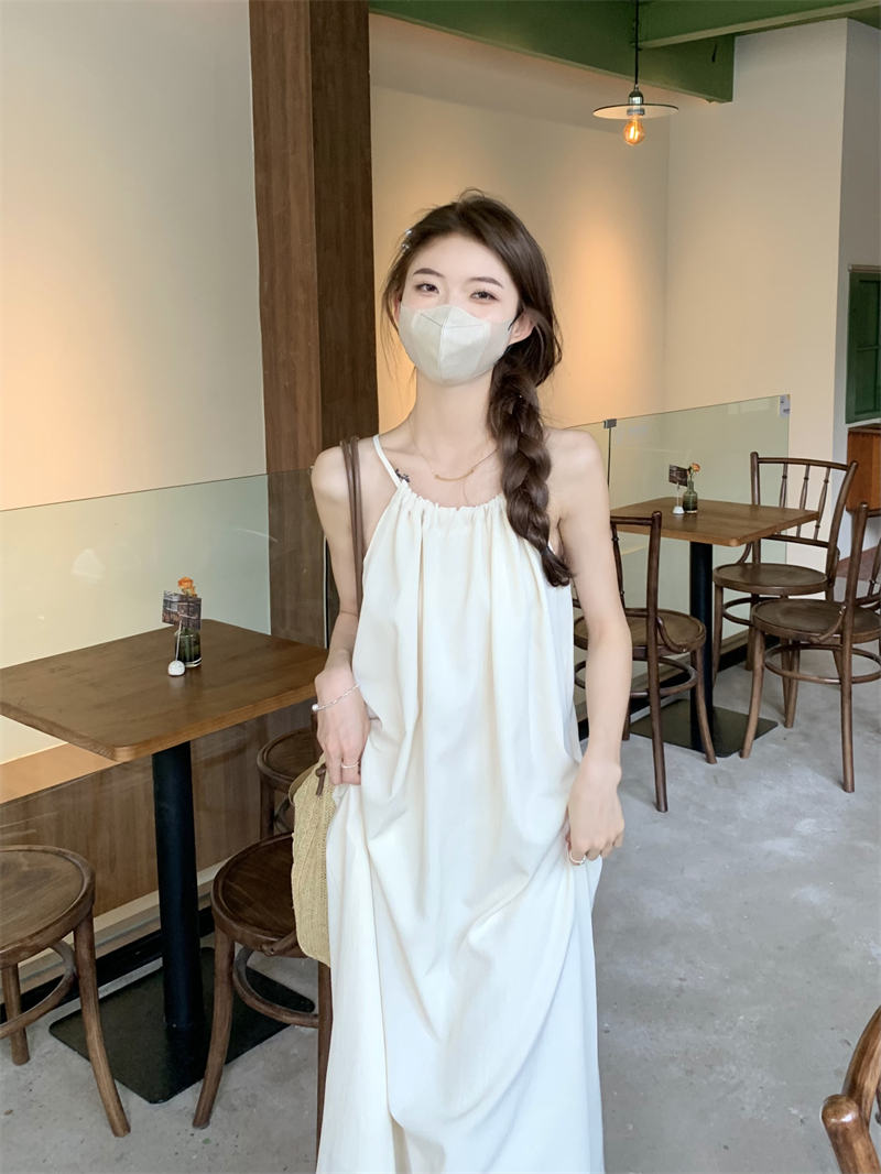 PPHOME欲妹神服~夏季純色無袖寬鬆休閒簡約A字掛頸氣質長裙洋裝