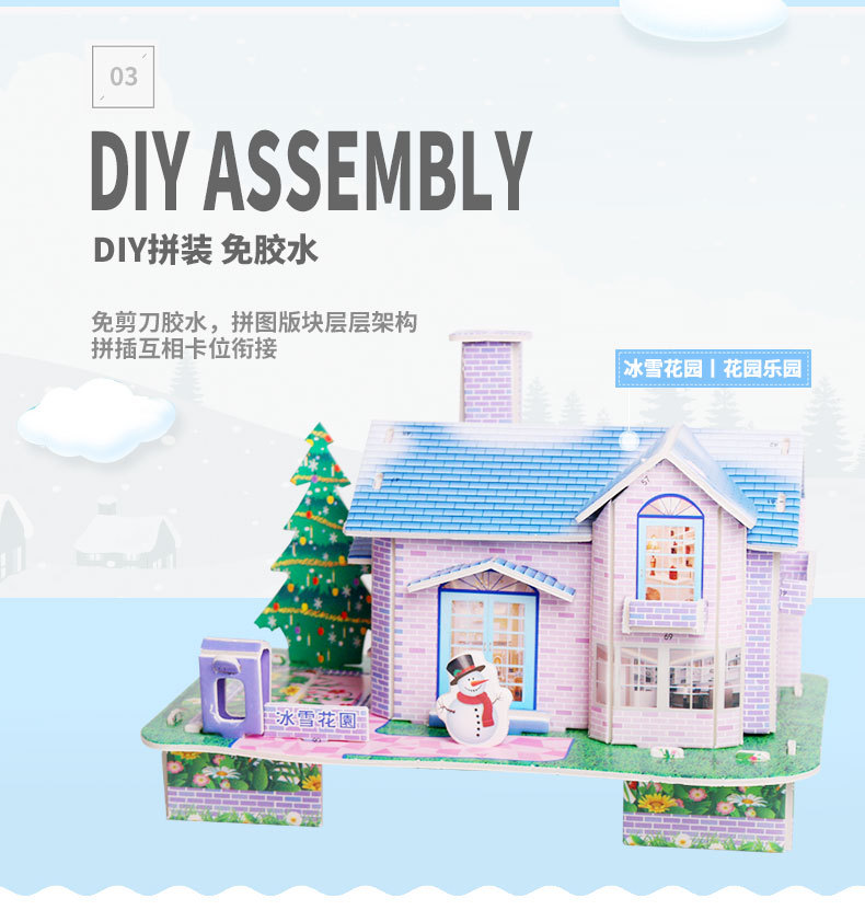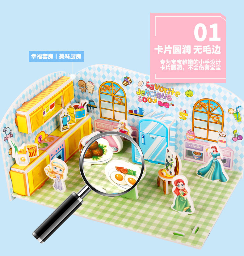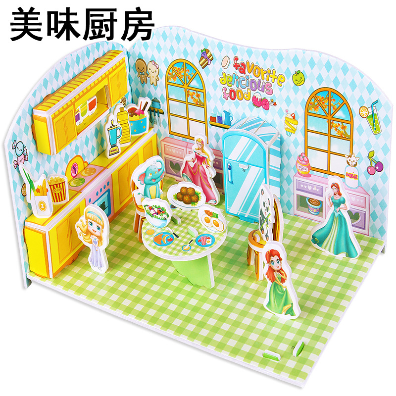 3D立体拼图幼儿园diy手工纸制模型拼图 房子卧室拼装玩具装饰礼品
