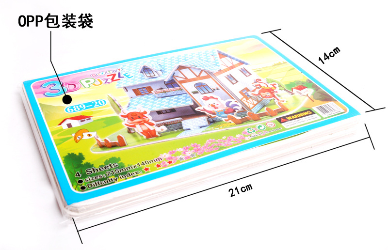约14*21cm每个 ,每个拼图有4片,箱装数量:260个。