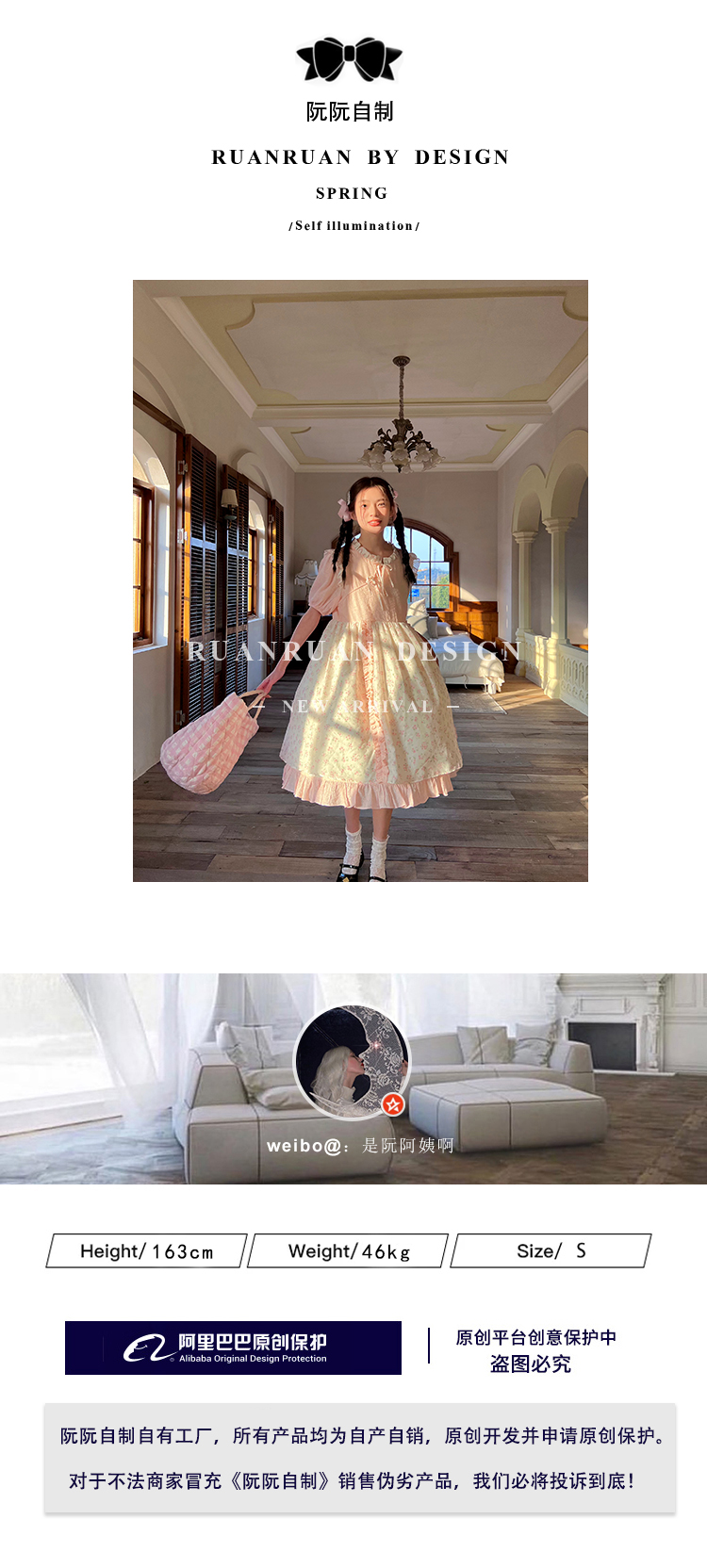 阮阮自制2023夏新款法式小眾設計甜美溫柔風清新木耳邊碎花洋裝