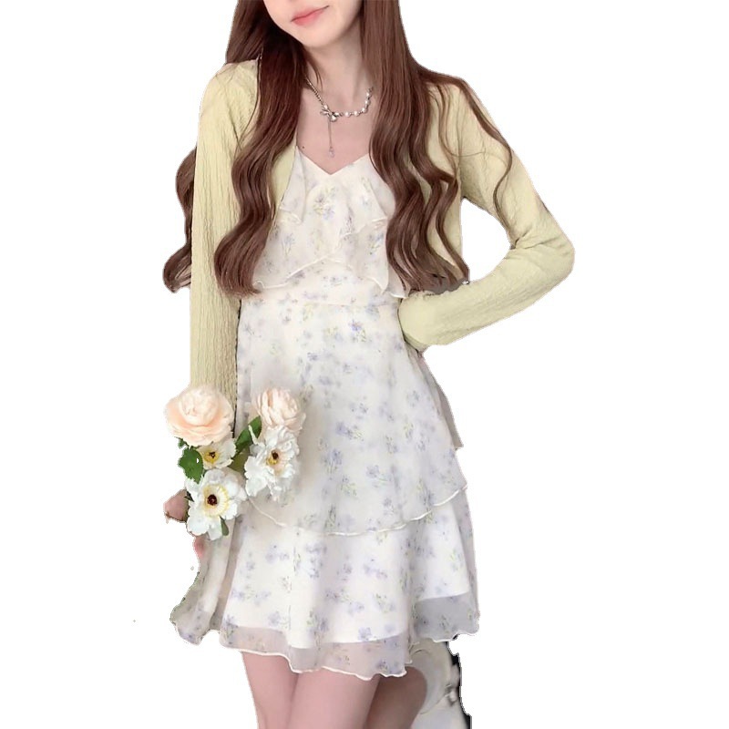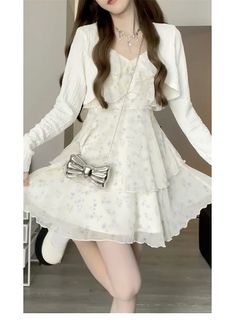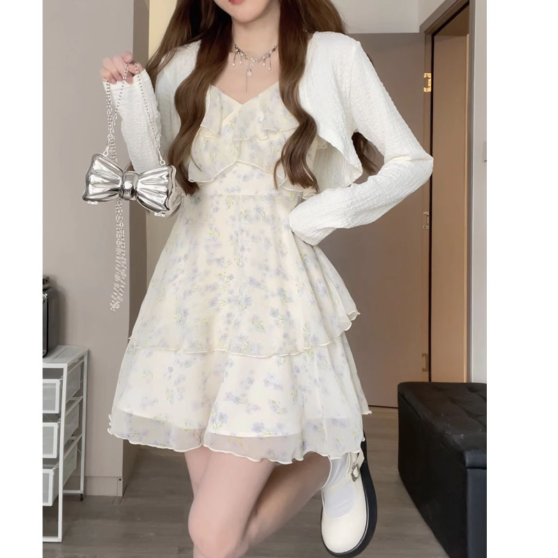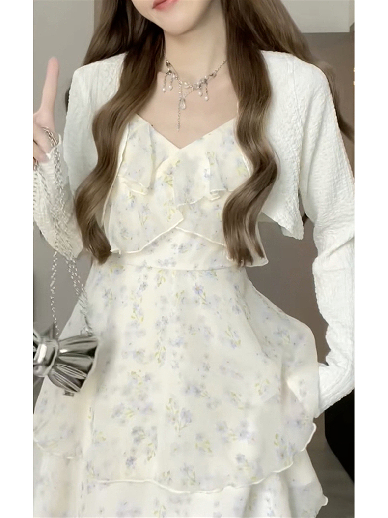 颜色 短款碎花裙,长款碎花裙,白色开衫