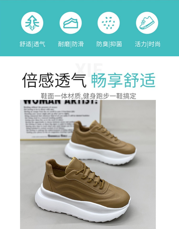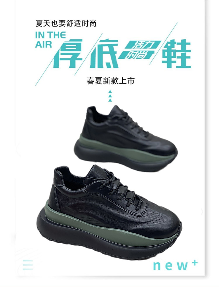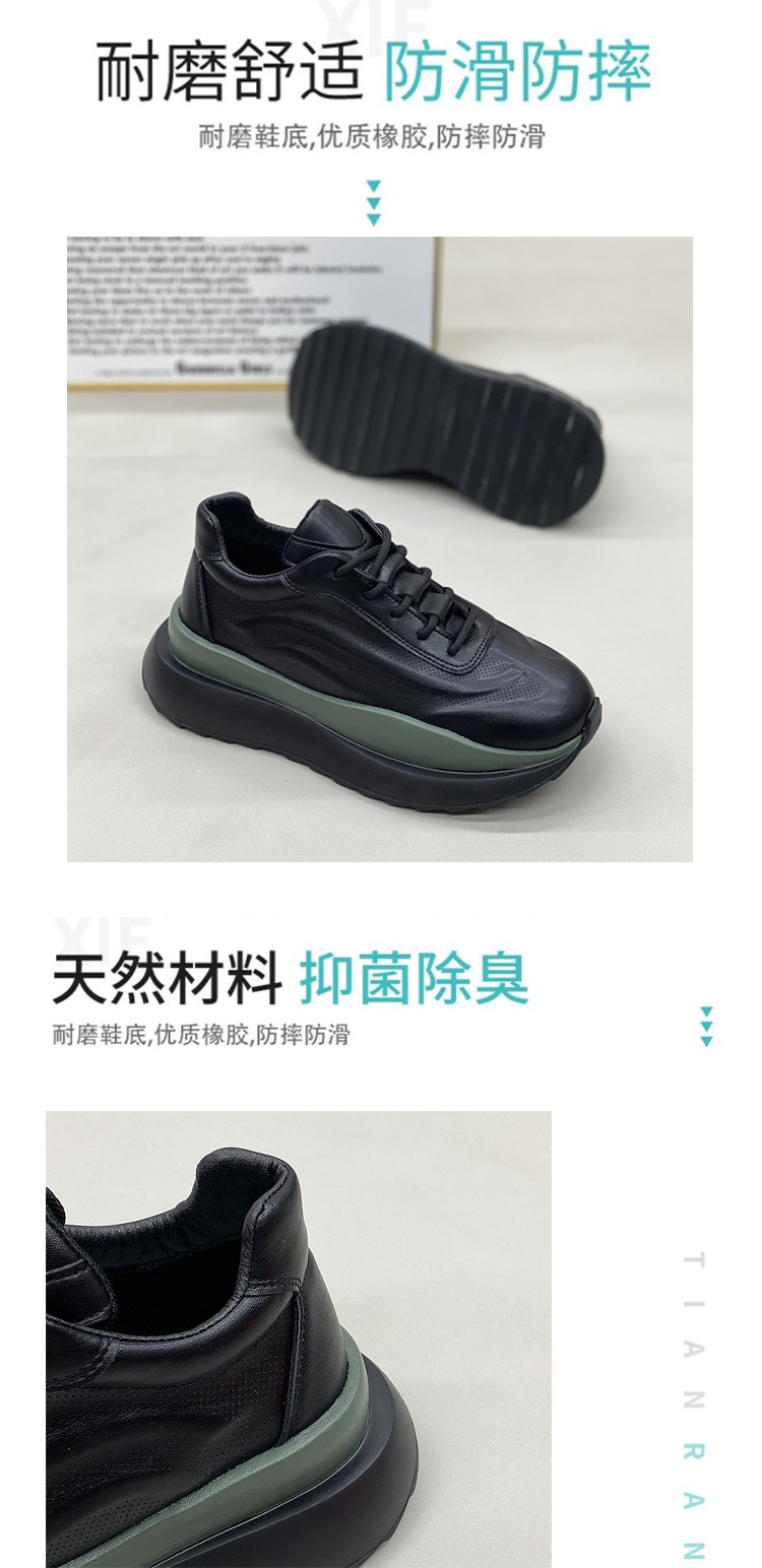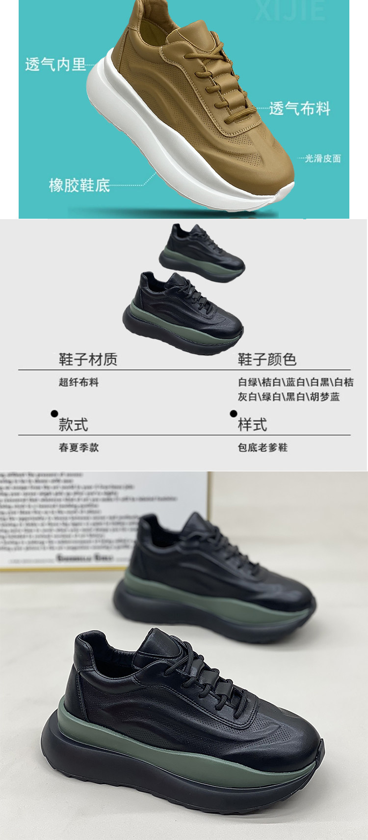 男鞋春季厚底老爹鞋時尚純色舒適運動休閒鞋真皮百搭男士小白鞋潮