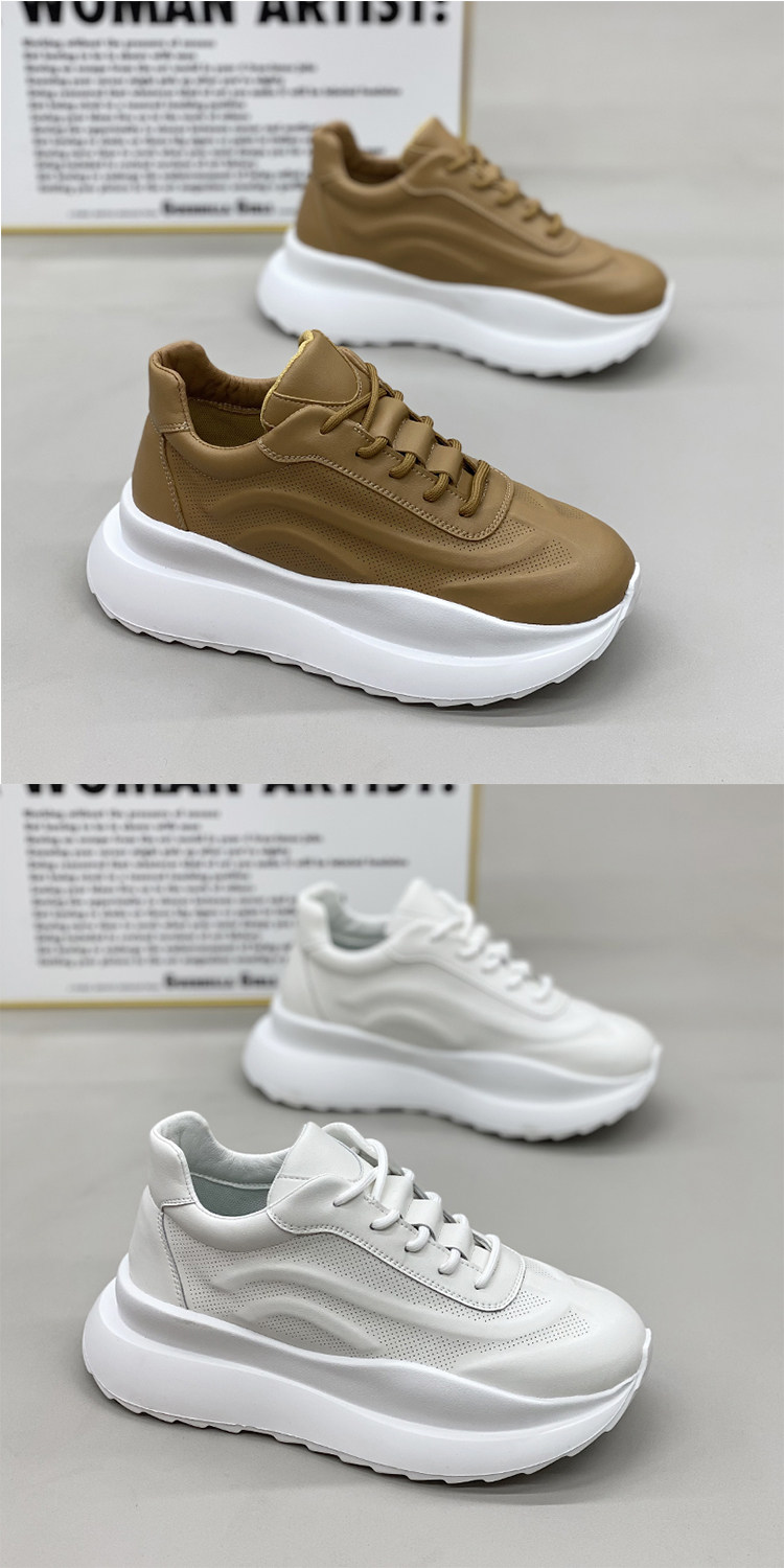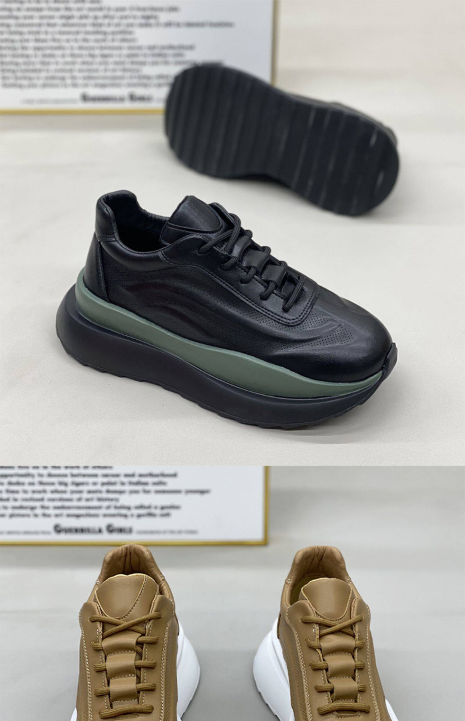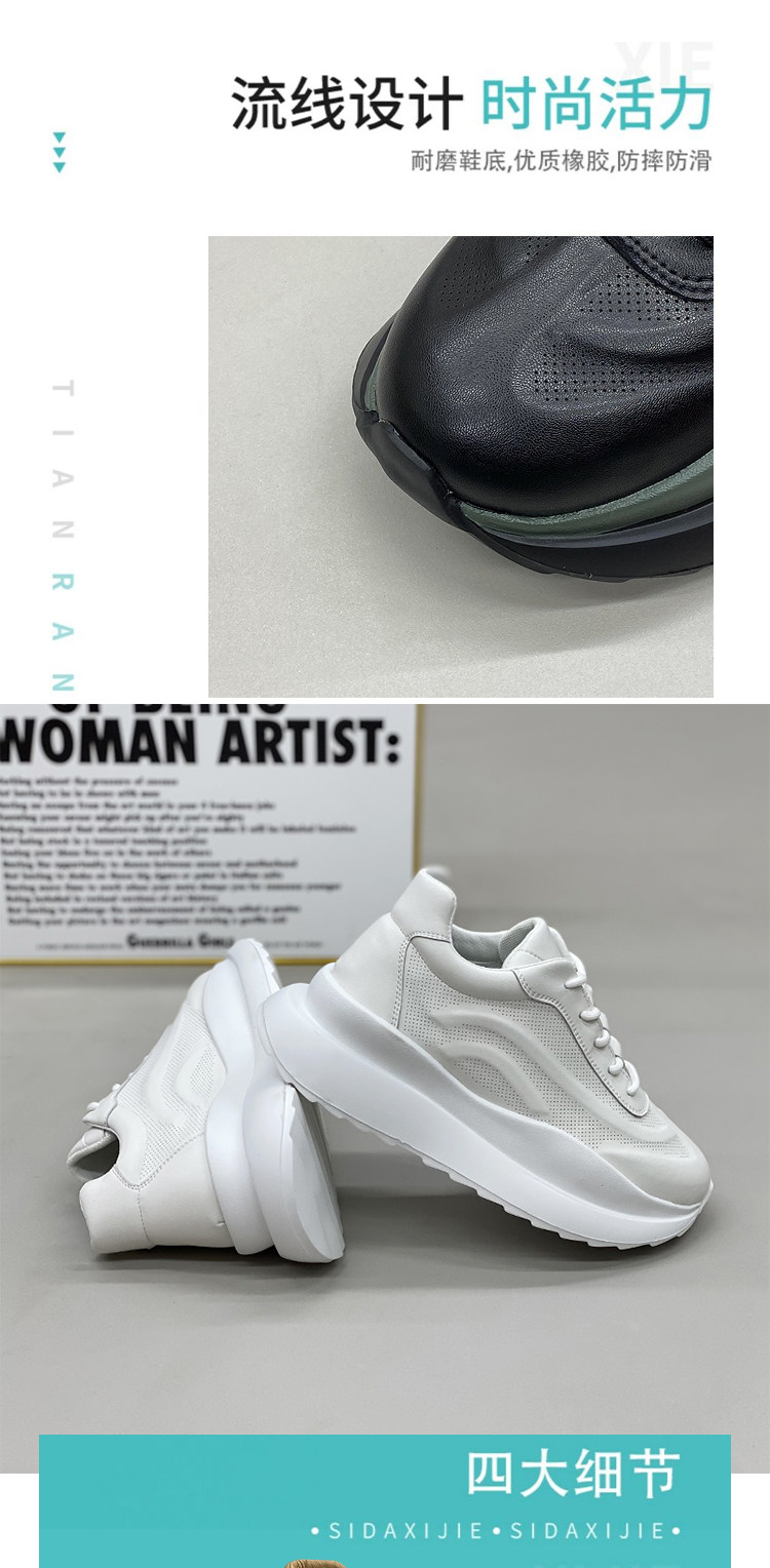 男鞋春季厚底老爹鞋時尚純色舒適運動休閒鞋真皮百搭男士小白鞋潮