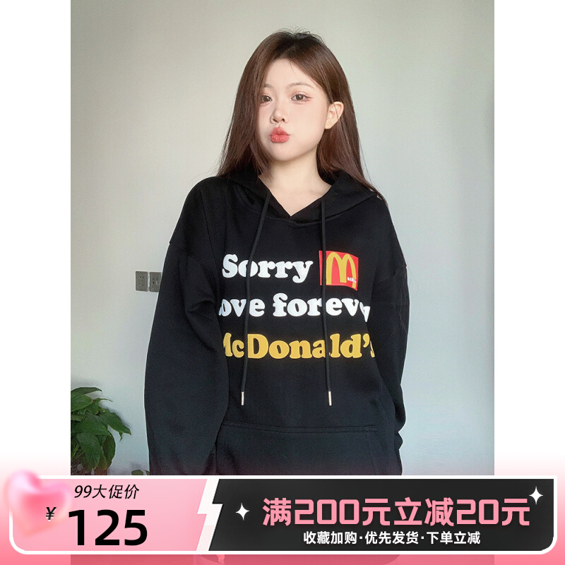 KK Pink國潮美式發泡字母印花連帽運動衫女ins秋季寬鬆情侶長袖外套
