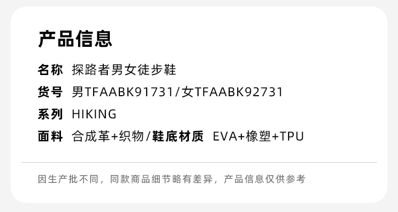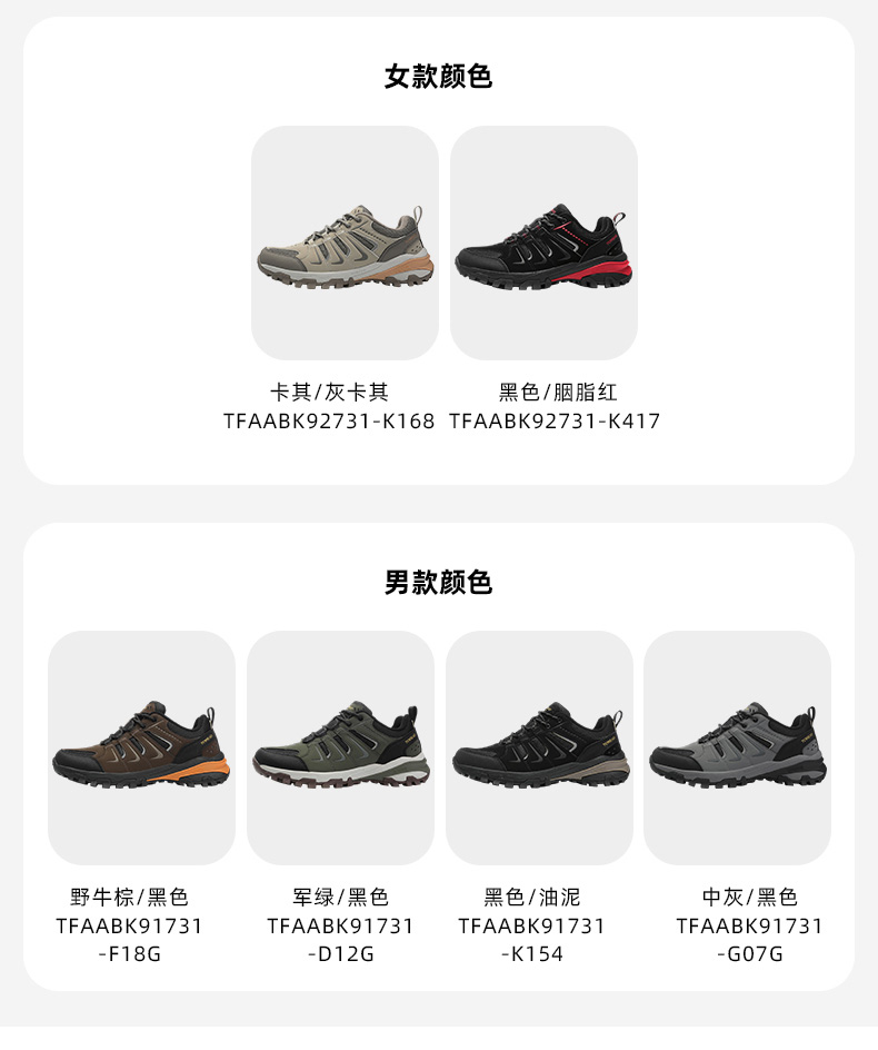 顏色分類 TFAABK91731-黑色/油泥-男 TFAABK91731-軍綠/黑色-男 TFAABK91731-中灰/黑色-男 TFAABK91731-野牛棕/黑色-男 TFAABK92731-黑色/胭脂紅-女 TFAABK92731-卡其灰/卡其-女