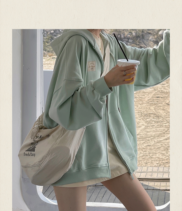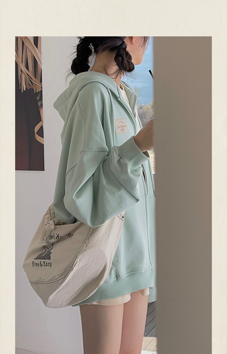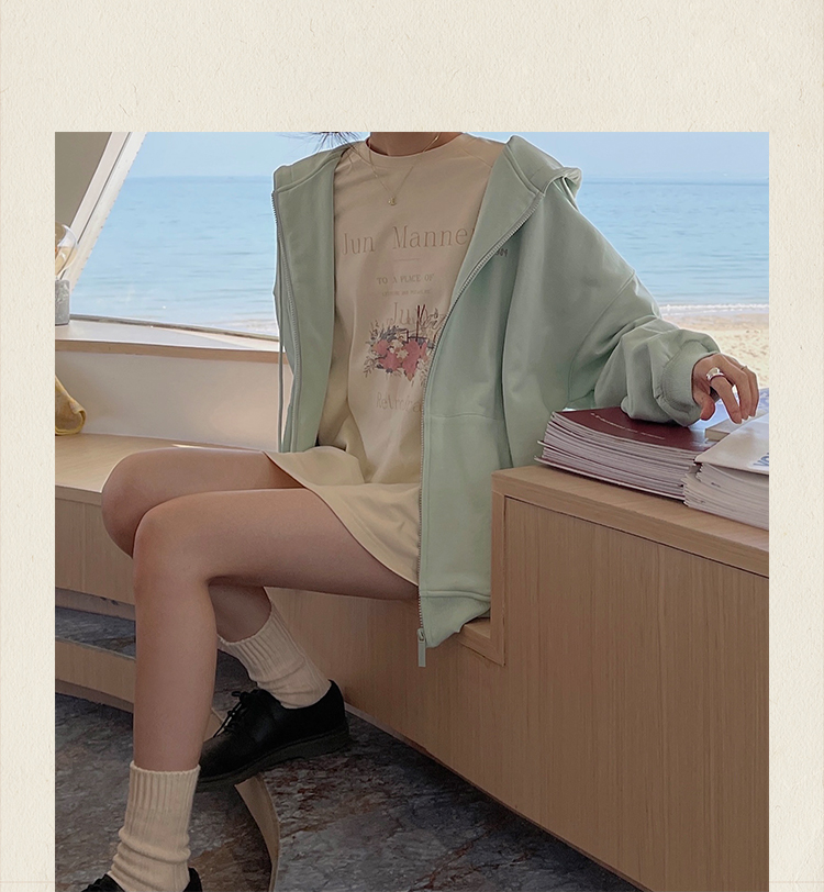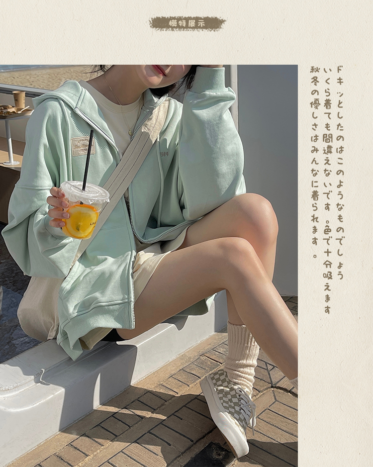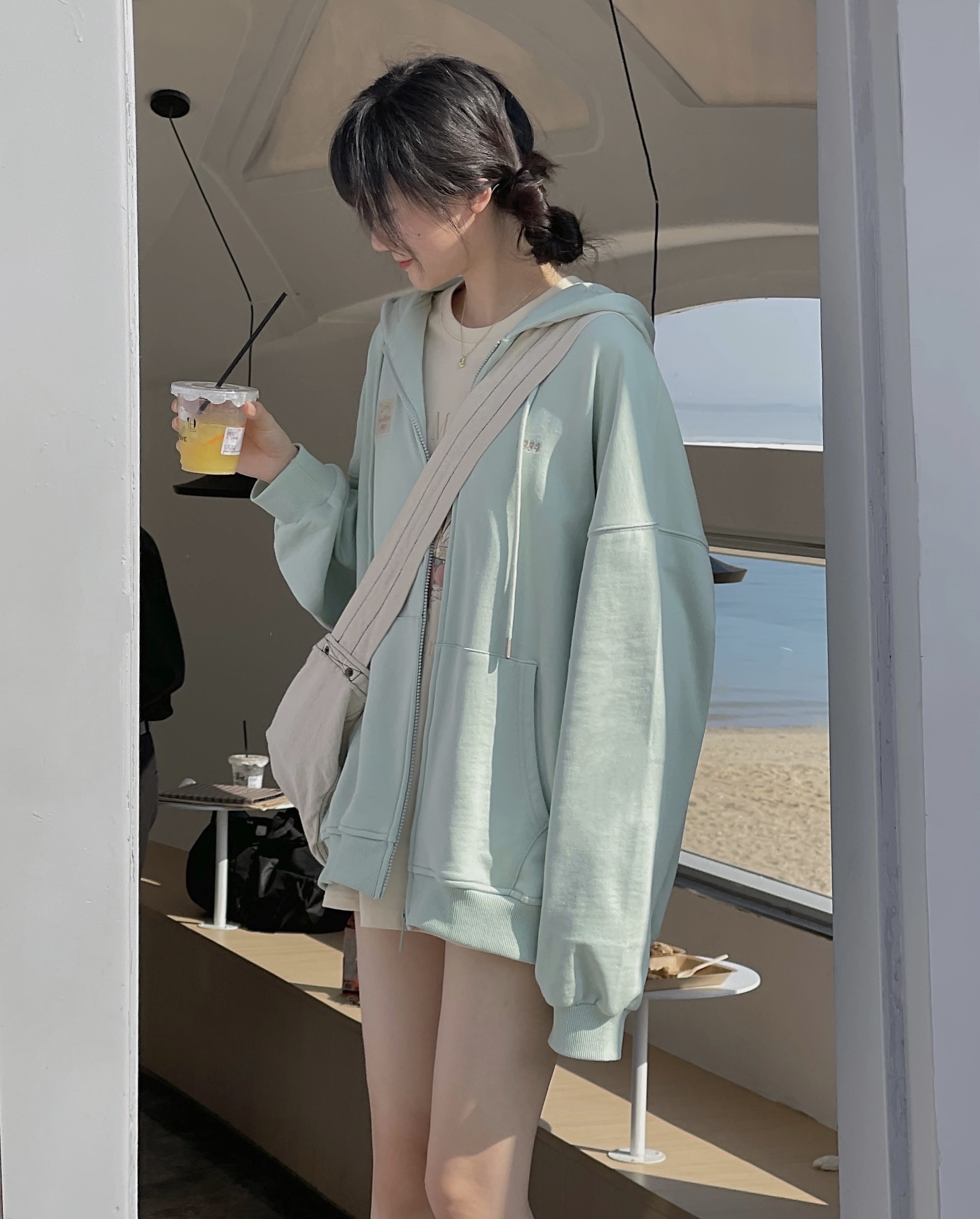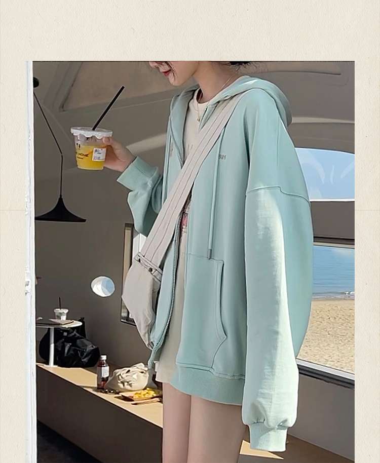 jmwomen綠色連帽運動衫外套女小個子寬鬆2023春秋日系慵懶開衫上衣