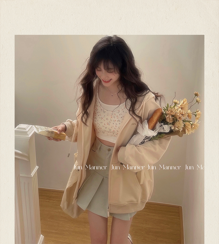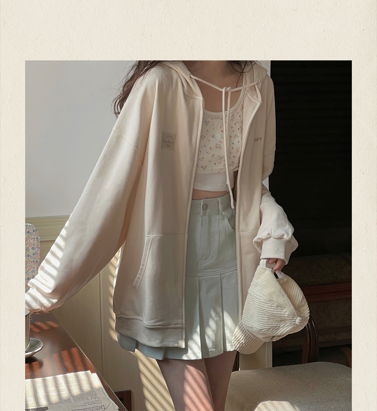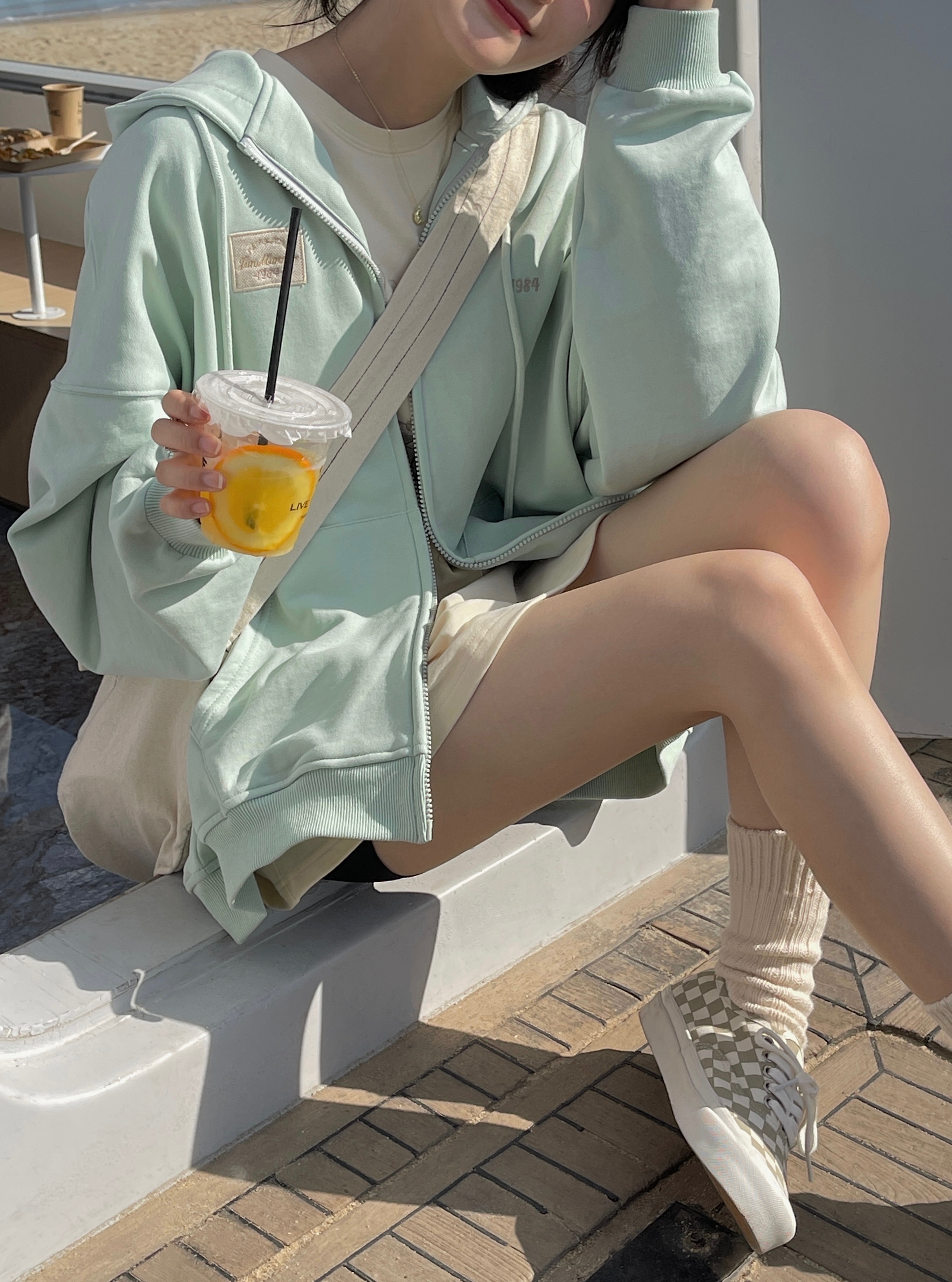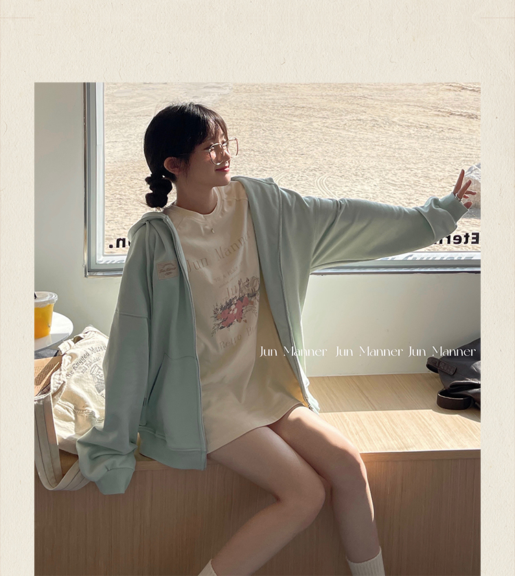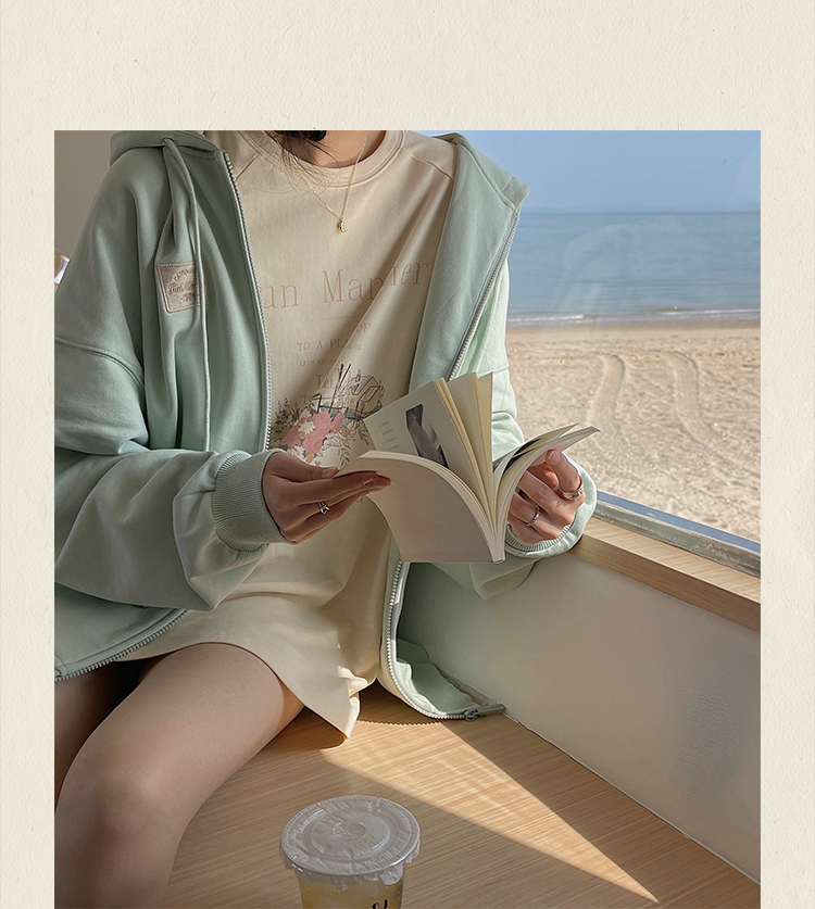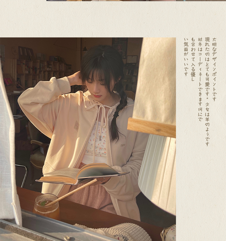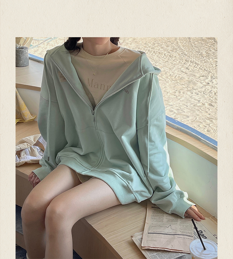 jmwomen綠色連帽運動衫外套女小個子寬鬆2023春秋日系慵懶開衫上衣