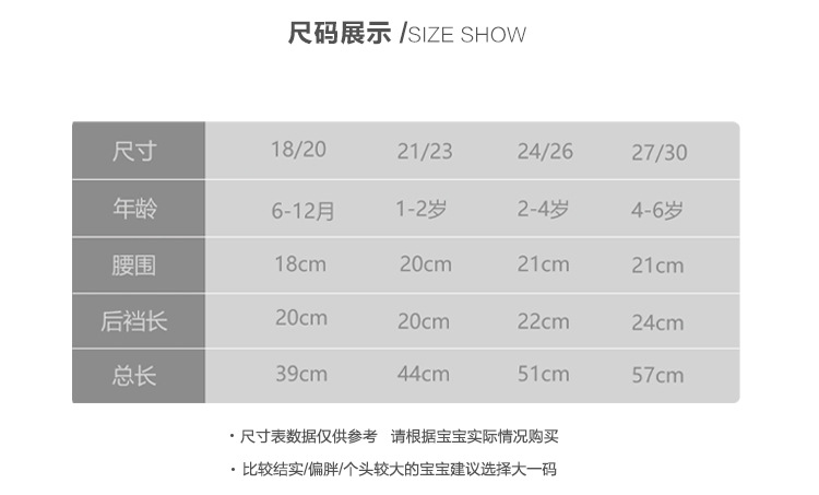 童袜尺码 18/20码6-12个月,21/23码1-2岁,24/26码2-4岁,27-30码4-6岁