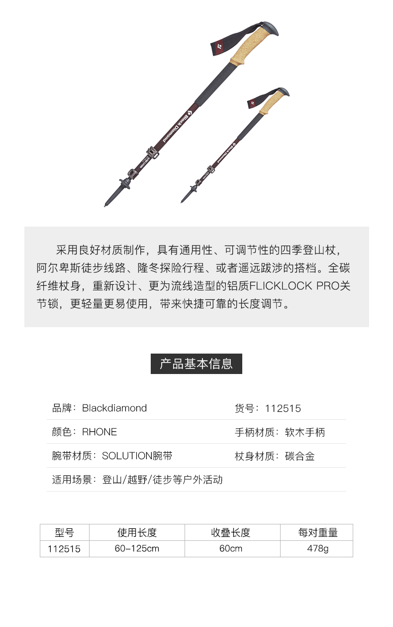 blackdiamond黑鑽bd登山手杖戶外碳素伸縮徒步杖四季爬山杖112515