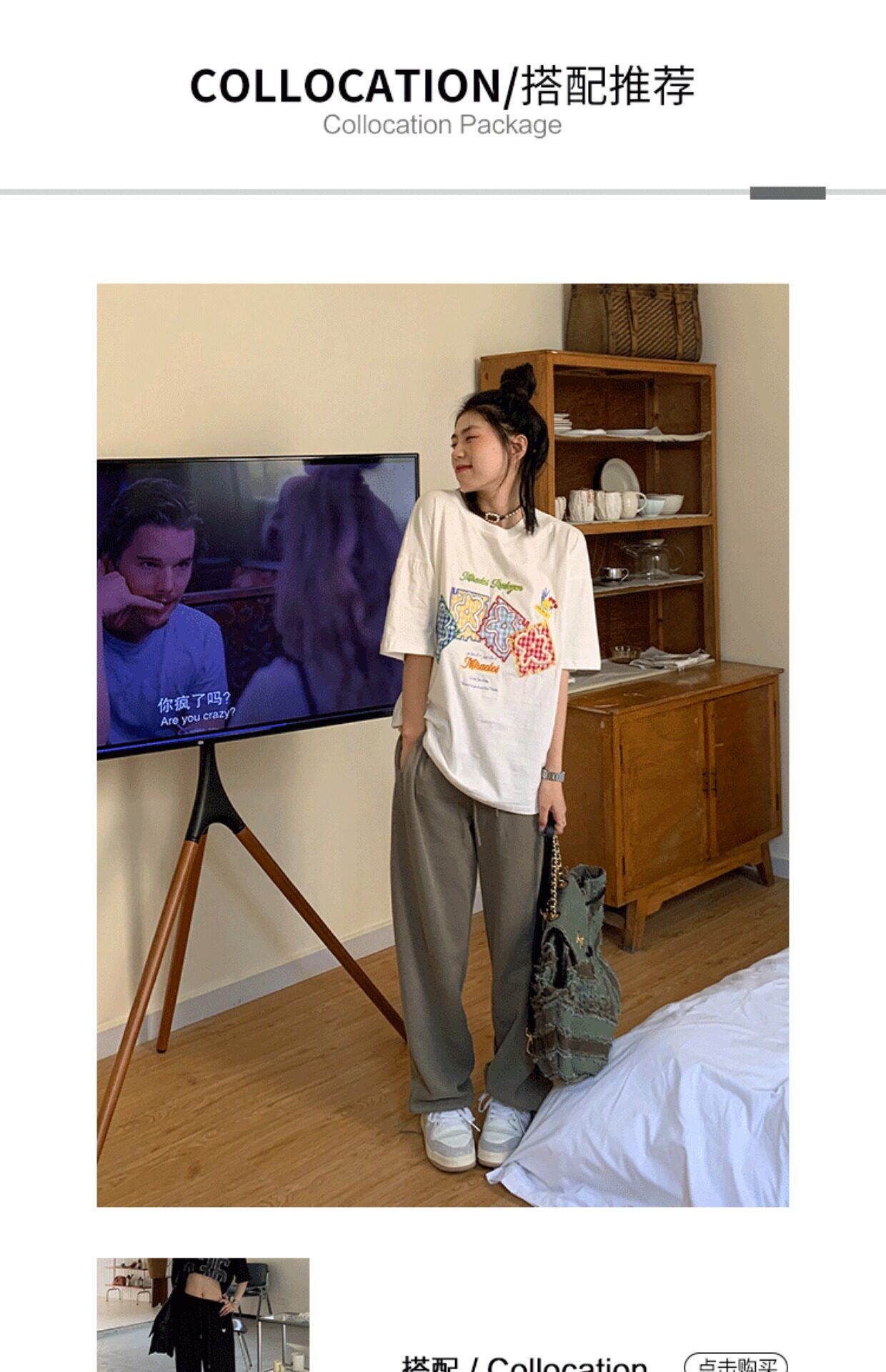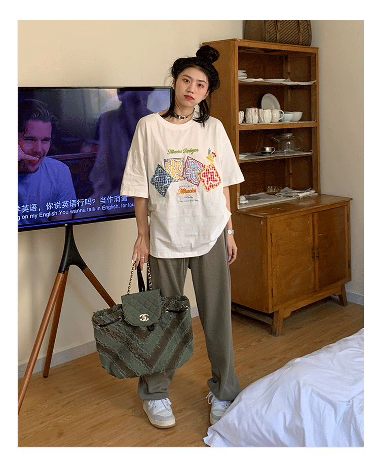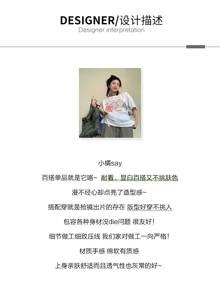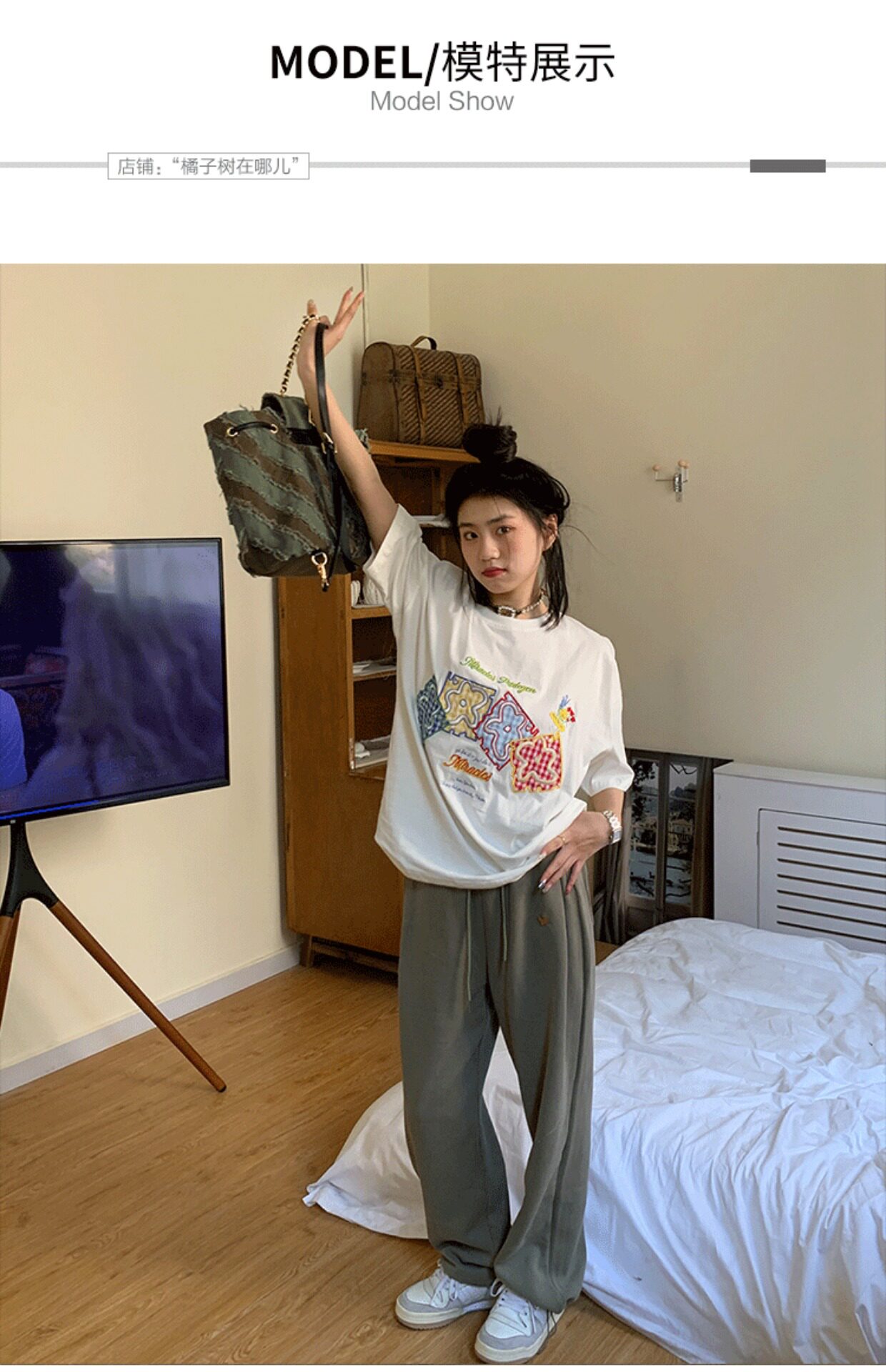 橘子樹在哪兒 方塊繡花短袖T恤女夏寬鬆白色T恤學生甜美可愛半袖