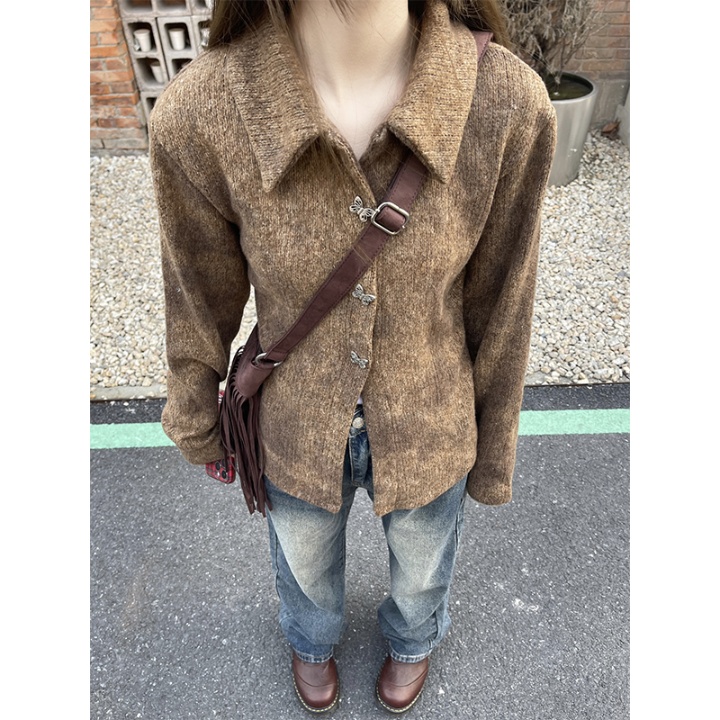 27 ONLINESTORE慵懶風復古毛衣外套2023年新款設計感針織夾克開衫