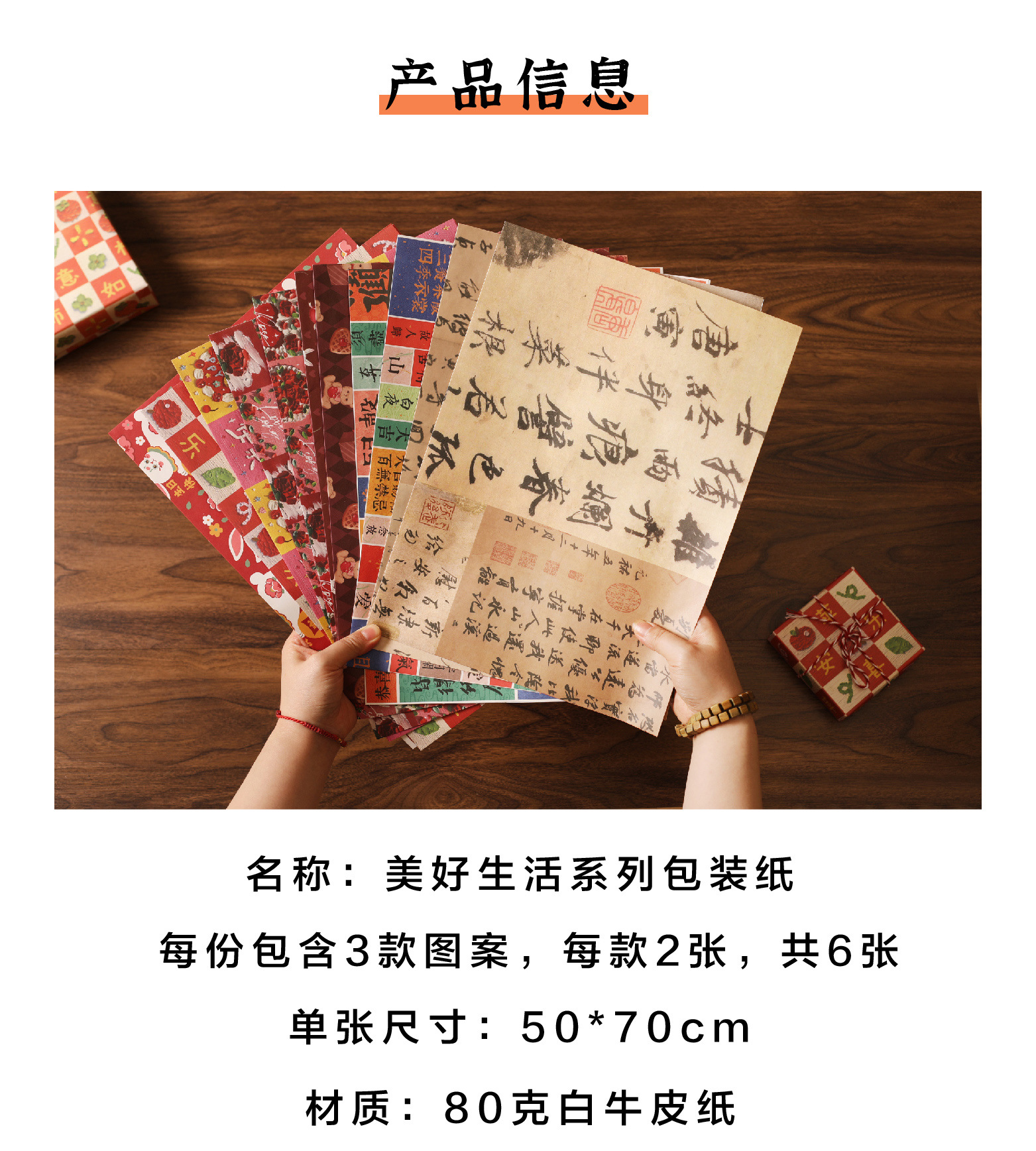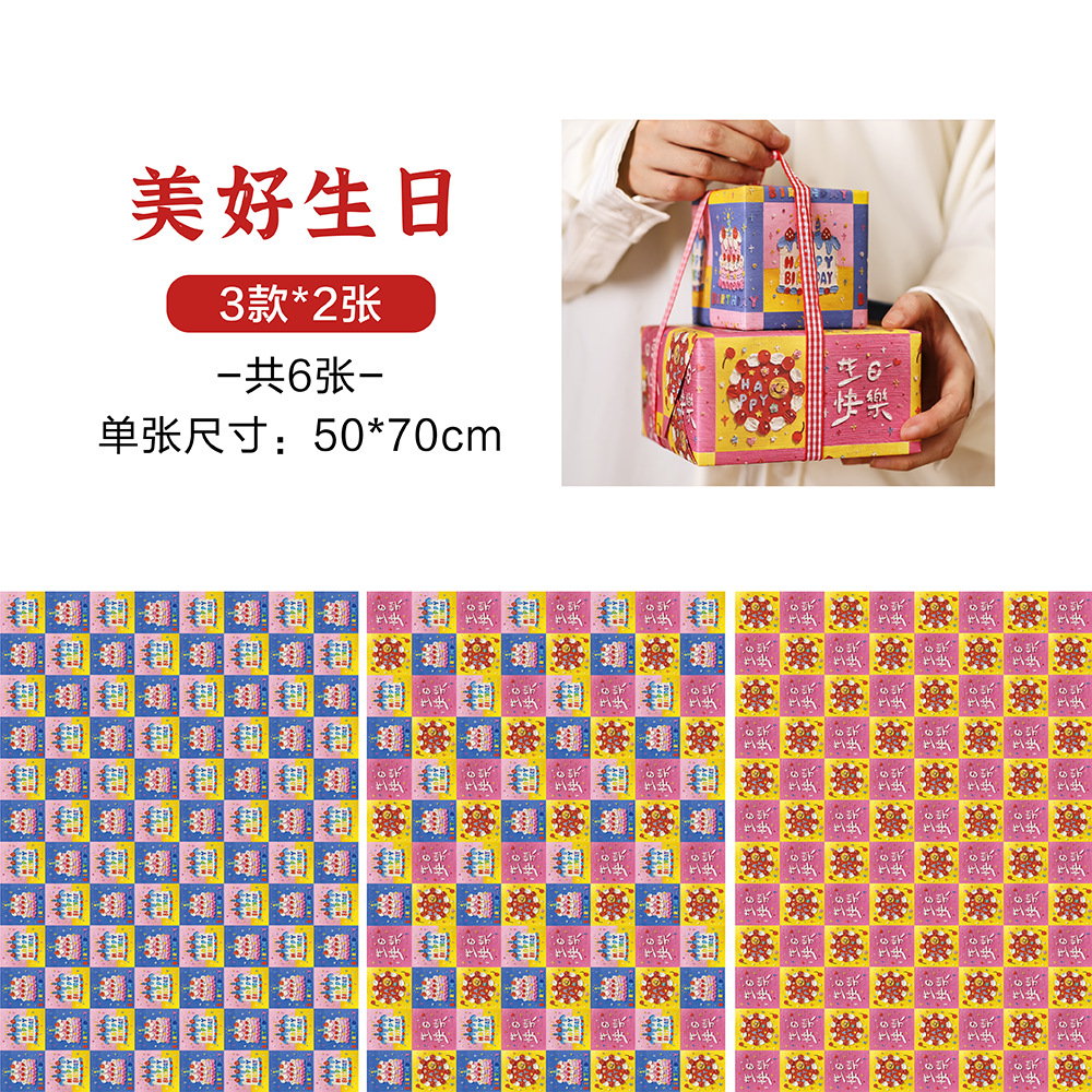 贝祥五期6张包装纸礼物礼品纸包书皮纸ins风生日情人节包装花束纸
