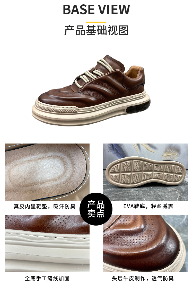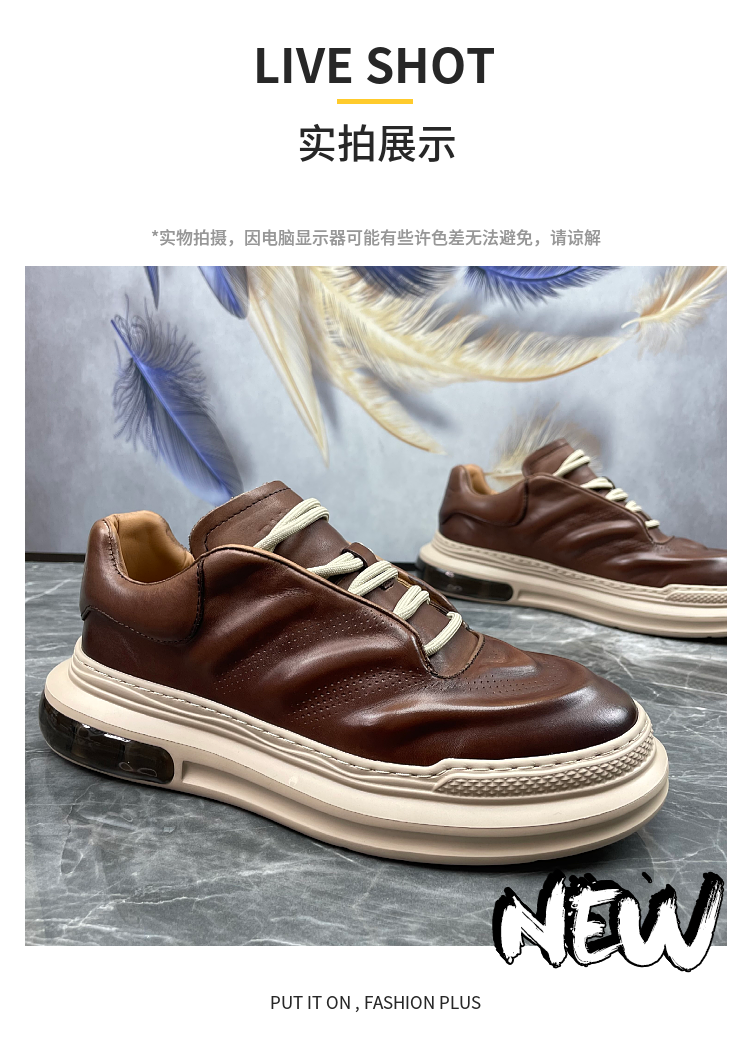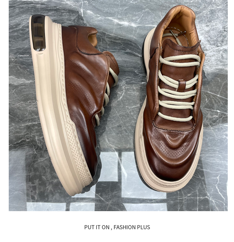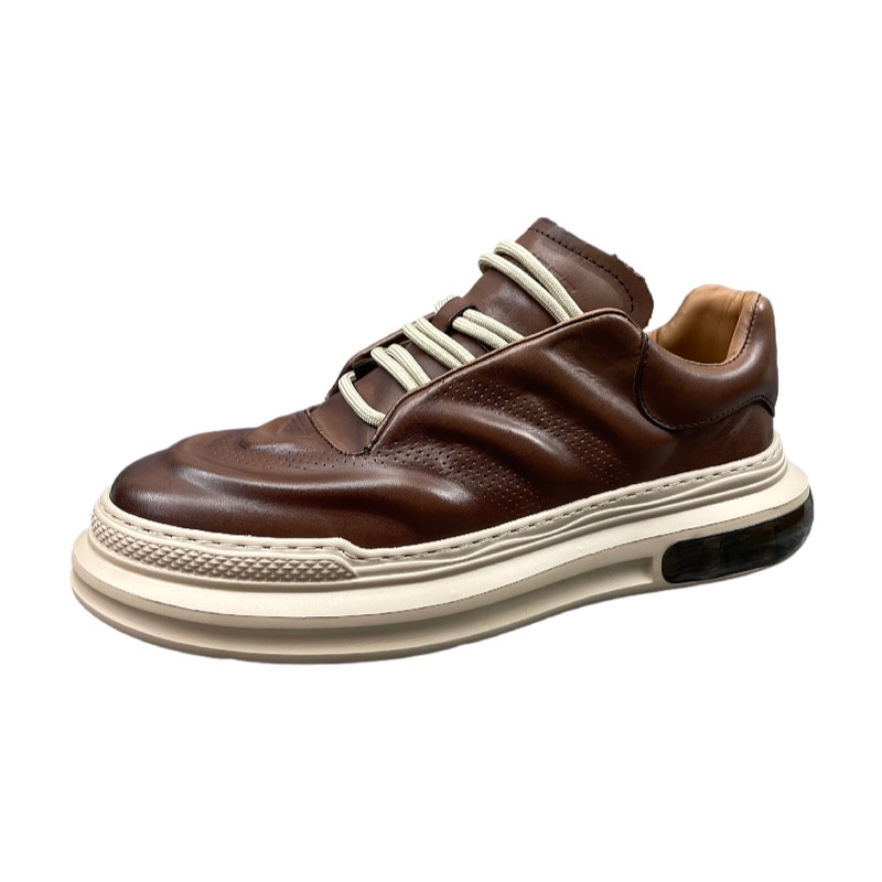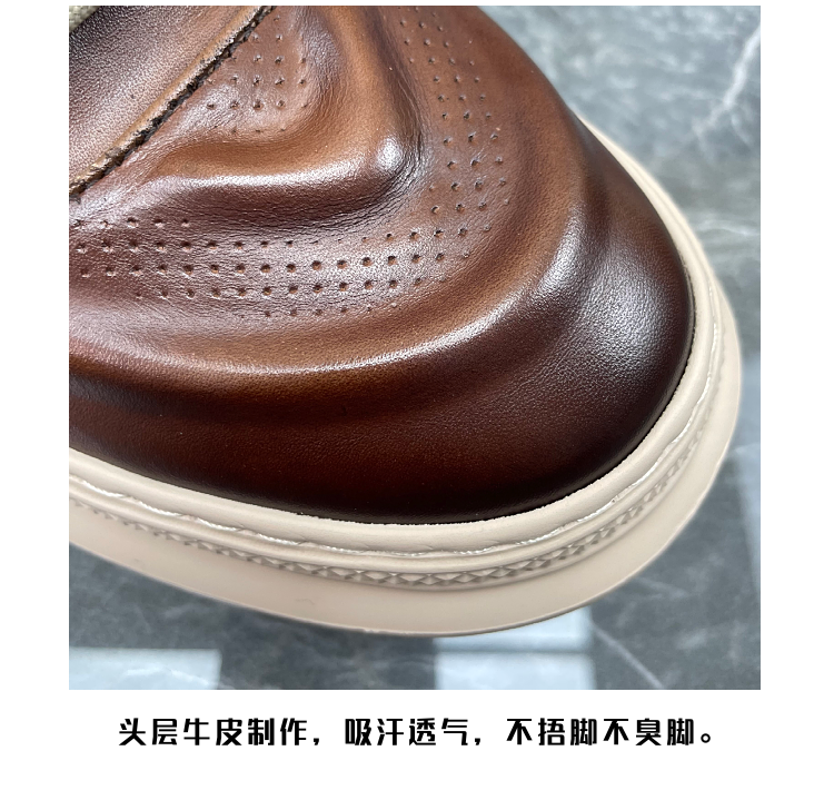 男鞋2023春季新款頭層牛皮英倫復古縫線潮流輕便棕擦色真皮休閒鞋