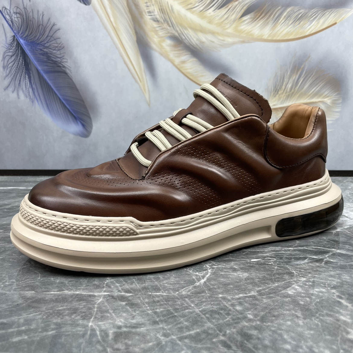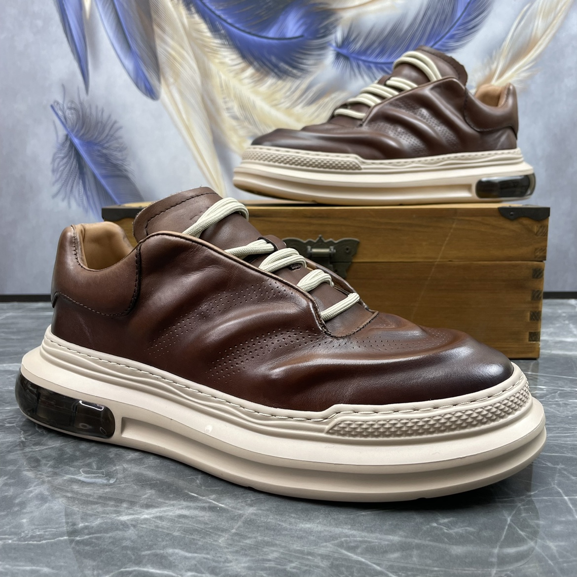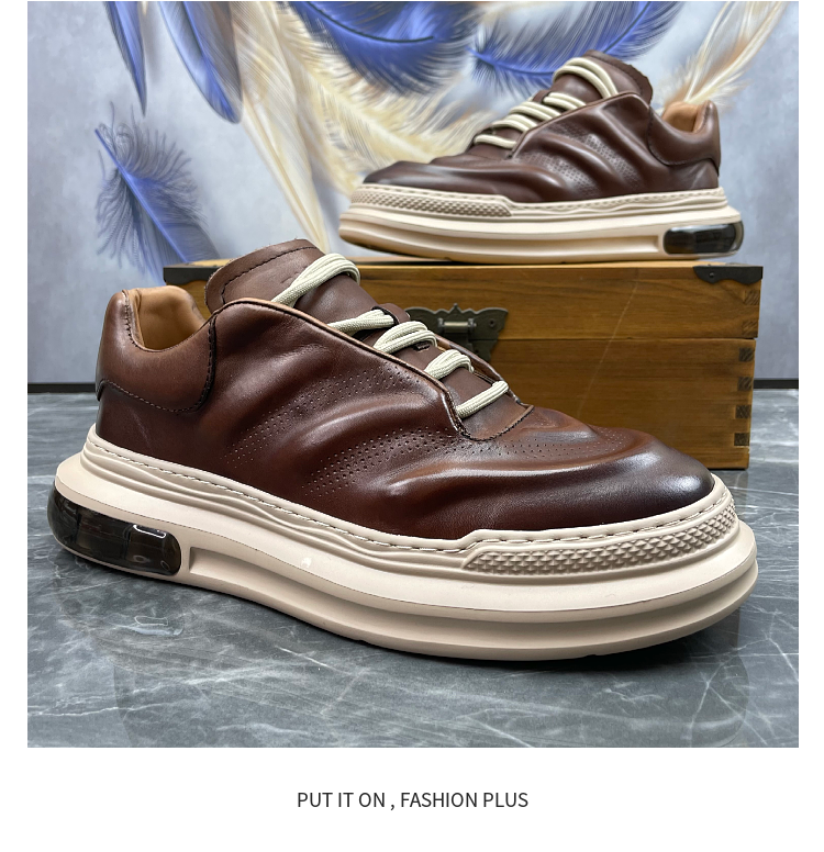 男鞋2023春季新款頭層牛皮英倫復古縫線潮流輕便棕擦色真皮休閒鞋