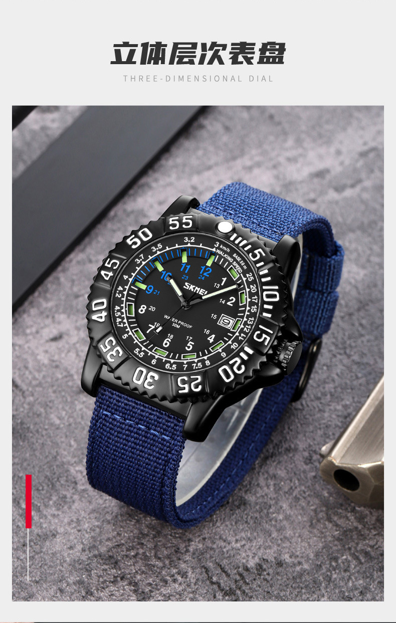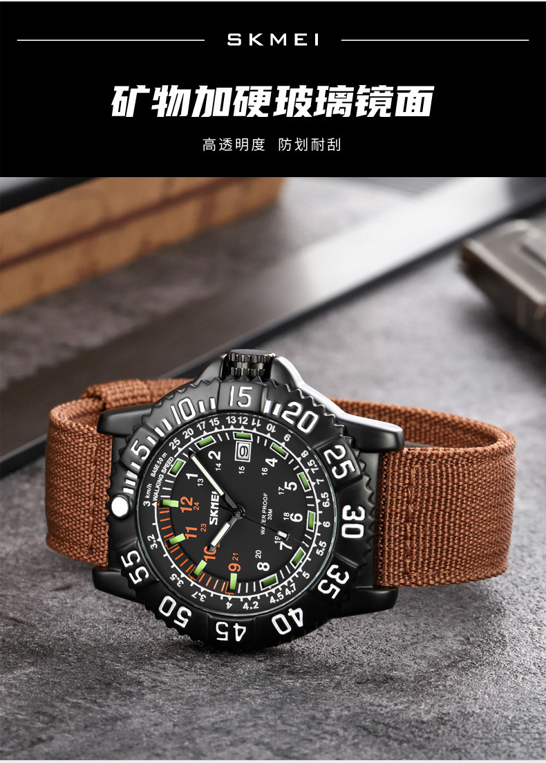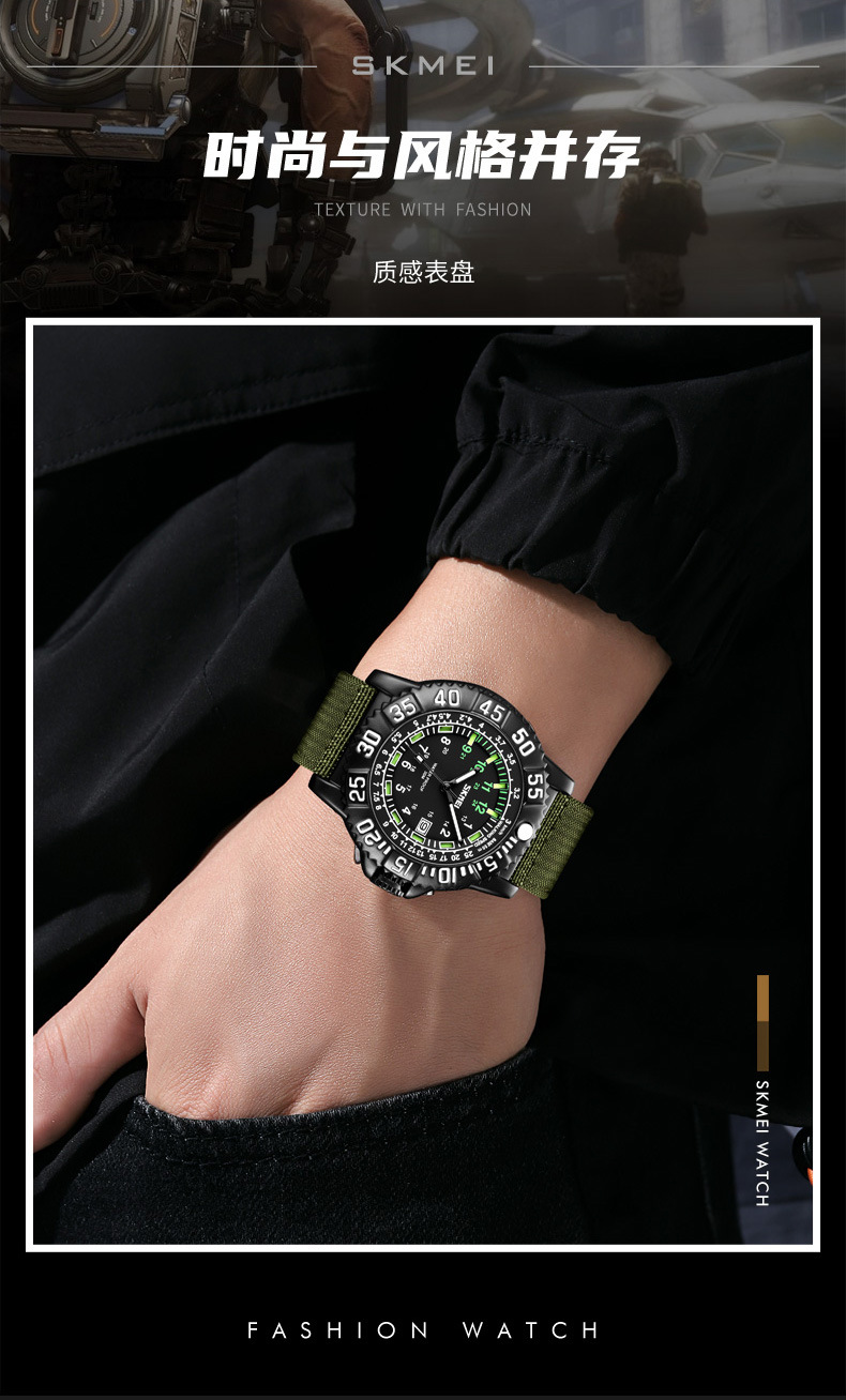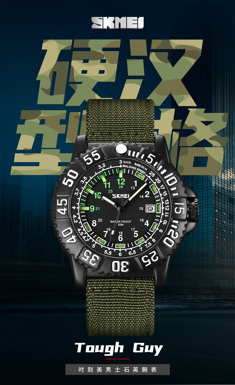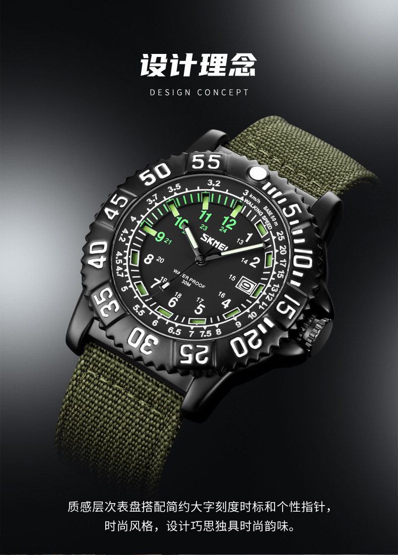时刻美街头青年潮搭酷炫帆布尼龙腕表 时尚百搭夜光刻度石英手表