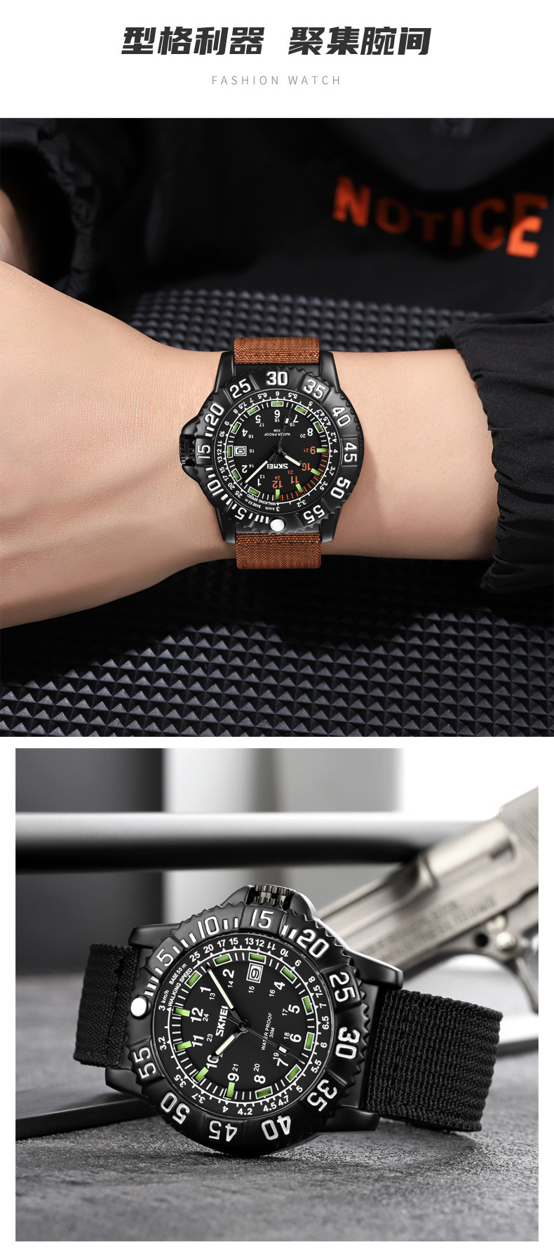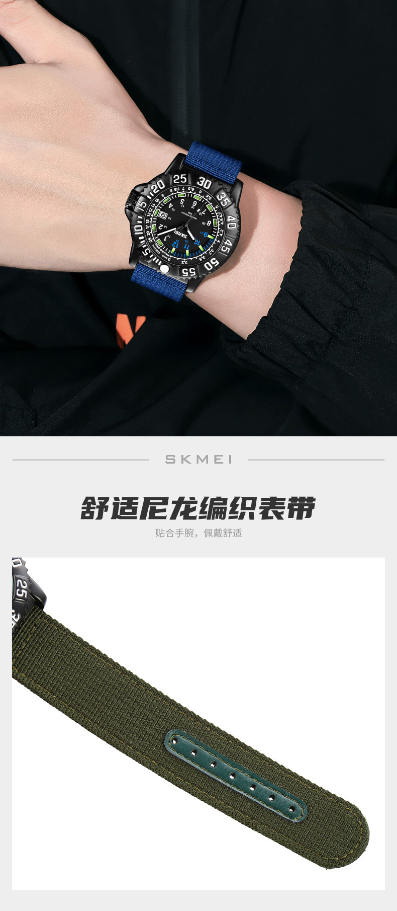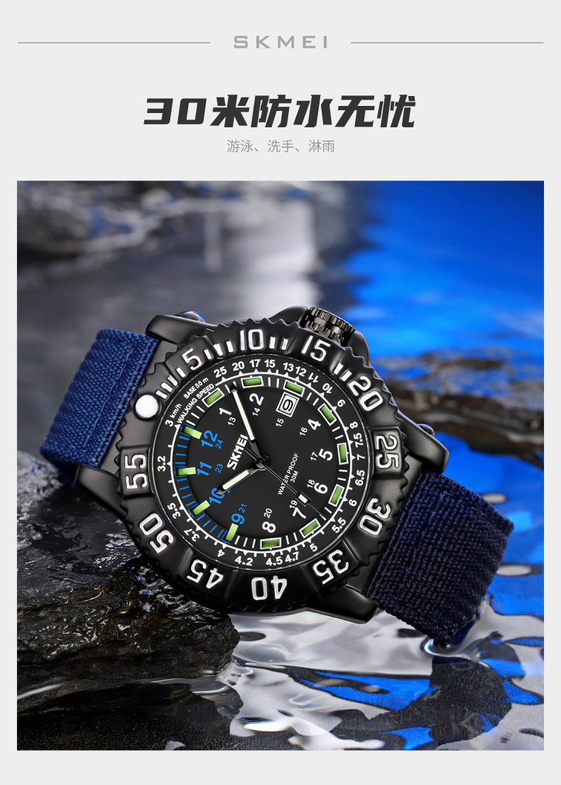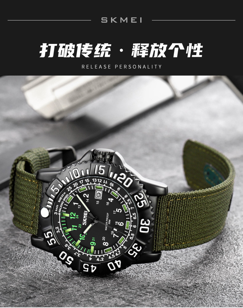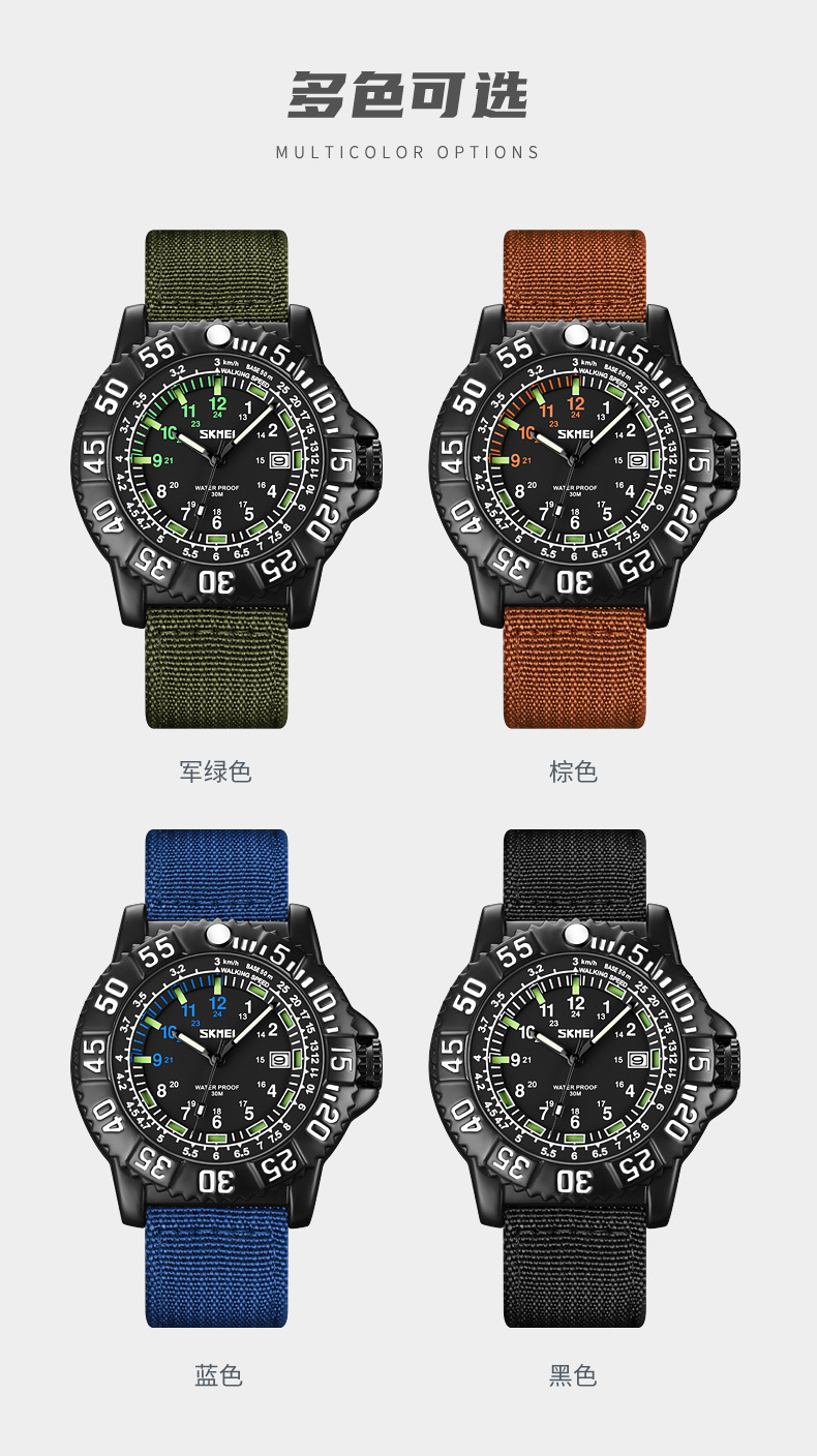 时刻美街头青年潮搭酷炫帆布尼龙腕表 时尚百搭夜光刻度石英手表