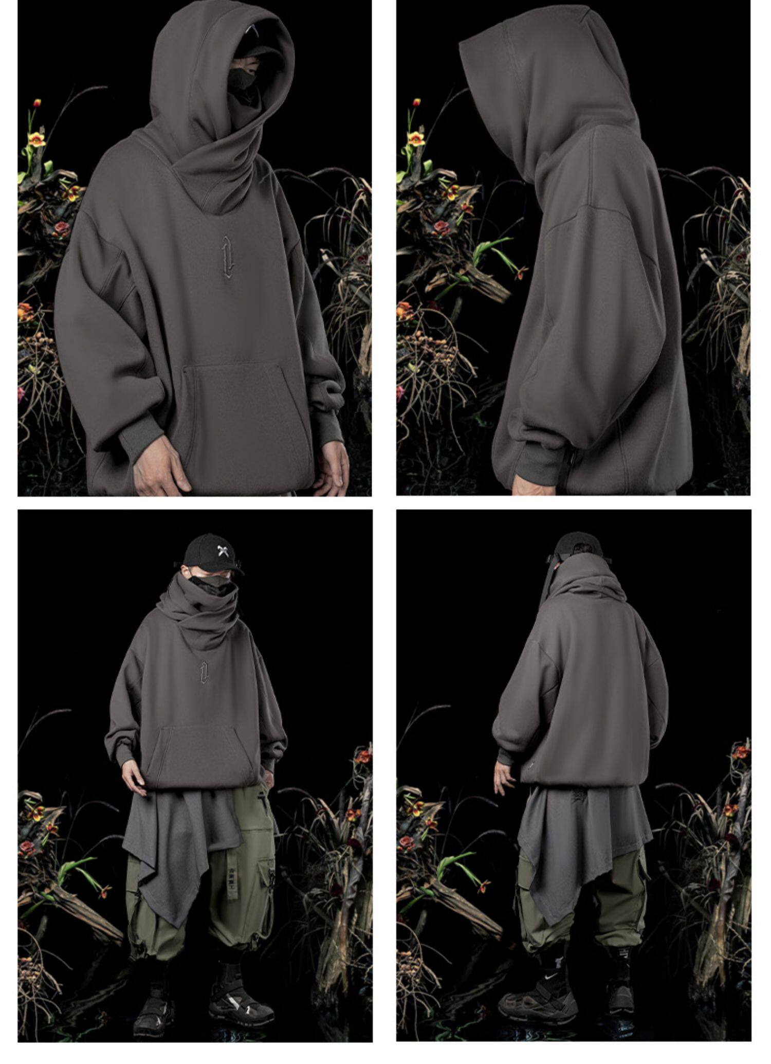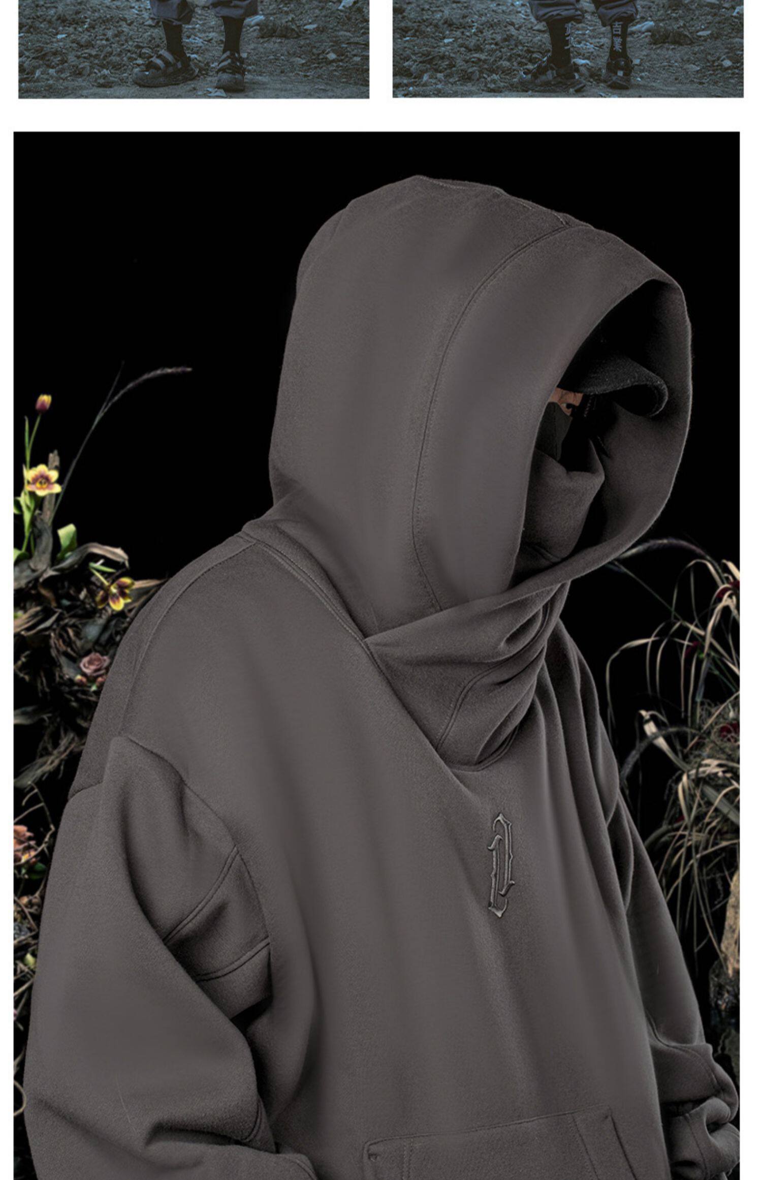 秋冬季國潮嘻哈高街衝鋒連帽運動衫男高領加絨加厚寬鬆美式潮牌上衣