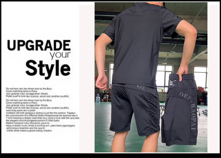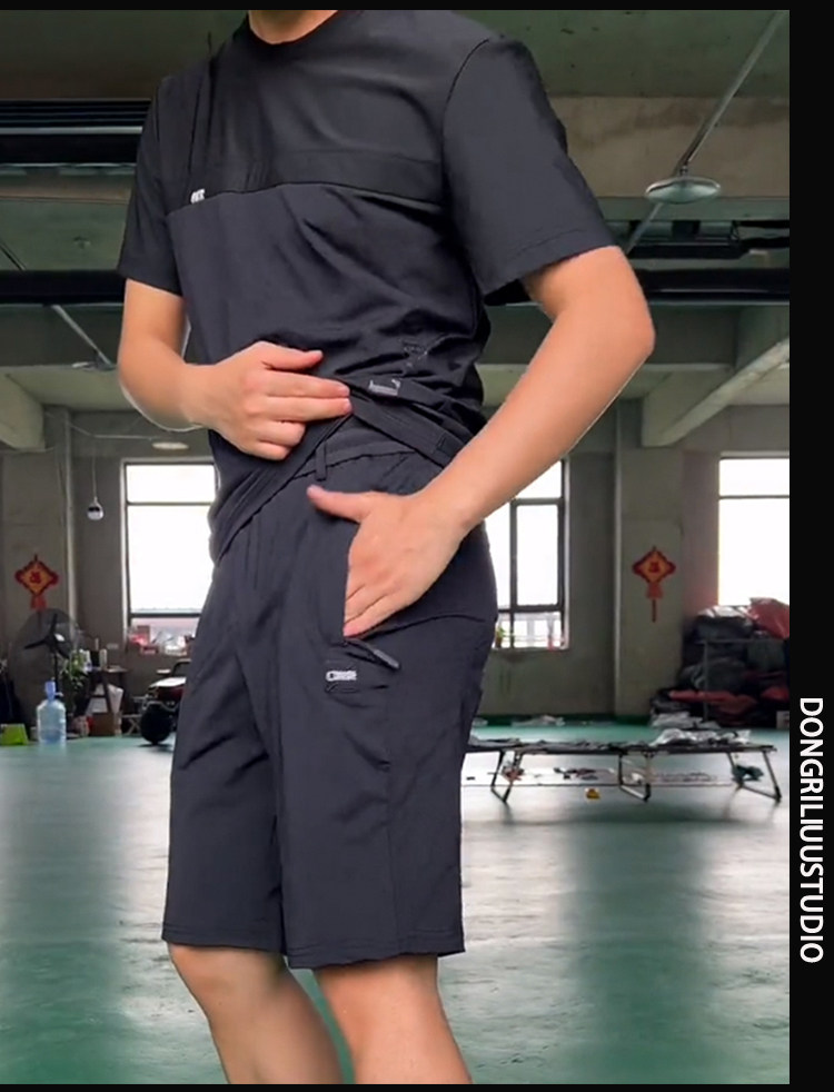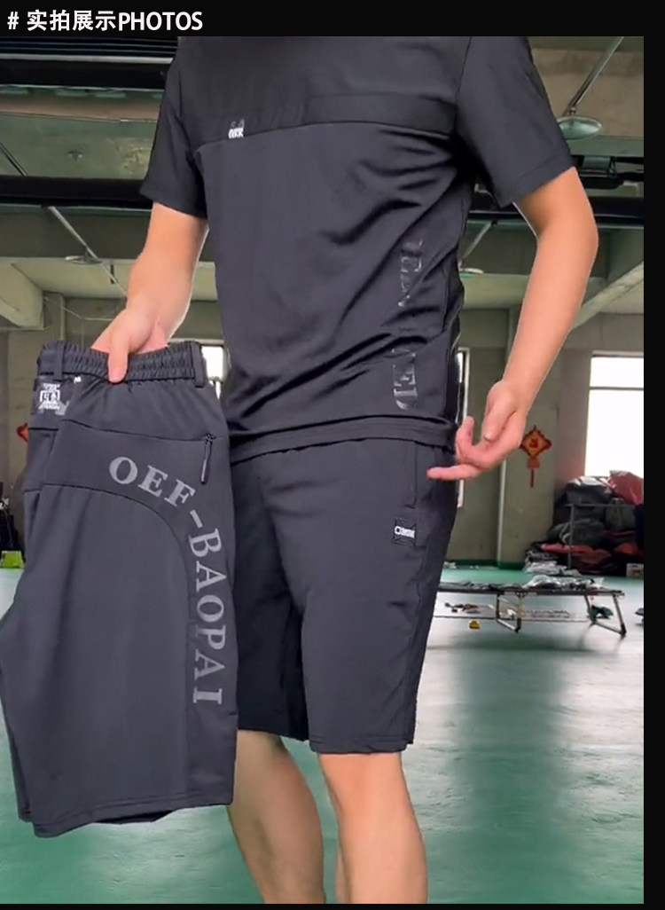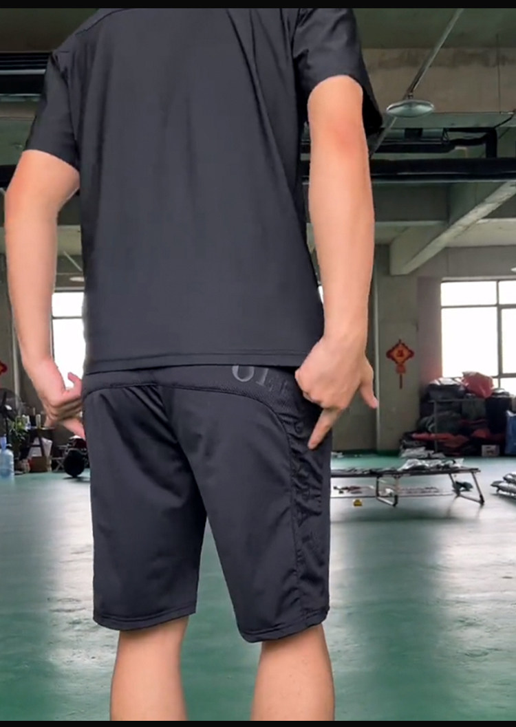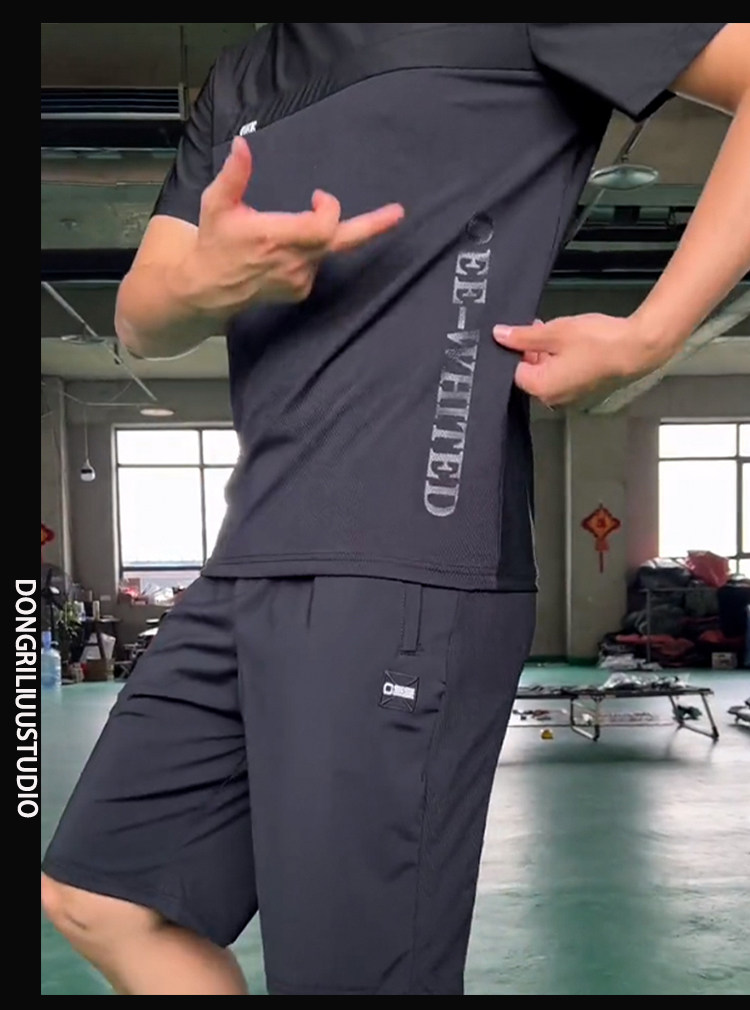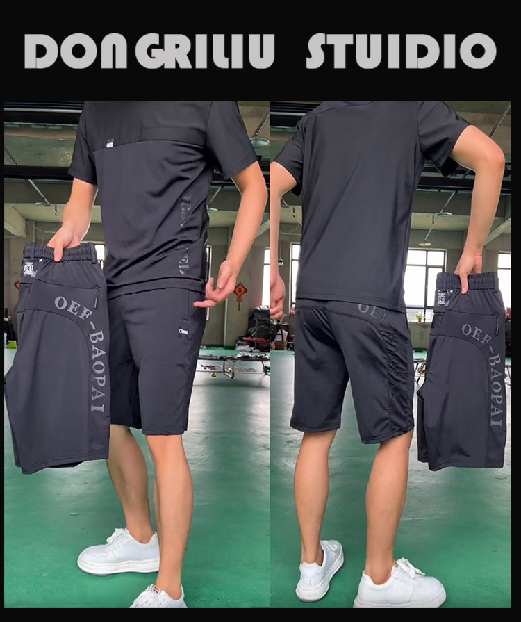 抖音明哲同款短袖T恤套裝男士夏季彈力寬鬆牛奶絲空調短褲兩件套