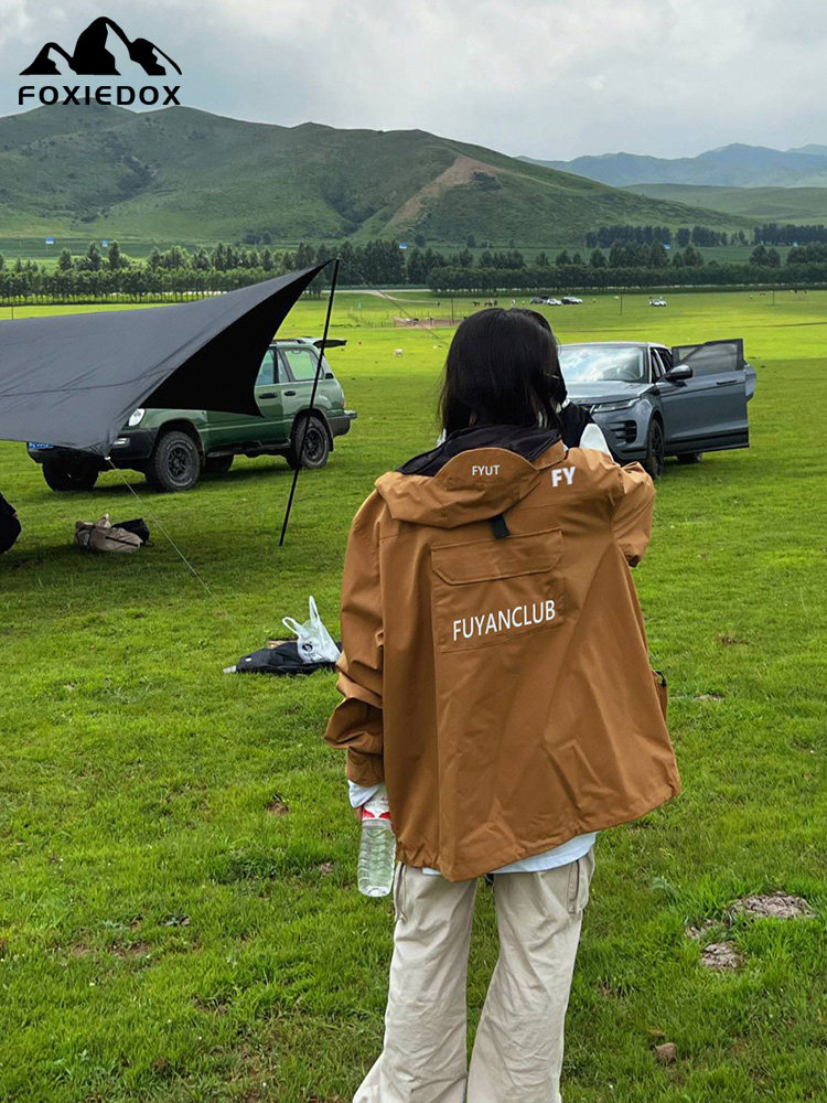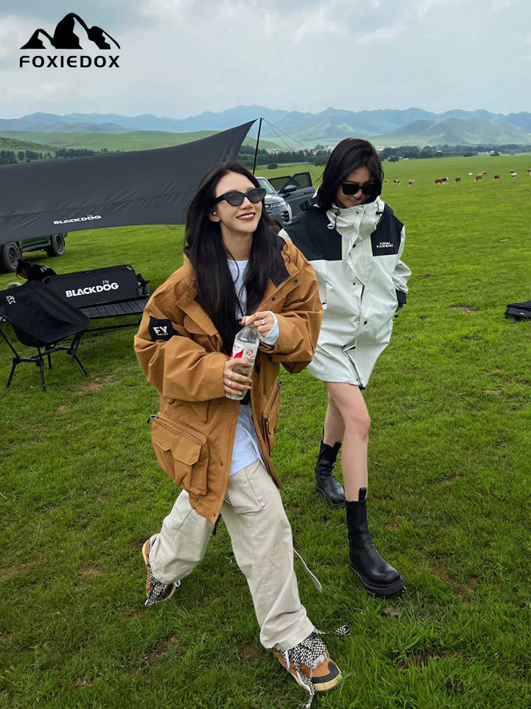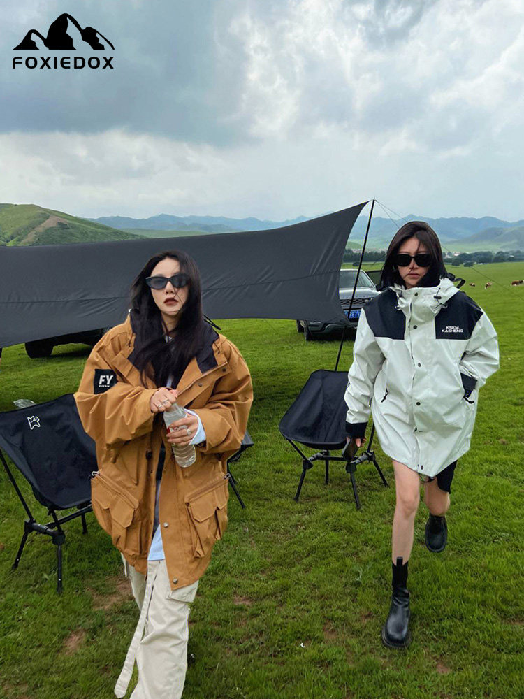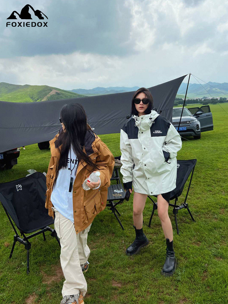 山系衝鋒衣工裝外套女2023春秋新款戶外三合一露營登山服潮流夾克