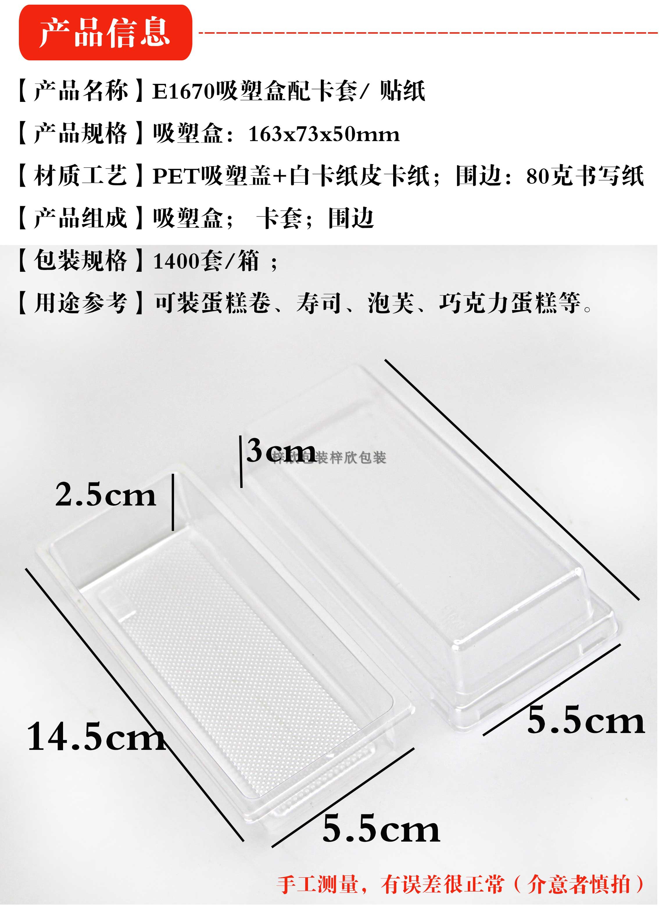 E1670吸塑盒常温蛋糕盒西点盒瑞士卷盒长方透明盒天地盖盒100套金