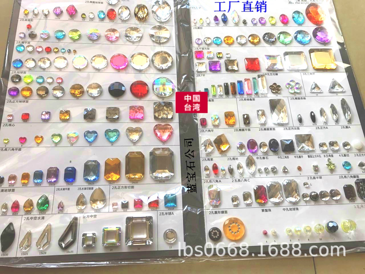 二孔钻,适用于,婚纱、女装、鞋子、裙子,等 服饰装饰用钻,规格大小齐全,颜色有50多种可以选择订货。详情参考我司色卡; 需要其它形状,另外咨询我们
