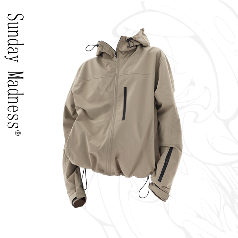 美式vintage衝鋒衣外套女春夏新款2023運動登山休閒夾克服情侶裝
