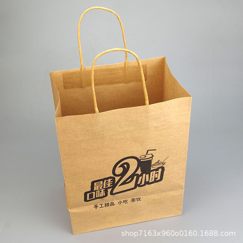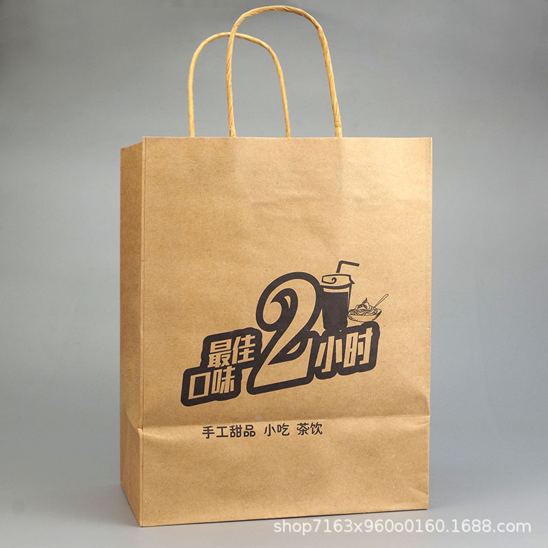 厂家供应牛皮纸手提袋蛋糕奶茶咖啡外卖打包袋纸袋礼品袋定印logo