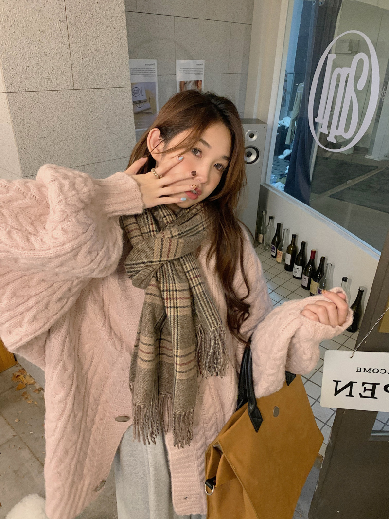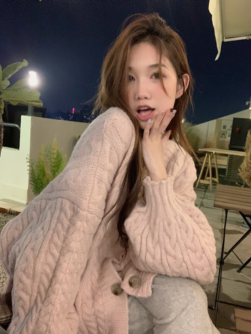 暖系軟糯麻花毛衣外套女秋冬2023新款中長版寬鬆慵懶溫柔針織開衫