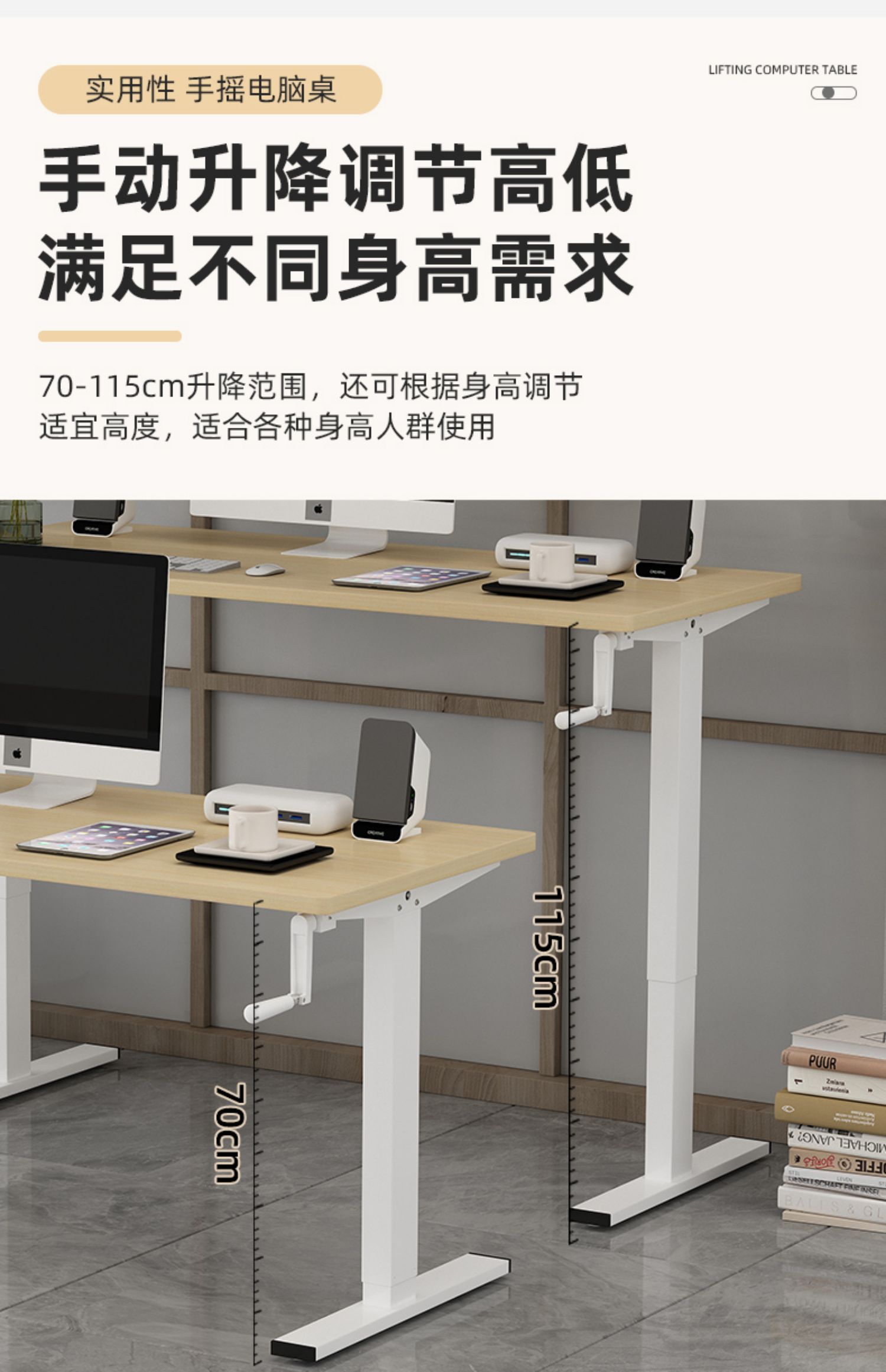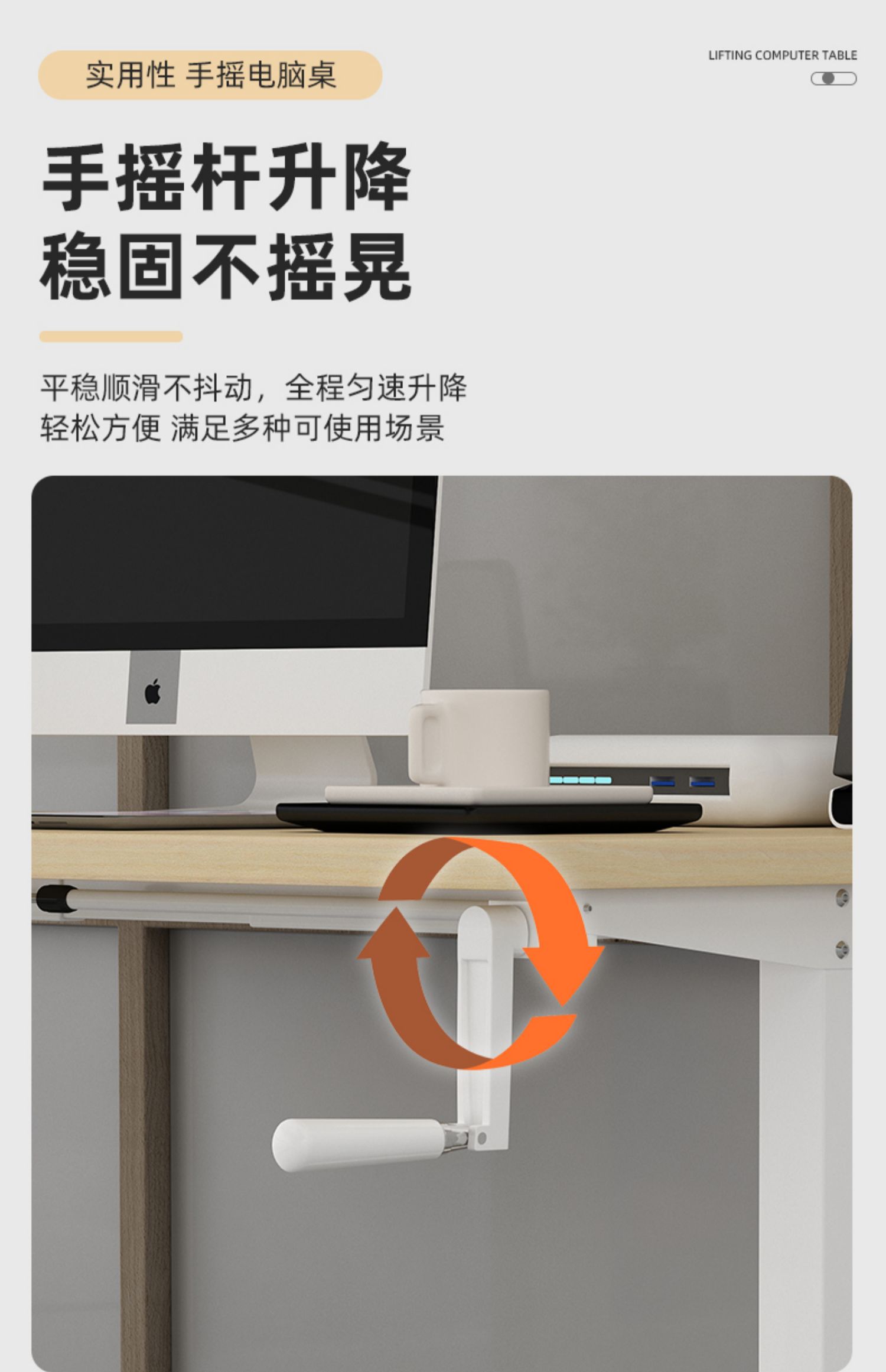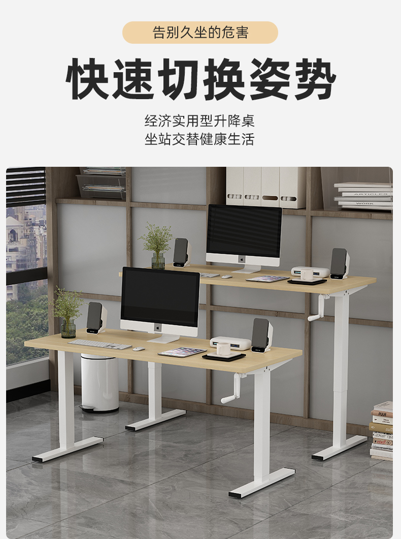 K6WY批发手摇升降桌手动桌架可办公工作台支架式电脑台式桌子宜学