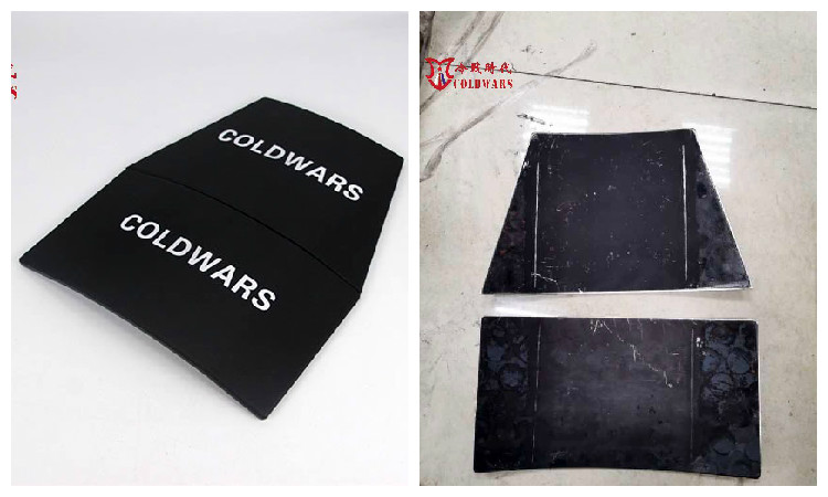 左图为加了软包后的防弹板外观,右图为装甲钢芯