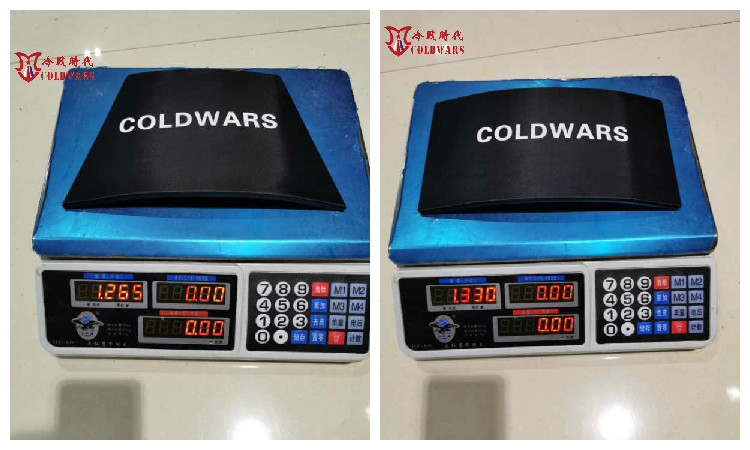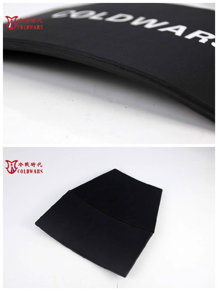 梯形板投影尺寸为:上底170mm下底270mm高170mm;长方形板投影尺寸为:长270mm高145mm(以上尺寸为钢芯尺寸,钢板厚度4mm左右,外加缓冲软包,外形尺寸与厚度有所扩大)。请注意是投影尺寸,不是表面积,防弹板有弧度。