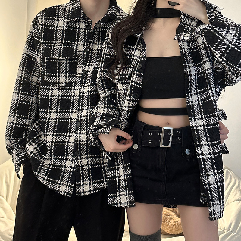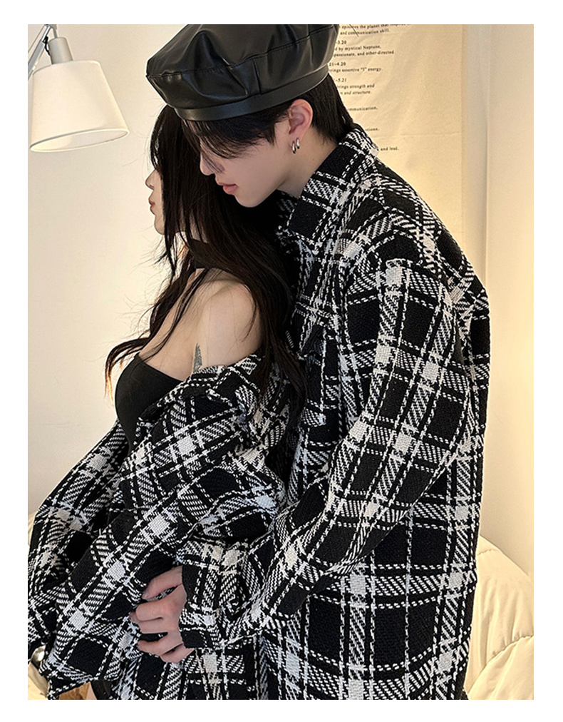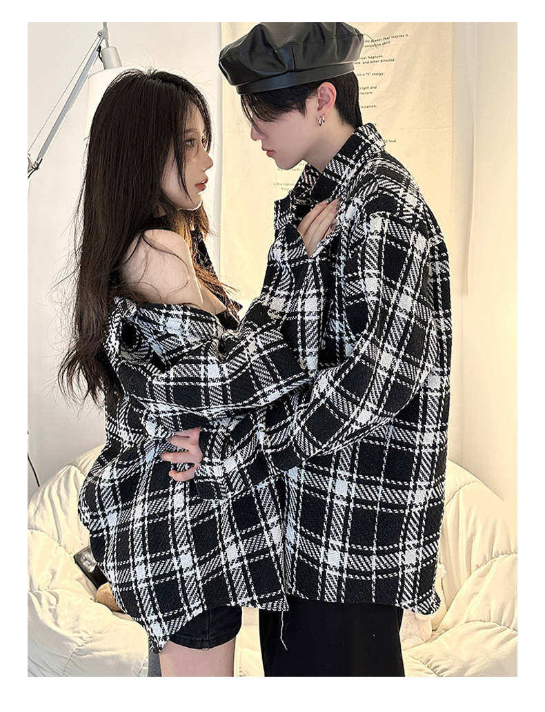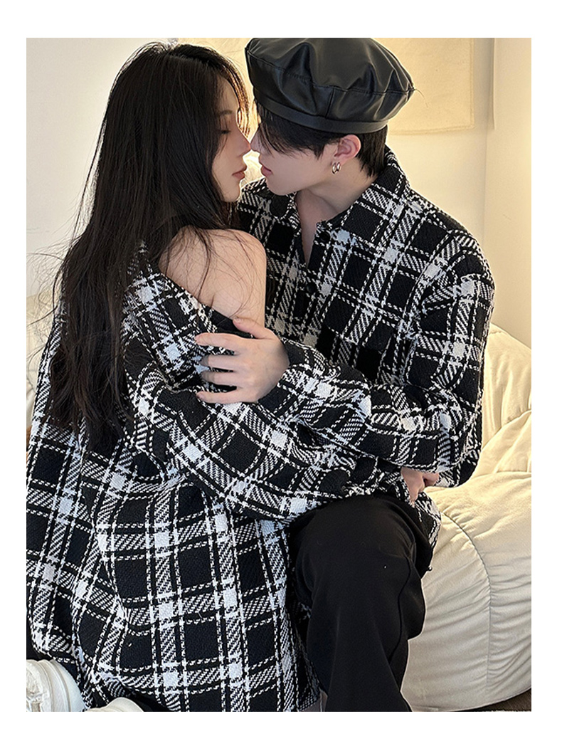 早秋小香風情侶裝外套2023新款春秋季高級感韓版格子百搭roora女